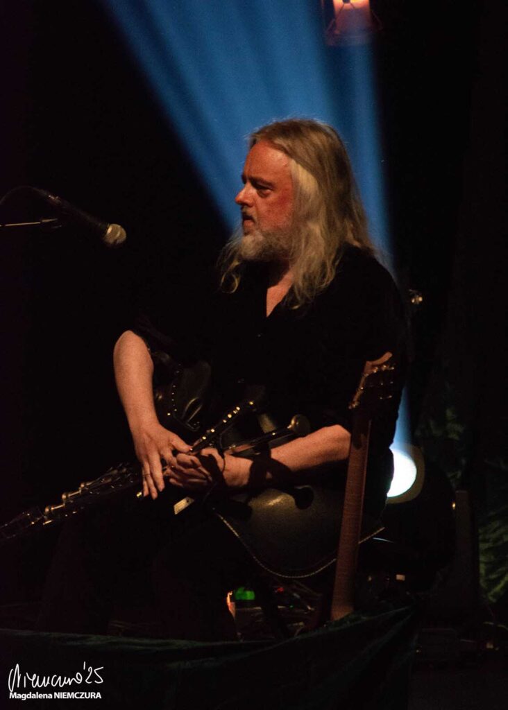 That day in Tampere Talo, the three original members of AURI, Tuomas, Johanna, and Troy, were joined on stage by Kai, whom we know very well from NIGHTWISH, as well as Johanna and Mikko Iivanainen, the band’s long-time friends. The entire stage was candlelit, just like the title of their third album suggests. The atmosphere in the concert hall was very somber, and you could sense the tingling of anticipation. All of the instruments were covered with green fabric, giving the viewer an impression that we’re all in a forest meadow, experiencing a concert by wood fairies. Johanna Kurkela walked onto the stage in the most stunning gray sparkly dress, looking like an ethereal cloud. As she performed “Those we don’t speak of”, the lights on the stage dimmed, her voice putting the audience in some sort of a trance. Soon she was joined by the rest of the band and all together they performed “The Space Between,” one of the more known songs by AURI.