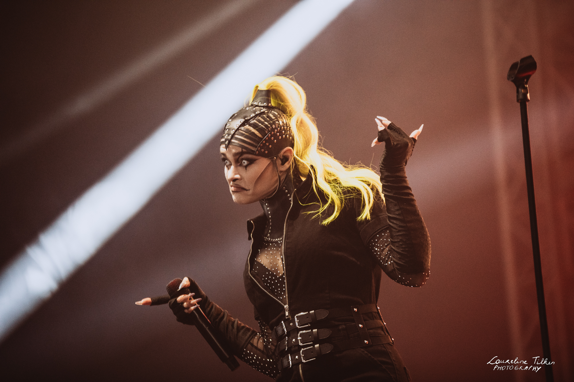 Then, it was time to make hard, executive decisions again. My friends opted for the warp-speed warriors, DRAGONFORCE, on the Nordic Energy stage. I decided to check out the industrial-pop eccentrics, SKYND, on the Radio City stage next. The modus operandi of this electronic outfit seemed way too intriguing to miss – each of their song is based on some disturbing true-crime incident, such as the Jonestown massacre. So, even though the band’s music might have seemed a bit off for a metal festival, at face value at least, the grim aura of the music fit Tuska Festival just fine, not to mention the appearance of the lead singer, Skynd. She was adorned with a somewhat corpse-paint-like make-up and dressed in a Victorian costume. She fit right in at Tuska Festival! She could have strolled among the crowd without anyone noticing anything out of the ordinary. I vaguely recalled having heard the 2019 single, “Taylor Hadley,” somewhere, but I wasn’t prepared for what was about to hit me. I must have written the band off as some sort of eccentric joke back in the day, probably because of the excessive use of effects in the vocals. So, when their performance turned out to be a kick-ass selection of tightly delivered, groovy, and catchy bangers, one after another, I was totally blown away. On my way home from the festival, cruising down the Helsinki-Tampere highway, I caught myself humming the choruses of SKYND‘s latest single “Aileen Wuornos,”“Robert Hansen,” and “Violets Are Blue.” [insert the F-word here], I will definitely go and check them out again if SKYND is coming to Finland anytime soon! It’s one thing to write haunting murder ballads, like SKYND‘s fellow Australian Nick Cave or the Finnish masters of this art, TUHKA (whose contemporary takes on the matter sounds even better), but to write catchy, industrial bangers about serial killers and such with this level of brilliance – that’s something else entirely. What a great band! They sure pulled a killer (yeah!) show!