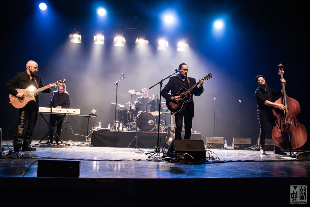 Right after that, Taneli invited the three choristers on stage: Riina Rinkinen, Hanna Wendelin, and Tarja Leskinen. Their names might ring a bell, as they used to be in SLEEP OF MONSTERS, who disbanded a couple of years ago. Tarja is the most recent addition to T. JARVA & THE DARK PLACE’s lineup, and she also took part in the upcoming album recordings. The band delighted the audience with the new song “Hades Children,” which was released as a single at the end of last year, accompanied by a very interesting video. The tune marks a clear evolution in the band’s sound, even drawing from bossa nova, resulting in an old‑fashioned, warmly appreciated atmosphere that the audience clearly enjoyed. For some reason, right after that, Taneli thanked us in perfect Italian, maybe as a quiet echo of the song’s theme, maybe just a fleeting nod to the years he spent in Rome as a kid; I won’t dare to guess what he had in mind. Either way, it felt fun, unexpected, and oddly in tune with the overall vibe.