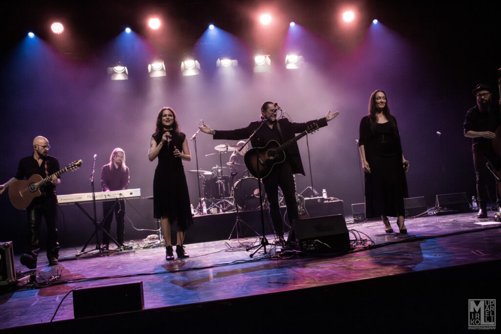Taneli thanked us while sipping coffee from his mug, then they all left the stage. The audience was clapping in unison and shouting “we want more,” so they came back, and even though it didn’t feel like a surprise, the enthusiasm was palpable. Riina took her place next to Taneli at the center of the stage and explained that the following song was “Henry Lee,” a cover by Nick Cave & the Bad Seeds featuring PJ Harvey, rearranged as a “trietto,” basically a duet with three people involved, with Hanna joining them as well. From what I understood, this might have been the last time they performed this song, so just in case, I tried to enjoy it to the fullest.