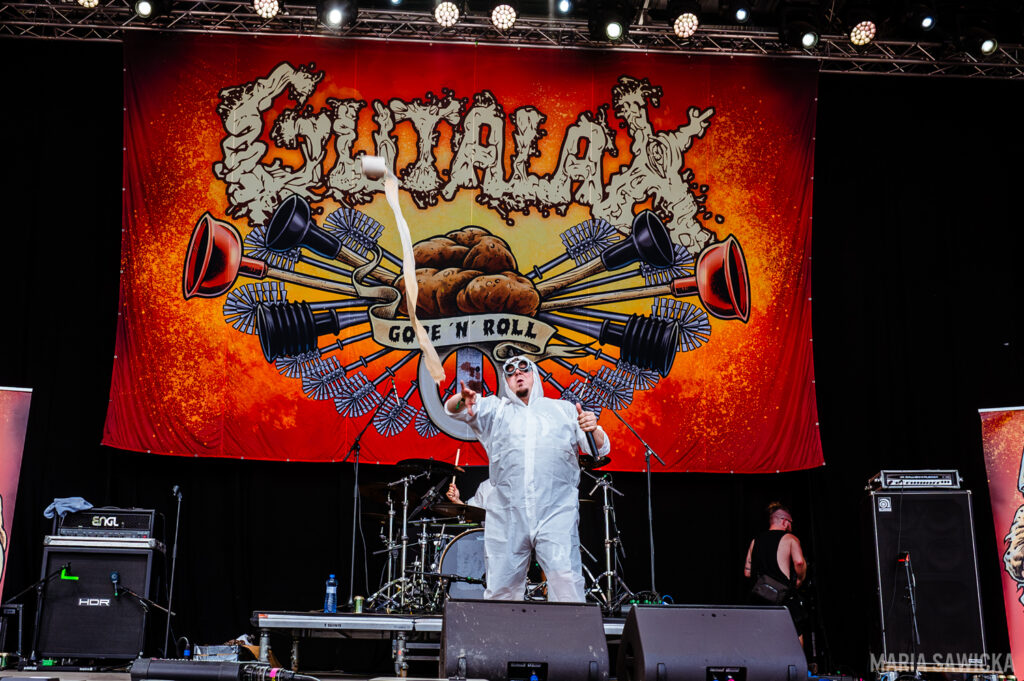 The audience came properly geared up, and in truth, they were often more entertaining than the stage itself. With wave after wave of crowdsurfers, it looked as if a grenade had gone off in the pit. At one point, we even witnessed a toi toi toilet being carried across the crowd—a massive upgrade from when we last saw GUTALAX at Mystic Festival. The band were promoting their 2021 release “Shitpendables,” and it was a glorious mess from start to finish.