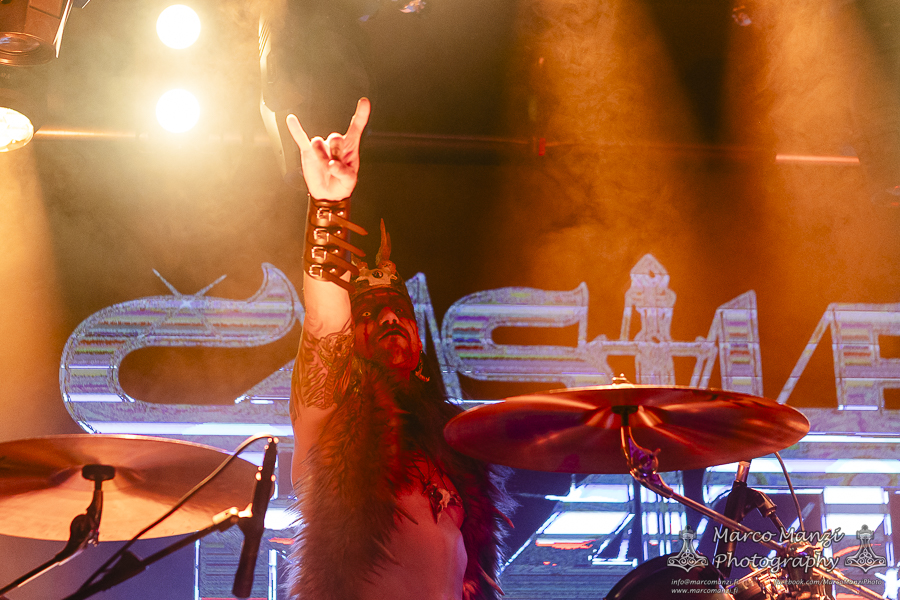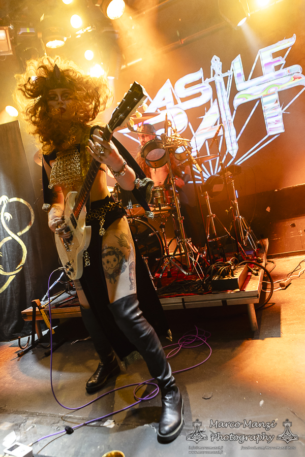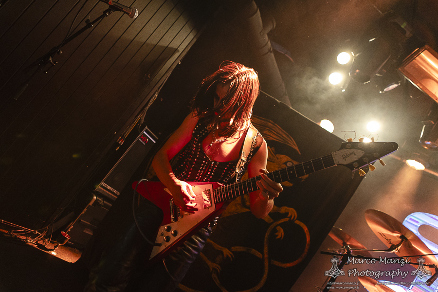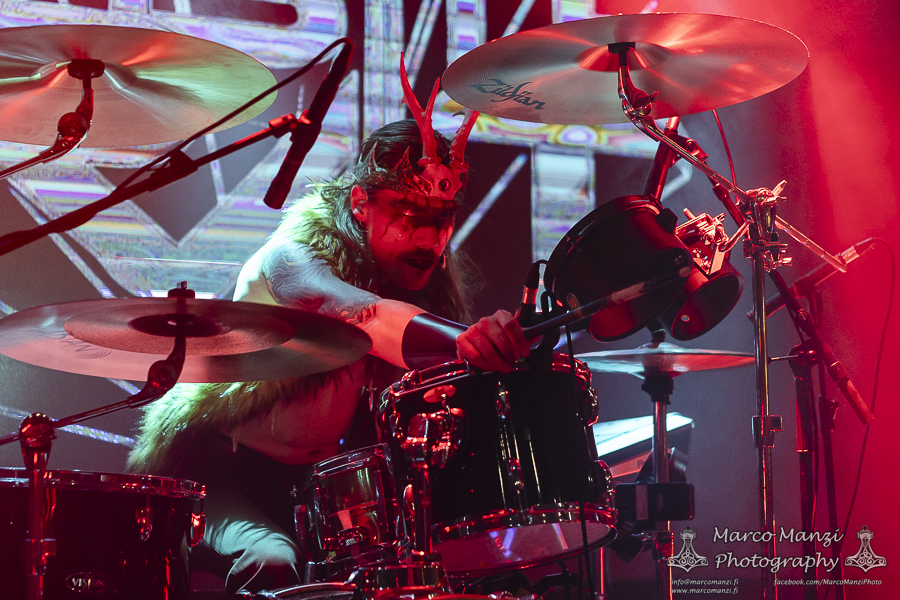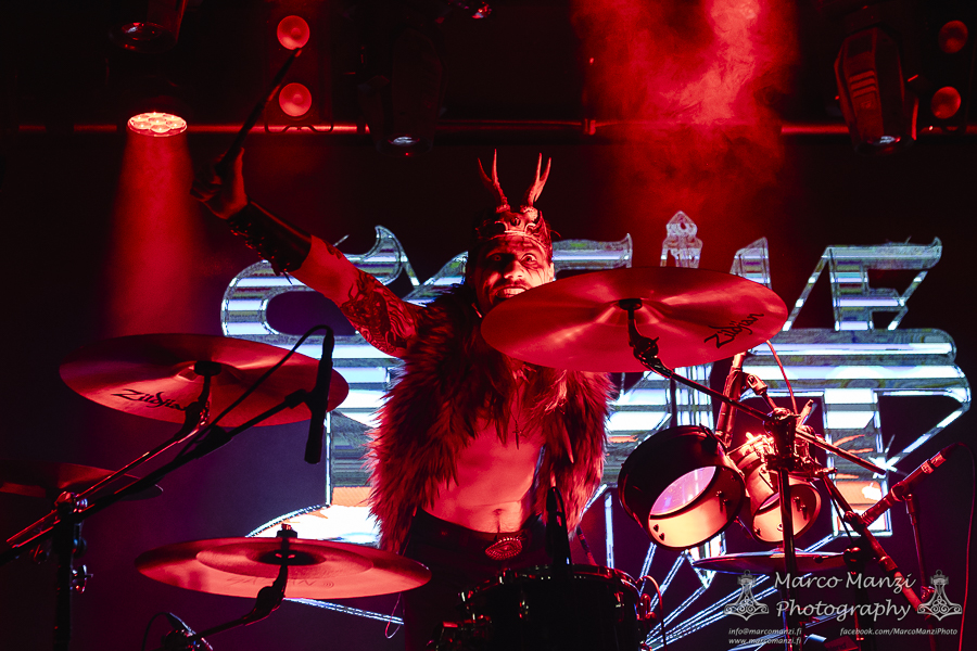 Of course there is much more to it, as the young band lead by The Rat Queen delivered some well-executed good old-school doom that brought back several nostalgic memories, and a show rich of entertainment from start to finish: from the story of how the lead guitarist The Count (now played by Franco Vittore) was killed by the scythe-weilding, latex wearing evil creature The Rat Reaperess, and then given a potion provided by The Plague Doctor (bass) he came back to life as a vampire; or the continuous fight to expand and protect “The Realm” precisely from foes such as the aforementioned The Rat Reaperess, or “Death Herself,” which later had a fight with the frontwoman in which the former appeared to be defeated, only to come back and kill our heroine which in turn was later brought back to life once again by The Plague Doctor as well… (yes, there was a lot going on – and everything was happening in front of the watchful eyes of The All-Seeing Druid behind the drums).