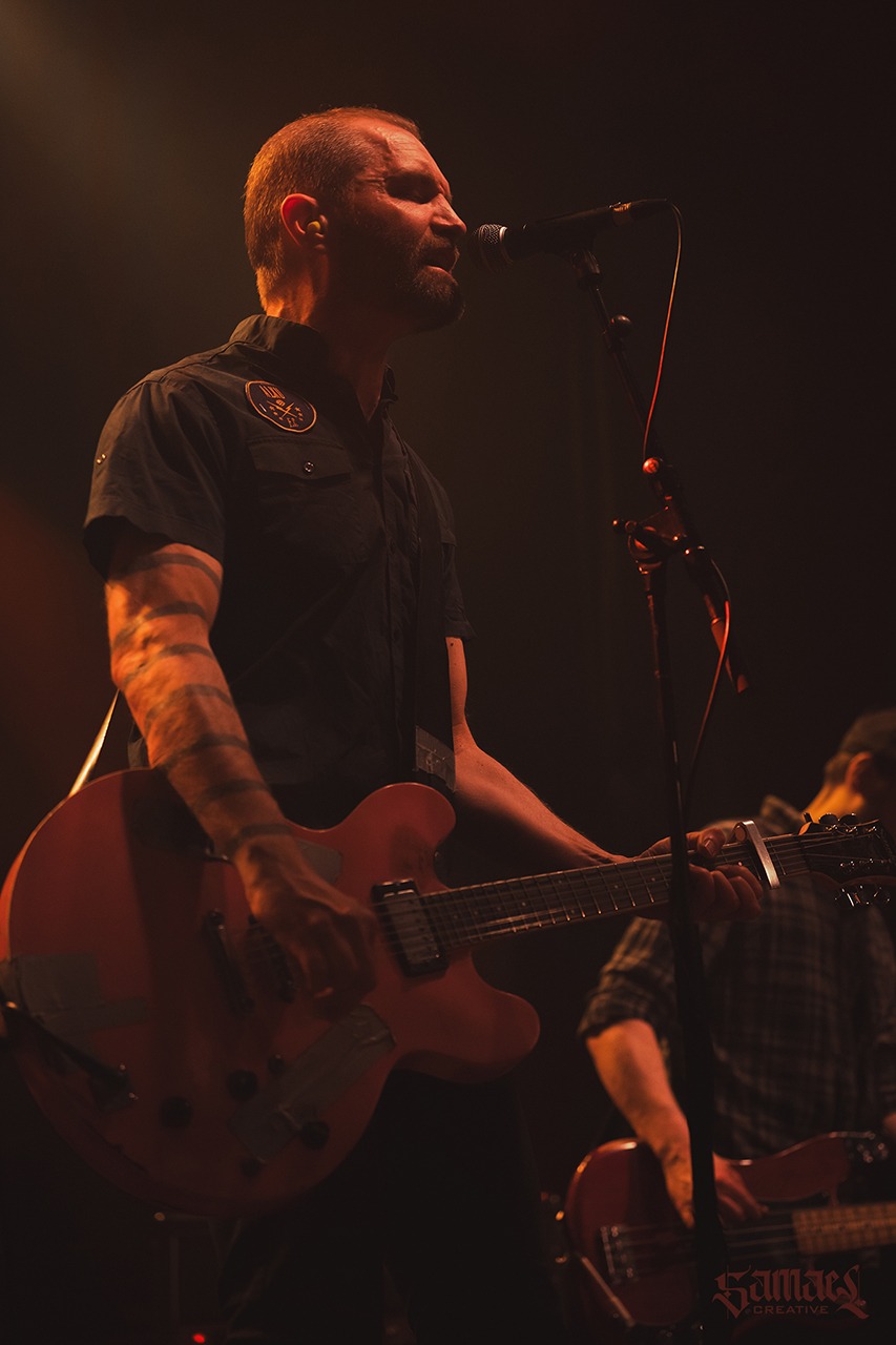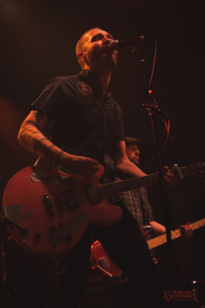 The headliner of the night was NEW MODEL ARMY from Northern England. Even though they have visited Finland a few times already, this was my first time seeing them live. They have a couple of songs like “51st State” and “Vagabonds,” which everyone instantly recognizes, so I also wanted to hear them live for a change. I admit I didn’t expect a wild show from such an old group who have been touring since the beginning of the ’80s. And as such, the show was what could be expected. What did stand out – quite literally – was someone from the audience who was able to stand on someone’s shoulders – I guess – for quite a long while without a security guard intervening, which could be because of the number of people blocking the security from reaching the middle of the crowd. Overall, it was a satisfying evening, and I can now cross seeing them off my bucket list.