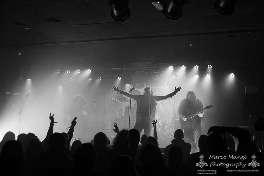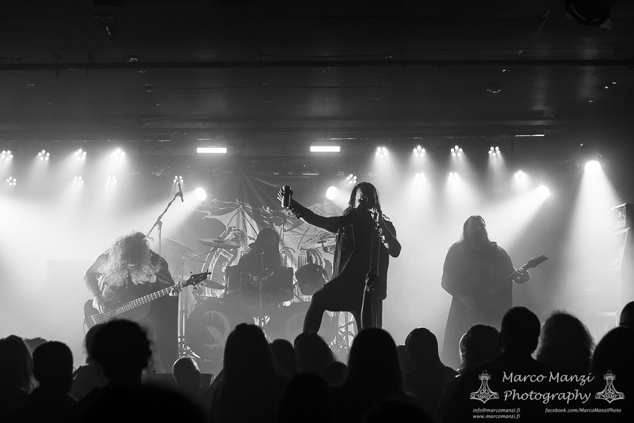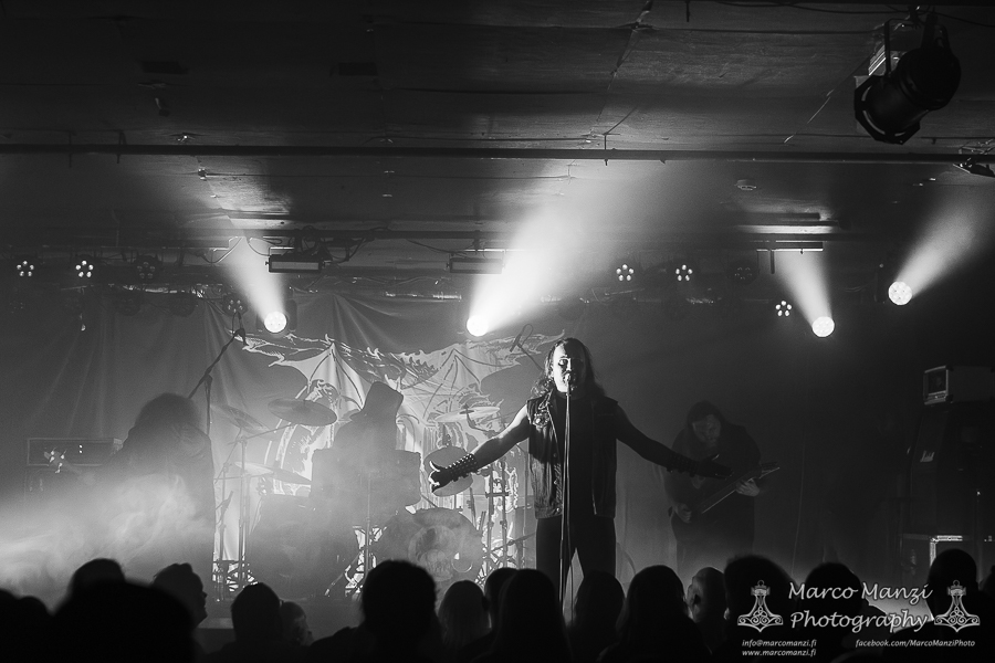 Hailing from Oulu, BELETH’S TRUMPET was a positive surprise. This very new, young band clearly takes inspiration from home and the old-school Finnish black metal. They do not reinvent the wheel, but they do what they do pretty well, with a good live energy and stage presence, making for good entertainment as the venue got progressively a bit more crowded. This is a band we will most likely see again at some festivals, and it’s always nice to see there are still people dedicated to no-nonsense black metal even in the younger generations.