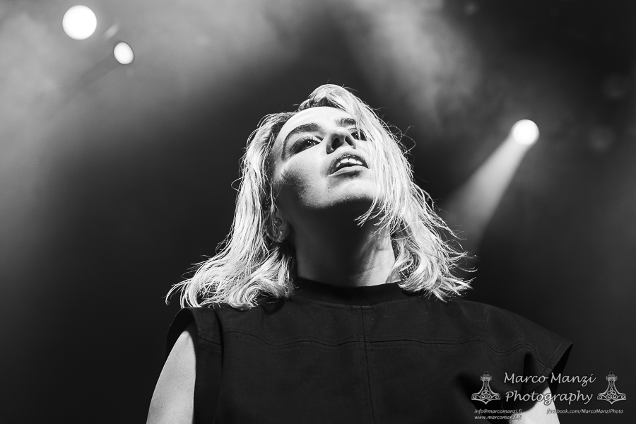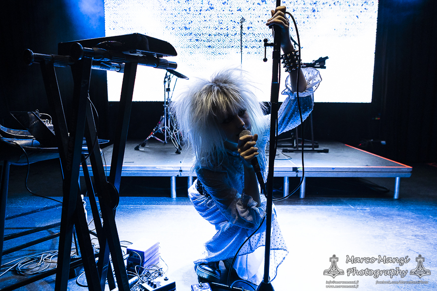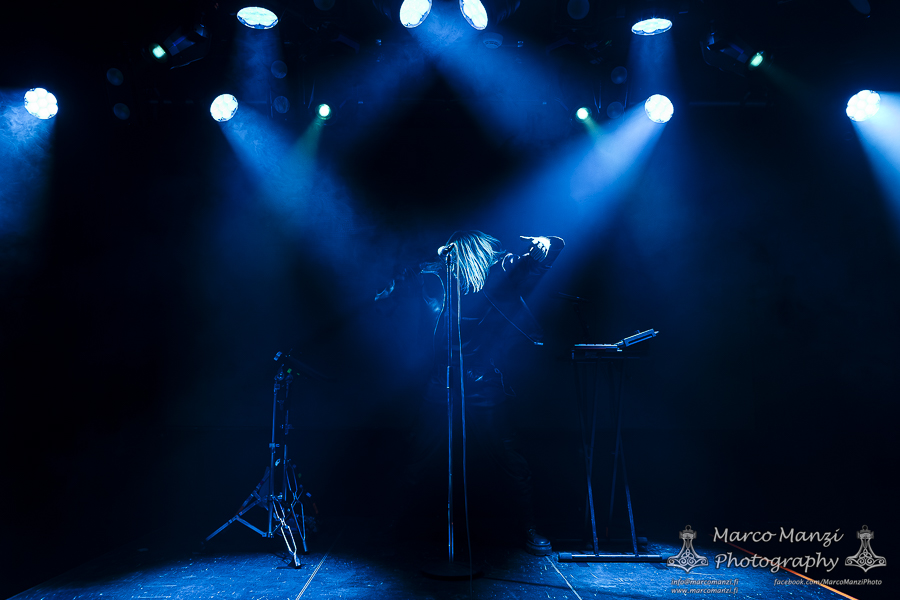 As the fans lumped together closer to the stage, after a long break, they welcomed Annelise Morel a.k.a. SIERRA VEINS onto the stage, while the show began with the titletrack from her latest album. Accompanied much like the previous band by the visuals on screen, the show was slightly different than usual, if anything due to the missing stage lights setup that usually has been part of her shows, but also because the Parisian artist took a different approach by occasionally jumping off her platform to sing closer to the audience, something made possible partly by the nature of her new material.
