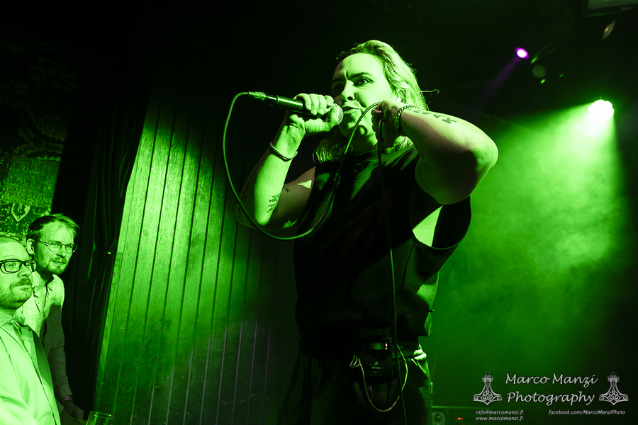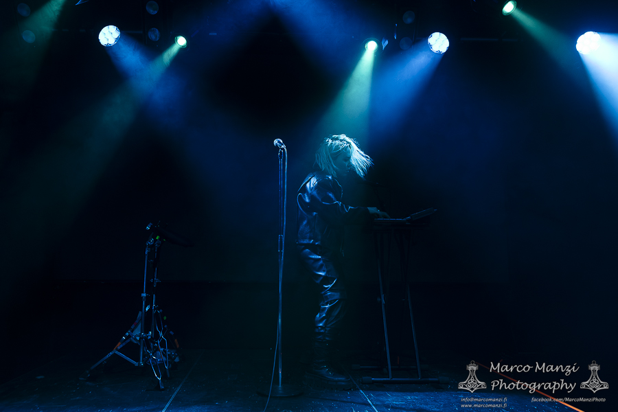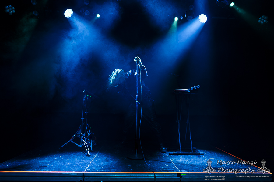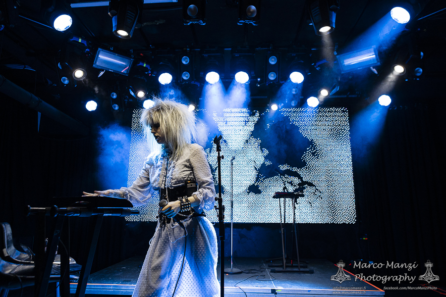 A little more than two years after her first headlining show in Helsinki, the French synthwave artist SIERRA – now known as SIERRA VEINS – returned in the Finnish capital with a new record (“In The Name of Blood”), a new outlook on her sound, and as we said, a new name. According to the musician herself, a choice reflecting her artistic and personal direction in her career and its evolution. Supporting the main act this Saturday night at On The Rocks was local coldwave/synthpunk act SUZI SABOTAGE. While not sold out, there was still a sizable crowd in the venue when the latter came on stage to showcase her material in her fairly short set. Clearly she has gained a good following among the people in the scene, and delivered an intriguing performance with songs such as “Persona Non Grata,” “Love at First Bite,” and “Nazi Goths, Fuck Off!,” alternating herself between synths, vocals, and electric kantele, which gives her music that extra touch of Finnish authenticity, making use of the whole stage during the show. While short, the gig gained her the compliments of many people present tonight, so all in all, it went pretty well.