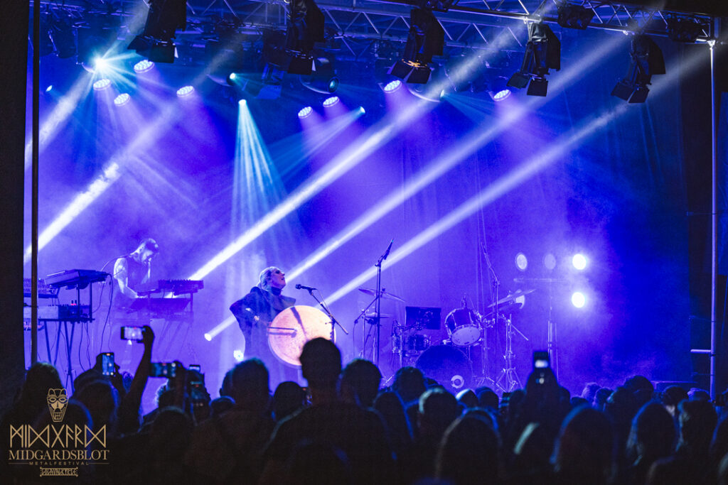 After an amazing black metal performance, we moved forward, this time in Gildehallen, to see a very fun and unexpected show, Liminal by NEBALA, led by Jonas Lorentzen and Ghilli Pratti. This was truly a new and refreshing experience and very fun for all of us in the crowd. Ghilli is a multi-instrumentalist, and he showed us a variety of instruments on stage, enchanting the crowd, and with the amazing singing by Jonas, it was truly a magical and refreshing moment for all of us. Moving forward, they invited drummer Buscar Nombre, who joined and blended amazingly with them. After that, the band invited everyone to sing along. It was like a battle of voices inside the Gildehallen, but truly a very fun moment—connecting with the band and the crowd, contributing to the live performance.
