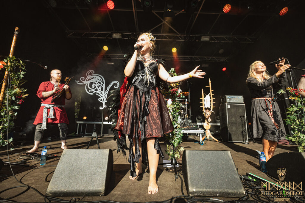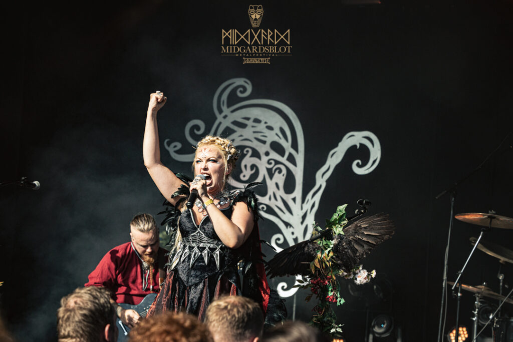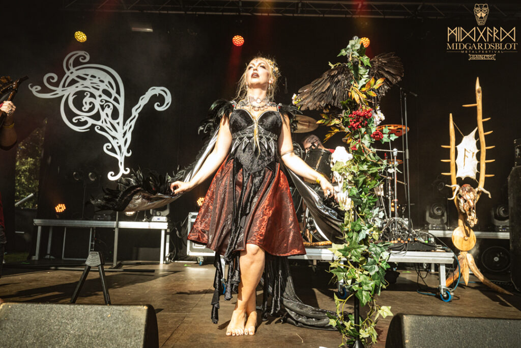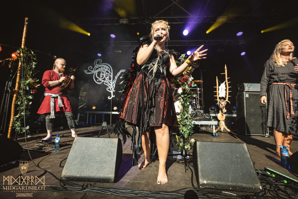 After this amazing connection of a show with NEBALA, we moved to one of the last shows of the night, and this time we enjoyed the amazing singer EIVØR PALDSDOTTIR from the Faroe Islands. Her voice was magical and delightful, setting a relaxing and enchanting vibe in the audience. Reaching amazing tones, Eivør’s performance included some of her most recent songs like “Jarðartrá,” “Enn,” and “Upp Úr Øskuni,” but also the amazing classics “Í Tokuni,” “Trøllabundin,” “Salt,” and “Falling Free.” We are looking forward to seeing her performances in Finland soon! With this amazing performance, we closed the night and went to the bonfire.