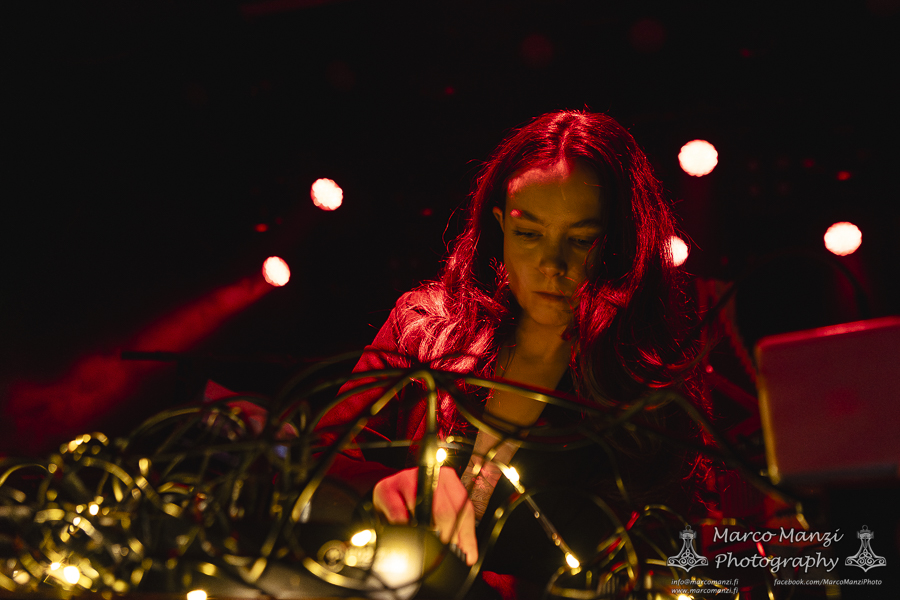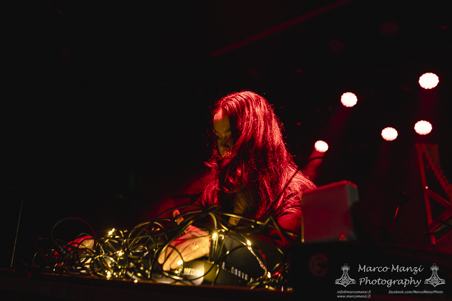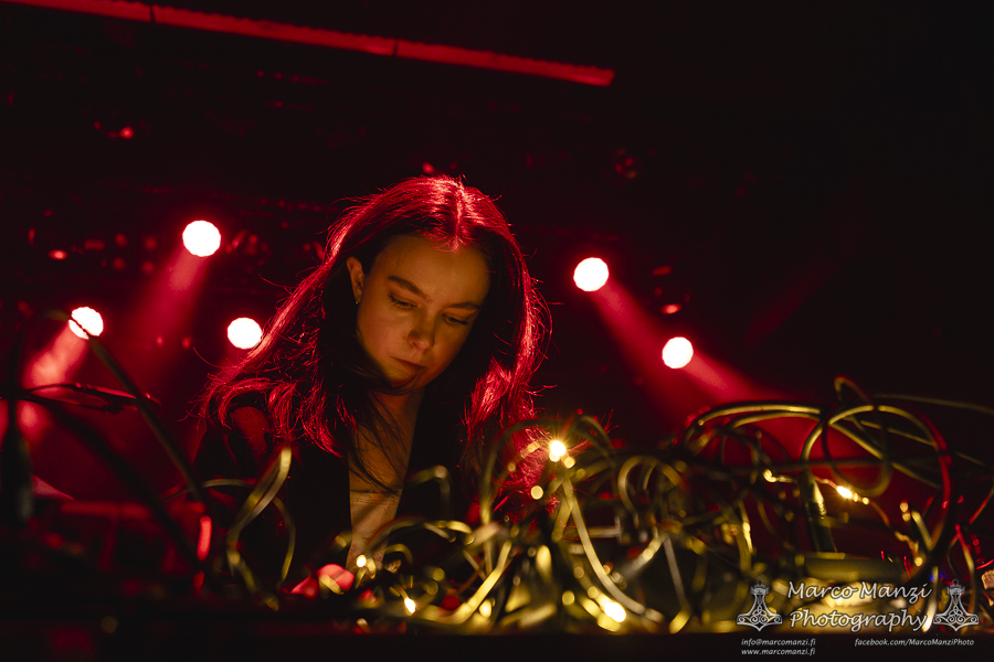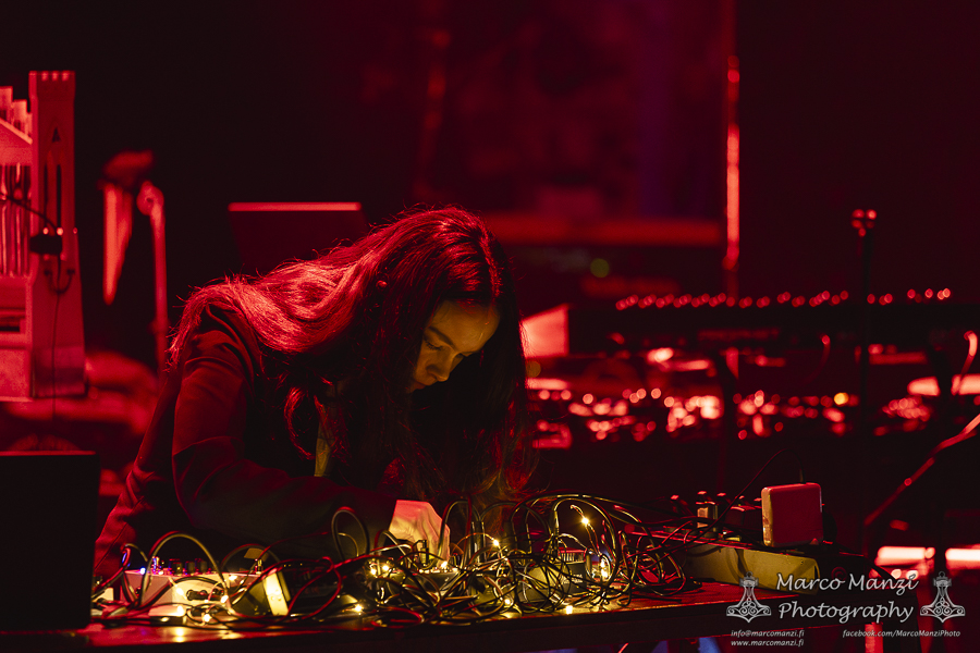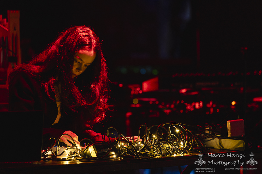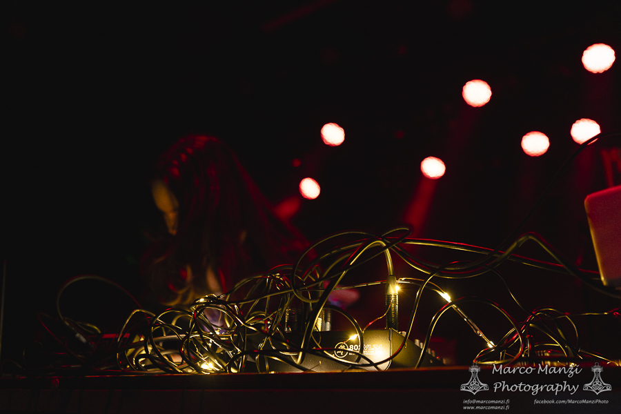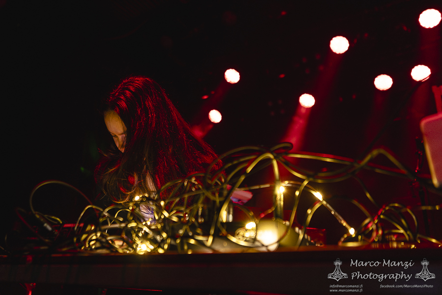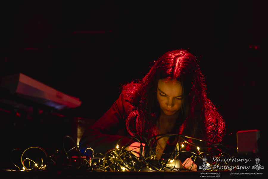 It had been a while since the last time inside Tavastia, and some small renovations made the space somewhat more accessible to the crowd, although it’s still really hard to squeeze into the main hall when the venue is full, as was the case tonight. However, people were still flowing in when KLARA LEWIS took her spot on stage at the big table set up with festive Christmas lights with all her synths. Her set proved to be a good background for the audience to chill while waiting for the main act: filled with samples and sound recordings, it was more akin to an art performance than a concert, setting up the atmosphere just right.