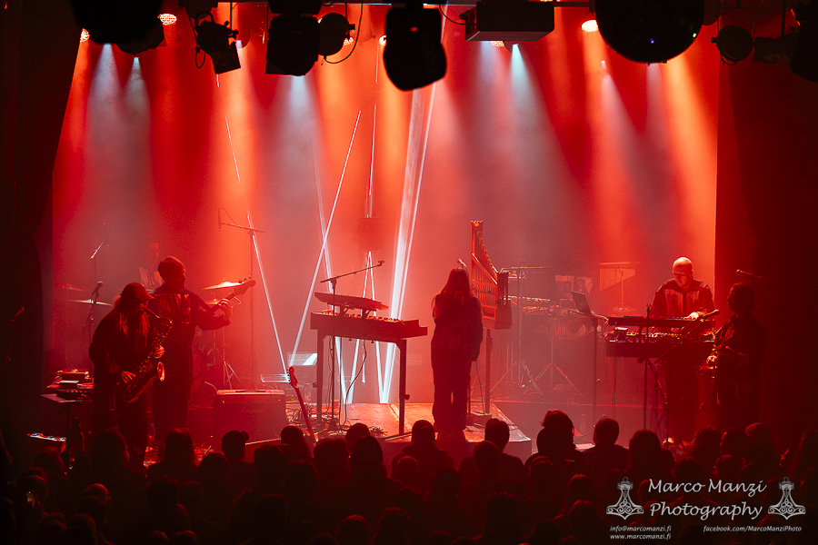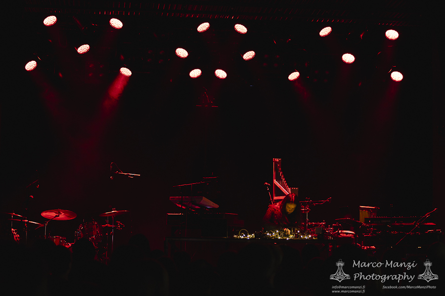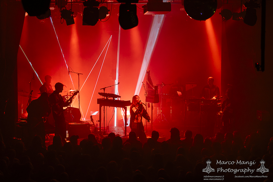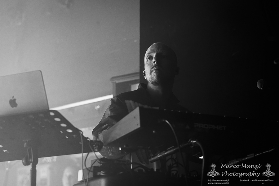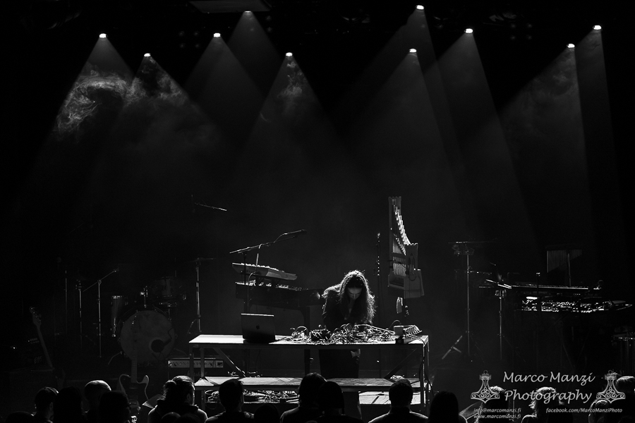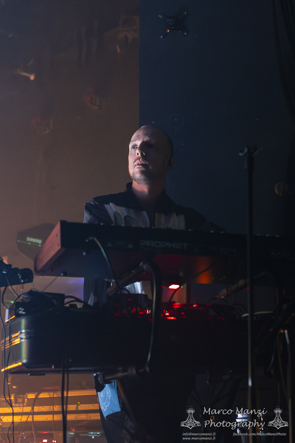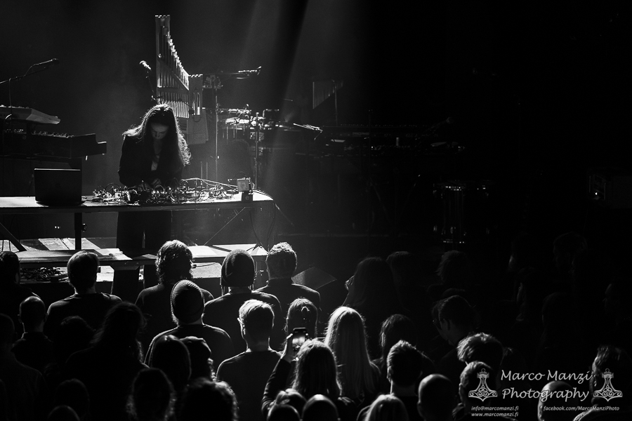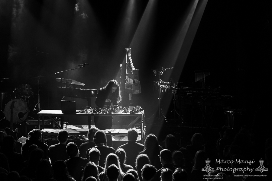 It had been a while since the last time inside Tavastia, and some small renovations made the space somewhat more accessible to the crowd, although it’s still really hard to squeeze into the main hall when the venue is full, as was the case tonight. However, people were still flowing in when KLARA LEWIS took her spot on stage at the big table set up with festive Christmas lights with all her synths. Her set proved to be a good background for the audience to chill while waiting for the main act: filled with samples and sound recordings, it was more akin to an art performance than a concert, setting up the atmosphere just right.