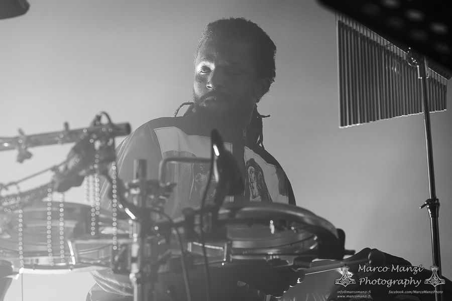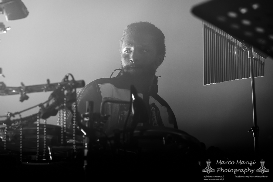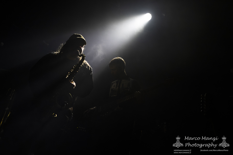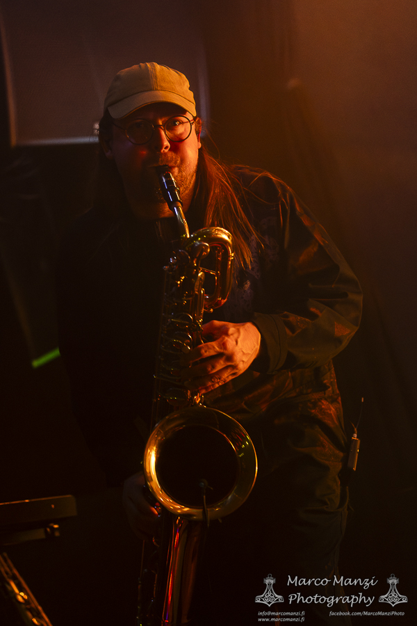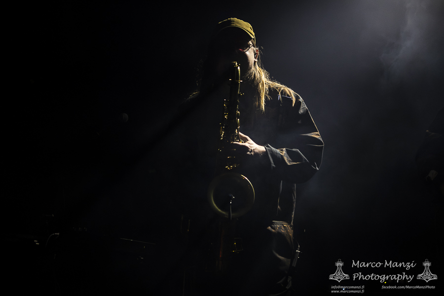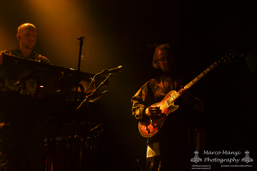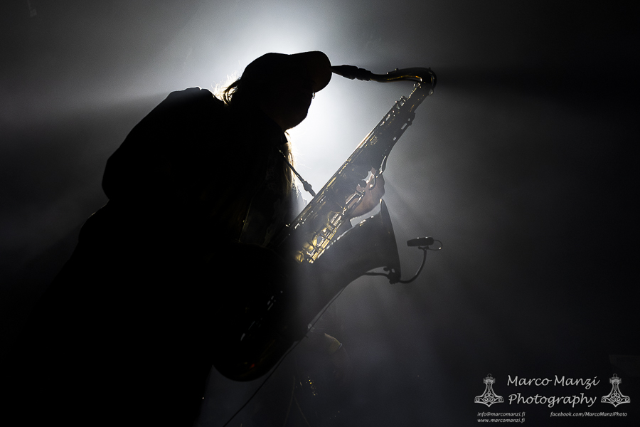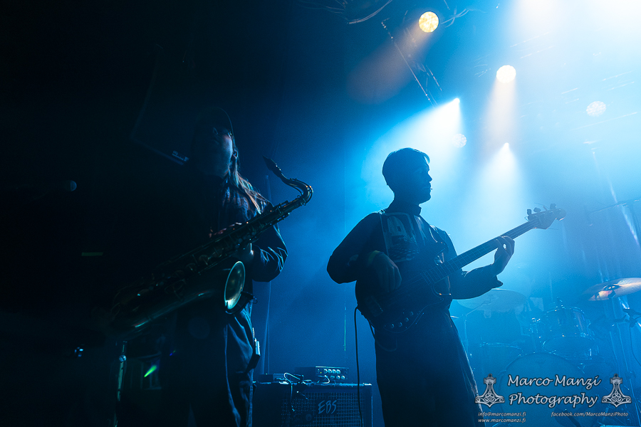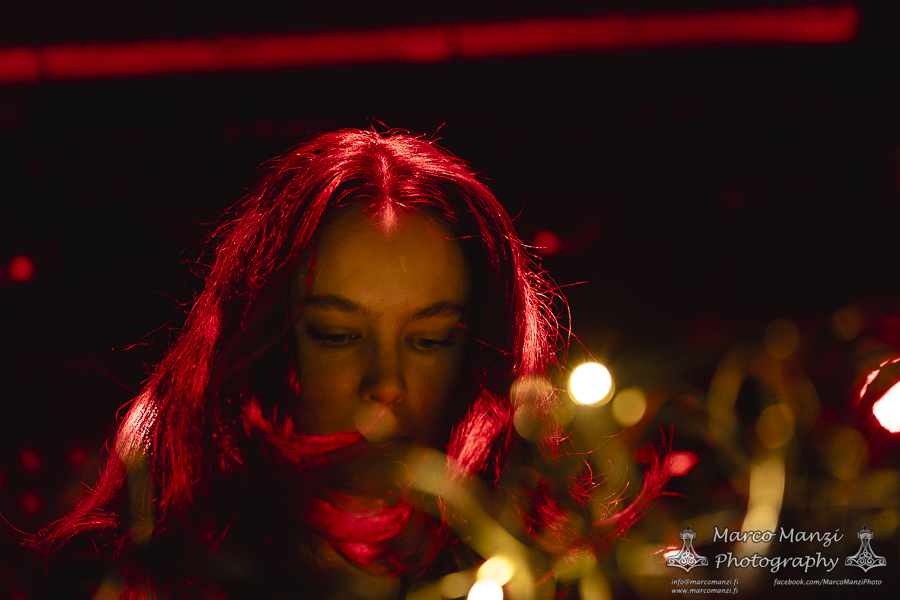 It had been a while since the last time inside Tavastia, and some small renovations made the space somewhat more accessible to the crowd, although it’s still really hard to squeeze into the main hall when the venue is full, as was the case tonight. However, people were still flowing in when KLARA LEWIS took her spot on stage at the big table set up with festive Christmas lights with all her synths. Her set proved to be a good background for the audience to chill while waiting for the main act: filled with samples and sound recordings, it was more akin to an art performance than a concert, setting up the atmosphere just right.