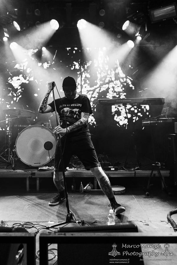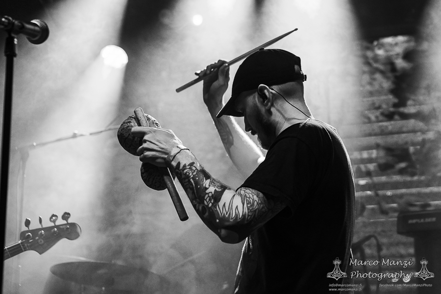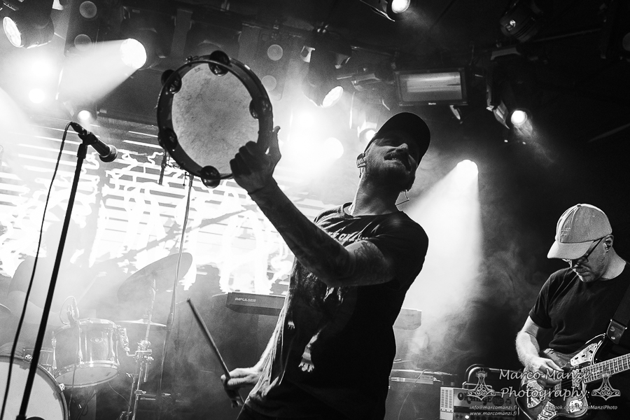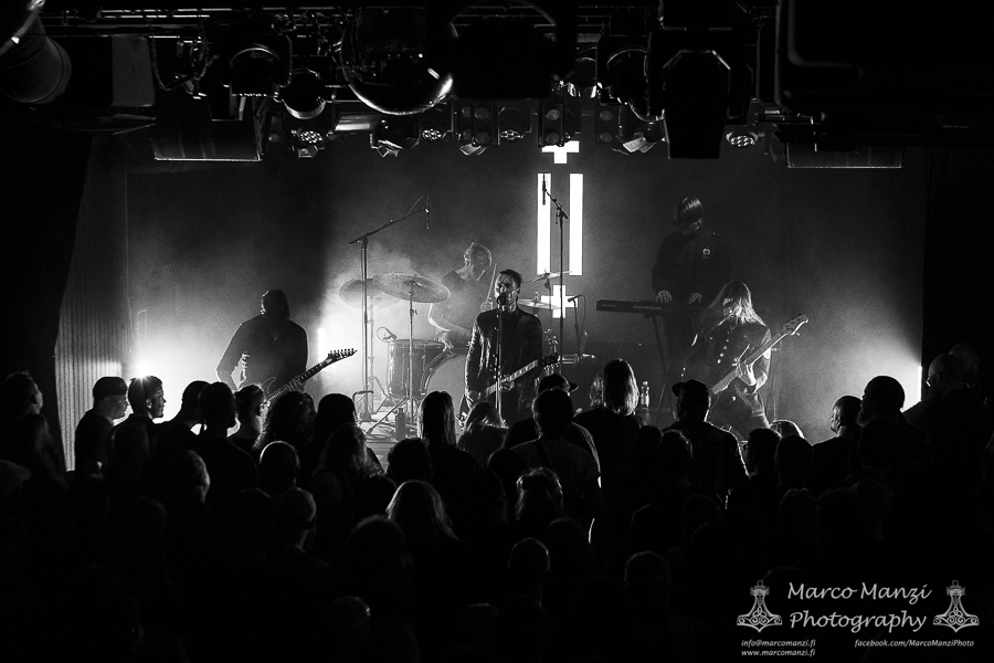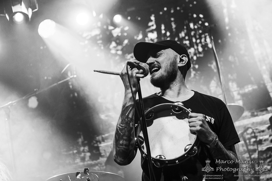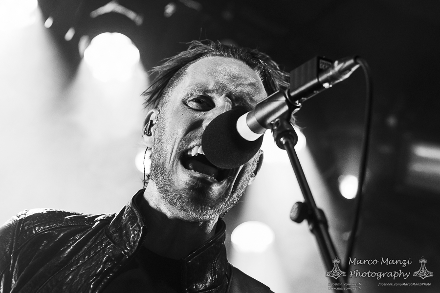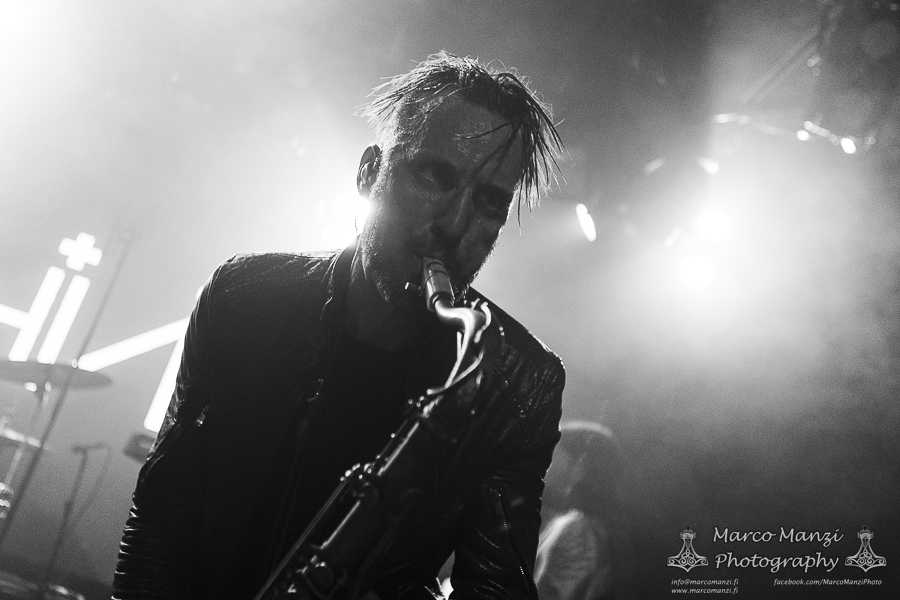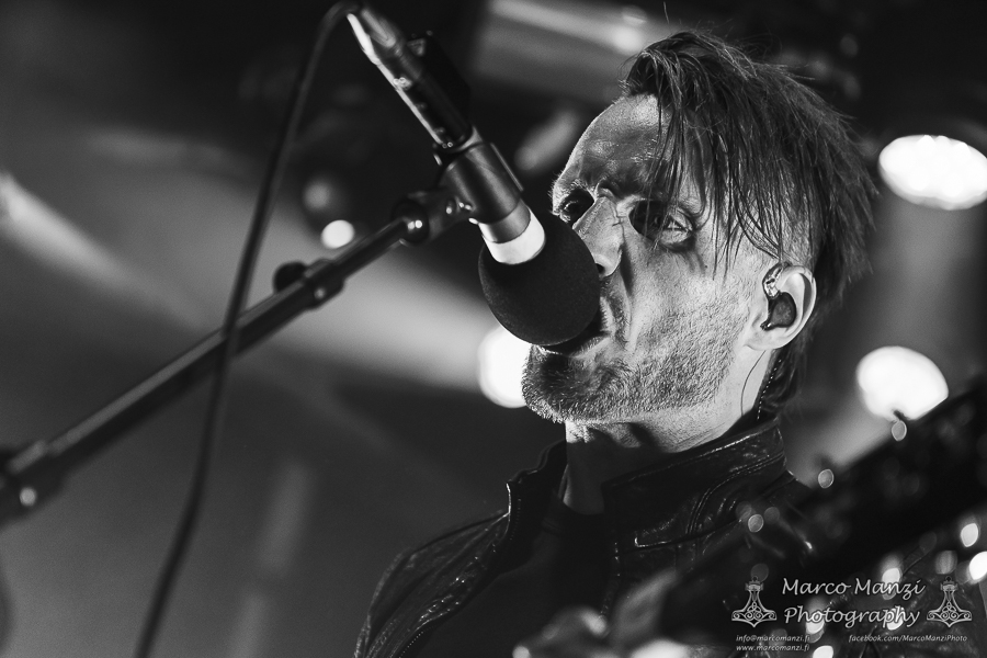 The band even started a few minutes late to give time to the fans to make their way in front of the stage. Even though for the whole concert, there was a visible gap between them, in a typical Finnish fashion. The psychedelic stoner/doom band lead by Tuomas Valtanen (who was visibly ill) seemed like a strange choice of support band for this show (thinking in a more industrial-like fashion perhaps). However, they did collect a good amount of cheers from the audience who quietly listened to their repertoire, with the band’s visuals in the background, and the occasional use of the tambourine and other more “exotic” instruments.