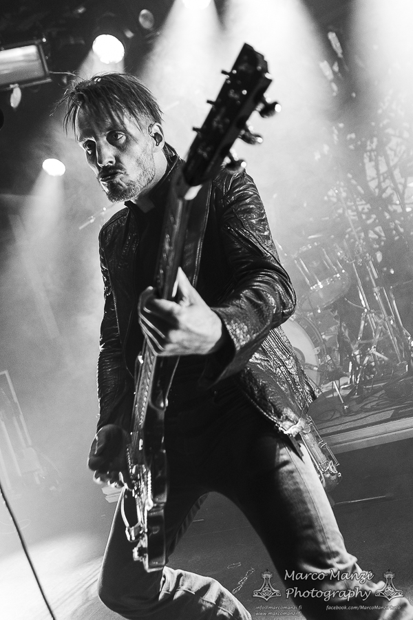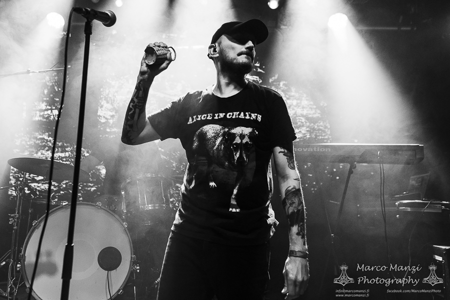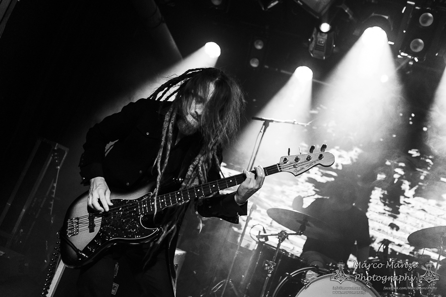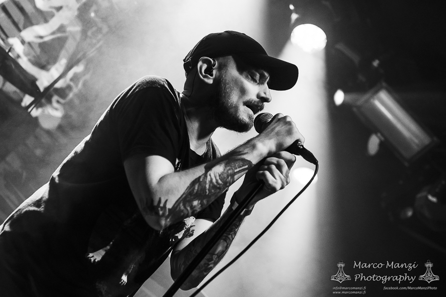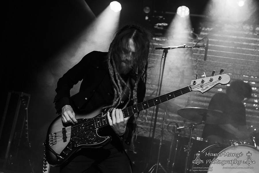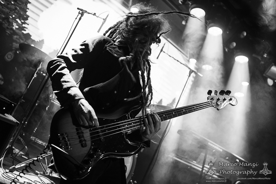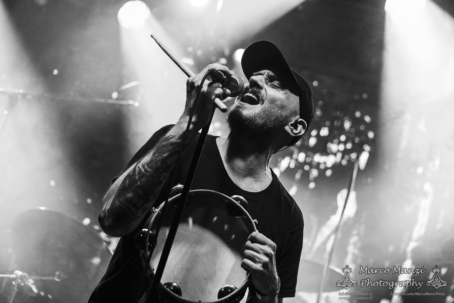 The band even started a few minutes late to give time to the fans to make their way in front of the stage. Even though for the whole concert, there was a visible gap between them, in a typical Finnish fashion. The psychedelic stoner/doom band lead by Tuomas Valtanen (who was visibly ill) seemed like a strange choice of support band for this show (thinking in a more industrial-like fashion perhaps). However, they did collect a good amount of cheers from the audience who quietly listened to their repertoire, with the band’s visuals in the background, and the occasional use of the tambourine and other more “exotic” instruments.