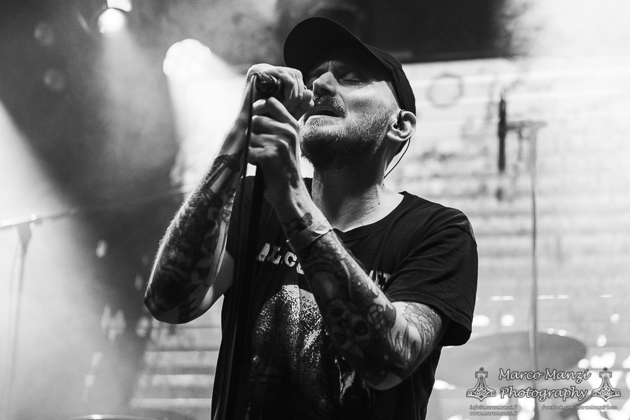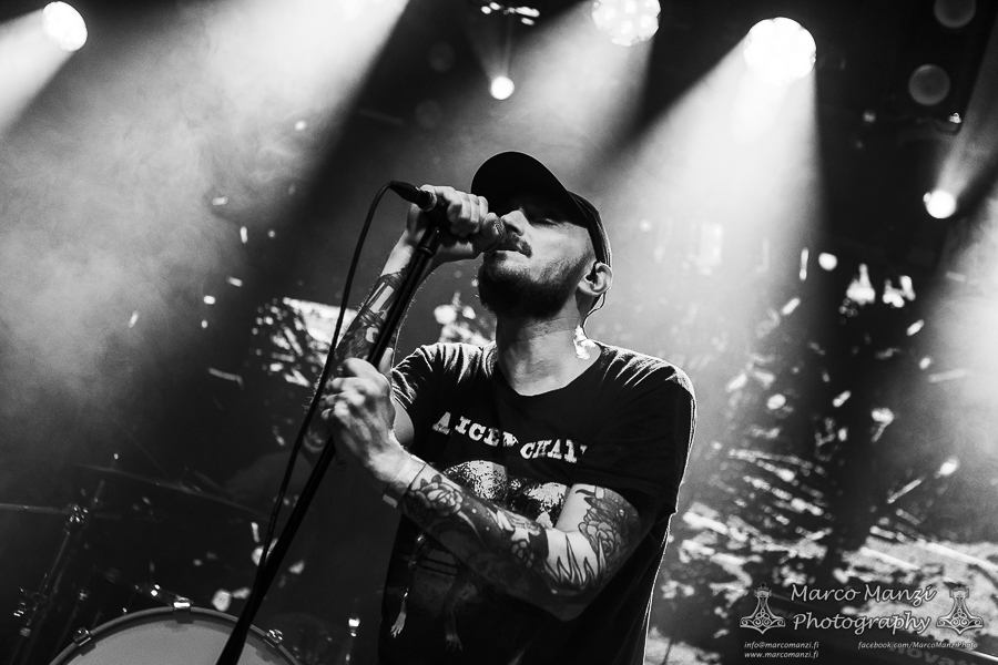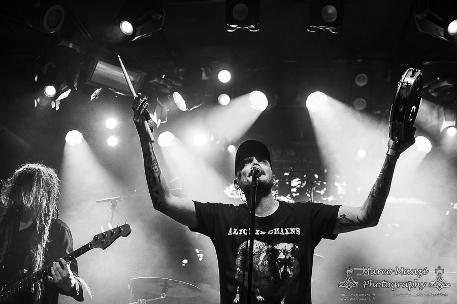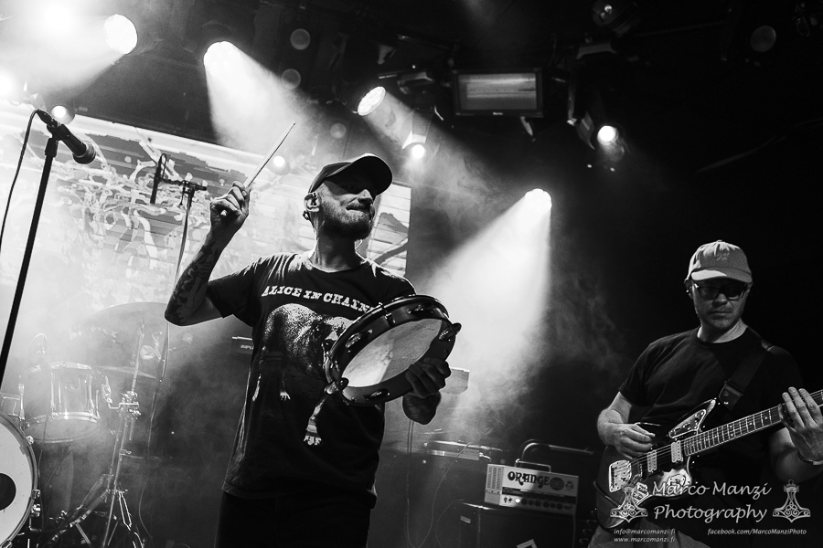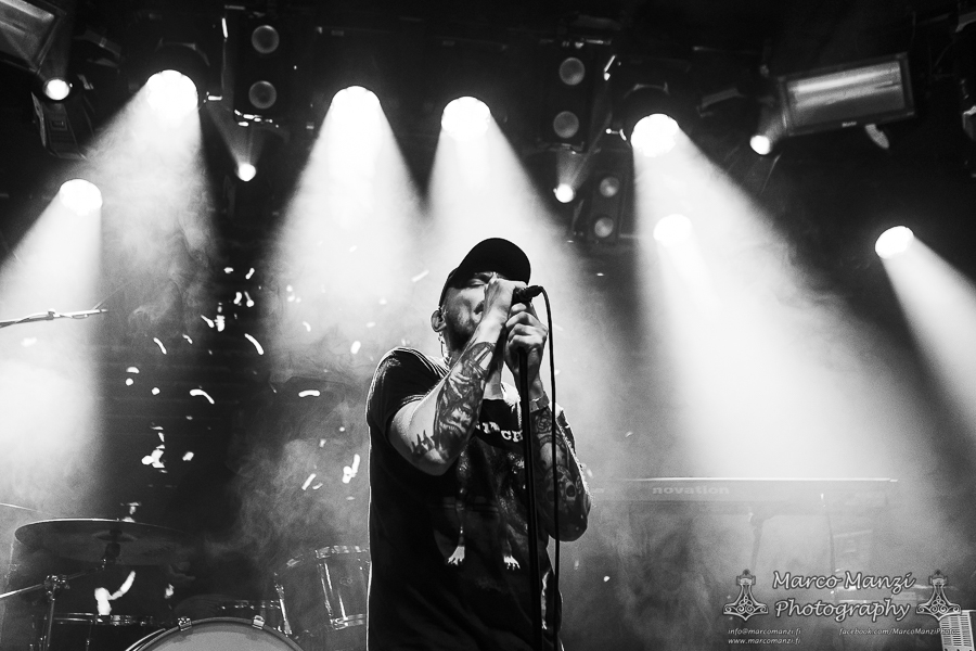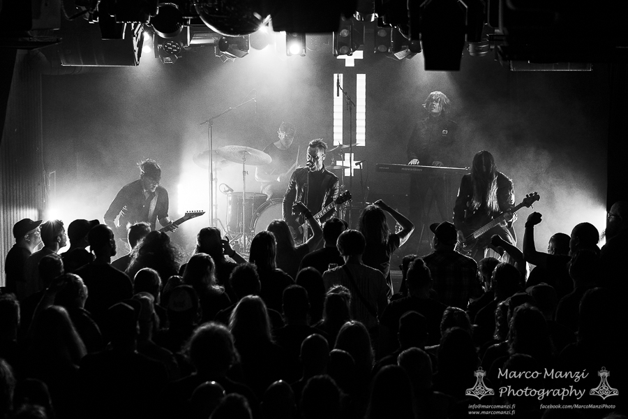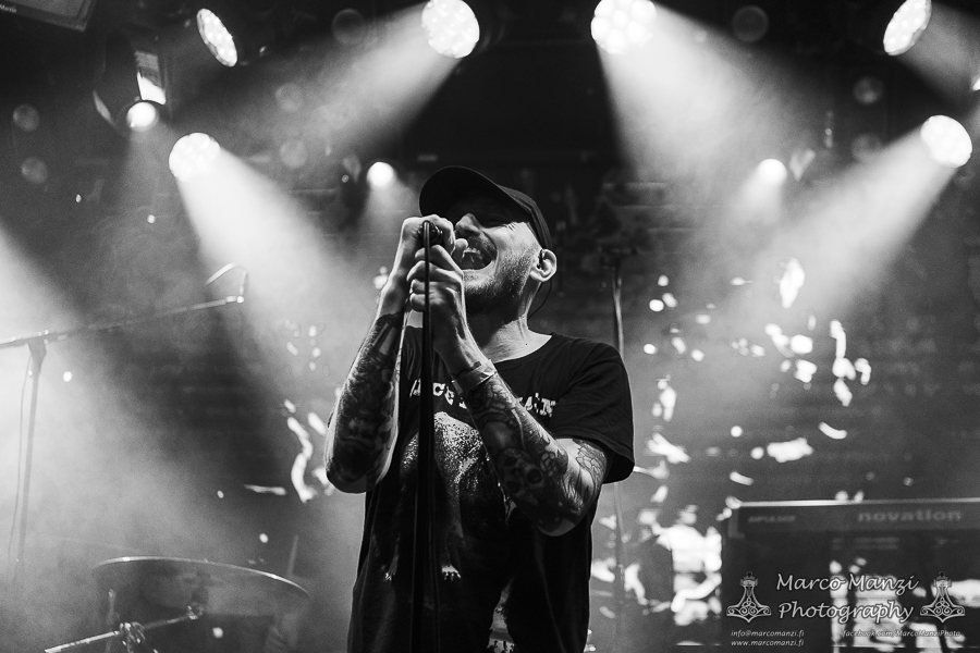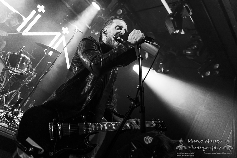 The band even started a few minutes late to give time to the fans to make their way in front of the stage. Even though for the whole concert, there was a visible gap between them, in a typical Finnish fashion. The psychedelic stoner/doom band lead by Tuomas Valtanen (who was visibly ill) seemed like a strange choice of support band for this show (thinking in a more industrial-like fashion perhaps). However, they did collect a good amount of cheers from the audience who quietly listened to their repertoire, with the band’s visuals in the background, and the occasional use of the tambourine and other more “exotic” instruments.
