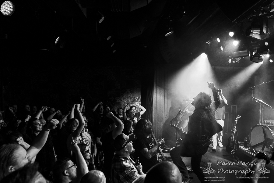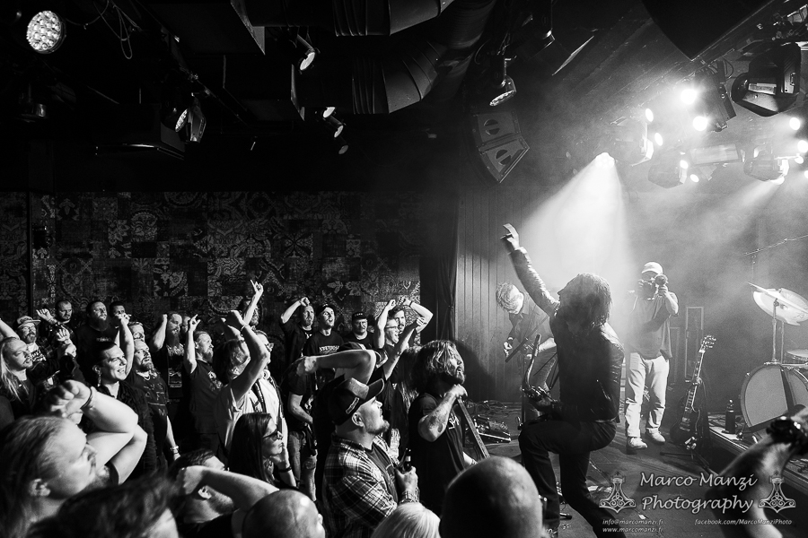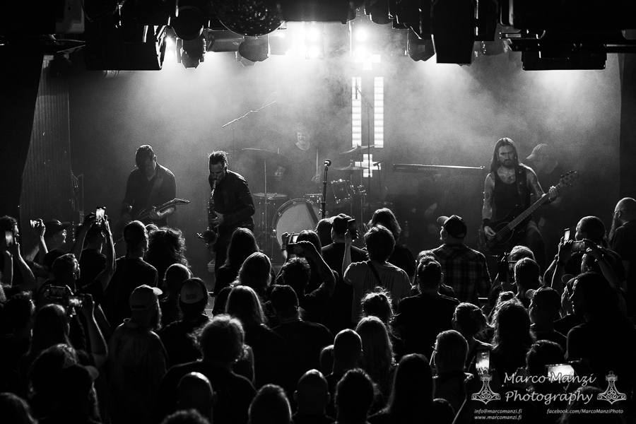 In the end, it worked quite nicely, and people began to approach the stage close to SHINING‘s showtime. Now with a decent-size crowd, enough to fill up all the area in front of the stage at least and some of the balcony, the show began with that few minutes lag carried on from earlier. However, eventually the Norwegians started pouring their weird avant-garde experimental fusion of jazz, prog, and extreme music onto the excited fans (especially a couple of guys in the first row). “Blackjazz” is definitely the record that brought this band’s fortune, and these songs still sound as fresh (and weird) live as the first time. With Antti Karhu as live member now for quite a few years, there is also a bit of “Finnishness” to the Norwegian band, led once again by a very energetic Munkeby, inciting the audience in close contact with them and entertaining them with his charismatic playing style. There were a few issues during the gig, like when the mic fell off the stand, and we held it up for the singer for the rest of the song, or a bit later other technical issues that prompted a small break, but nothing to impact the atmosphere and enjoyment of the fans. They felt really close to the band both before and after the show, ending with the usual “21st Century Schizoid Man,” (KING CRIMSON), and the band’s selfie with the audience in the background. It was fun to get to see these Norwegian do what they do best after a few years since their last show here in town. They also got to spend quite a while at the merch desk with the fans after the show, which is always appreciated.