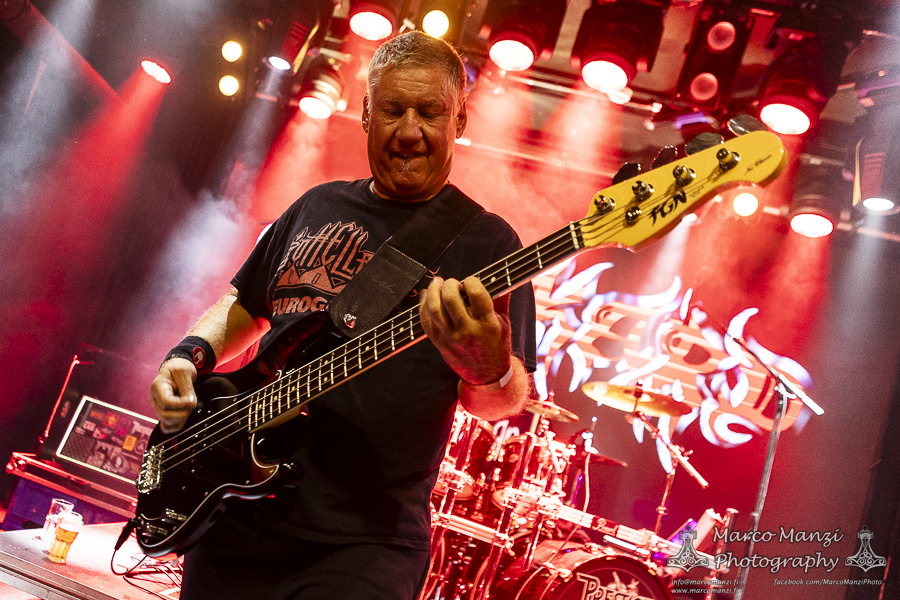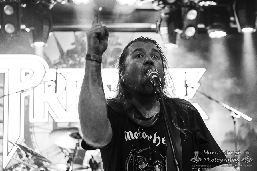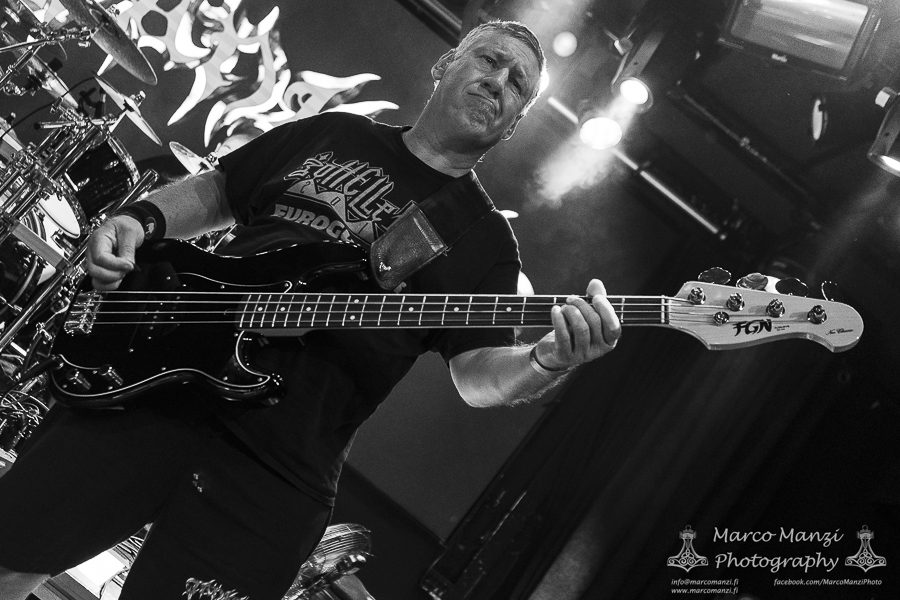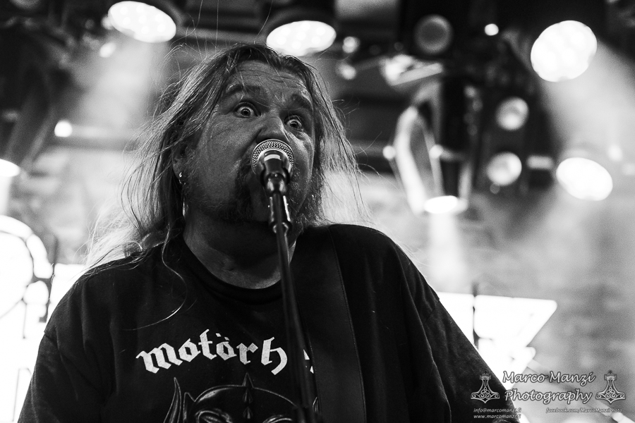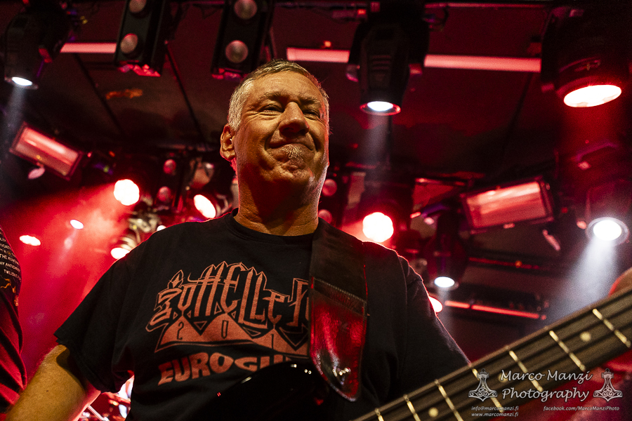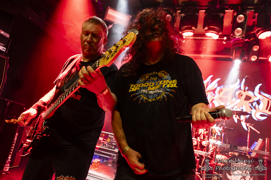 Time went by really fast, and eventually it was TANKARD‘s turn to grab the scene. The German foursome began with “One Foot In The Grave” from their 2017 record of the same name. Welcomed by an enthusiastic crowd, the band immediately owned their full attention, and oftentimes took advantage of the many beers coming their way from all directions. Their set was incredibly well-balanced across 40 years of discography, but despite not getting any younger, they still know how to party, and they were not shying out from it. After “Rules For Fools” – approximately midway through the show – came a short break leading into “Time Warp.” At this point, the whole of On The Rocks was singing along through most of the songs, heads banging, some people moshing, the full package. The temperature rose even more when “Die With A Beer In Your Hand” began the slow but inevitable ride towards the end of the show. Eventually, we arrived at the encore, between the applause and more beer flowing, as well as the tradition of inviting one of the ladies on stage to dance along with the vocalist Gerre, then another encore, and the final moments with “(Empty) Tankard.” Hard to believe these guys have been playing for so long and yet they are able to still pull off such kind of show.