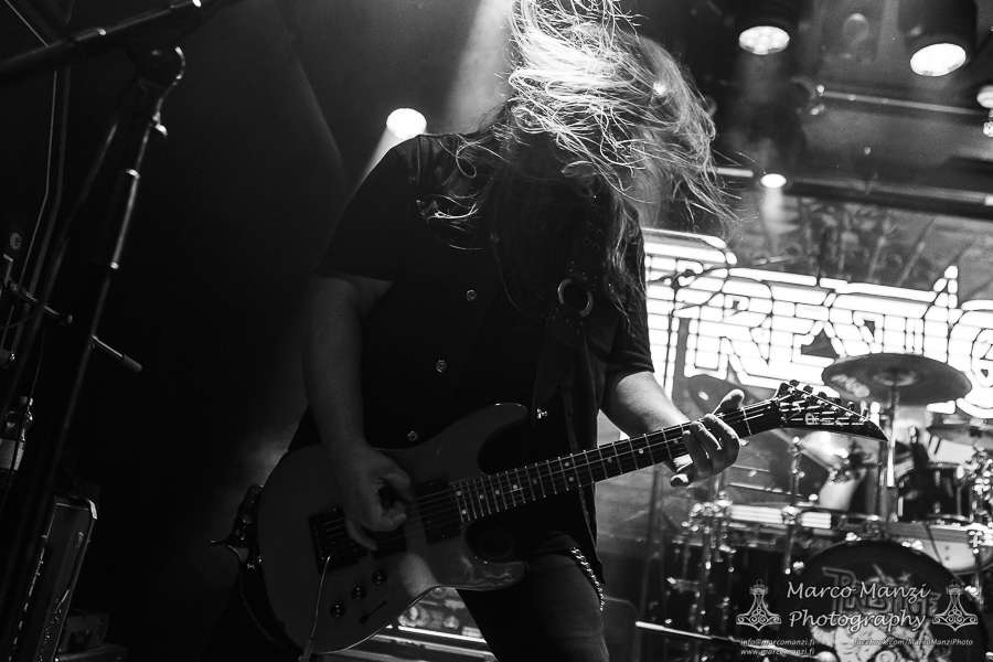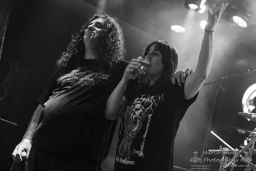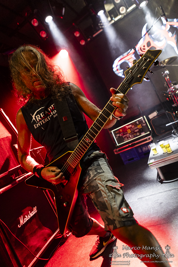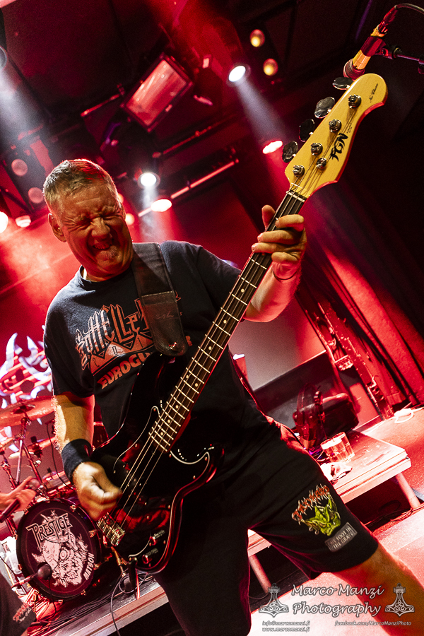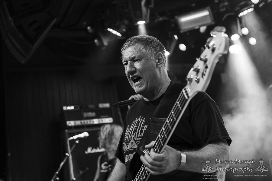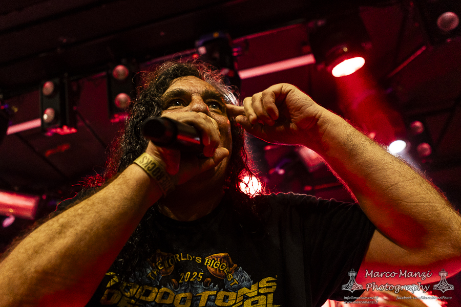 Time went by really fast, and eventually it was TANKARD‘s turn to grab the scene. The German foursome began with “One Foot In The Grave” from their 2017 record of the same name. Welcomed by an enthusiastic crowd, the band immediately owned their full attention, and oftentimes took advantage of the many beers coming their way from all directions. Their set was incredibly well-balanced across 40 years of discography, but despite not getting any younger, they still know how to party, and they were not shying out from it. After “Rules For Fools” – approximately midway through the show – came a short break leading into “Time Warp.” At this point, the whole of On The Rocks was singing along through most of the songs, heads banging, some people moshing, the full package. The temperature rose even more when “Die With A Beer In Your Hand” began the slow but inevitable ride towards the end of the show. Eventually, we arrived at the encore, between the applause and more beer flowing, as well as the tradition of inviting one of the ladies on stage to dance along with the vocalist Gerre, then another encore, and the final moments with “(Empty) Tankard.” Hard to believe these guys have been playing for so long and yet they are able to still pull off such kind of show.