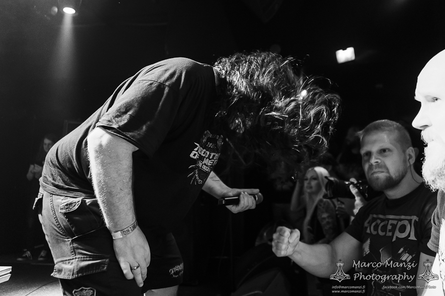 Following up was PRESTIGE with their very traditional – and US-influenced – Finnish thrash, being one of the historical names in the genre along with STONE and NATIONAL NAPALM SYNDICATE, to name a couple. At least until the early nineties, until they made a comeback nearly 15 years later. They played a mix of newer and early material, with a fairly short set (like the previous band), in which they kept the audience’s attention alive, frequently interacting with them while showcasing their repertoire.