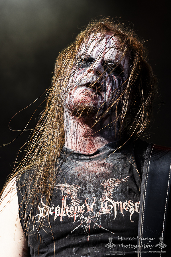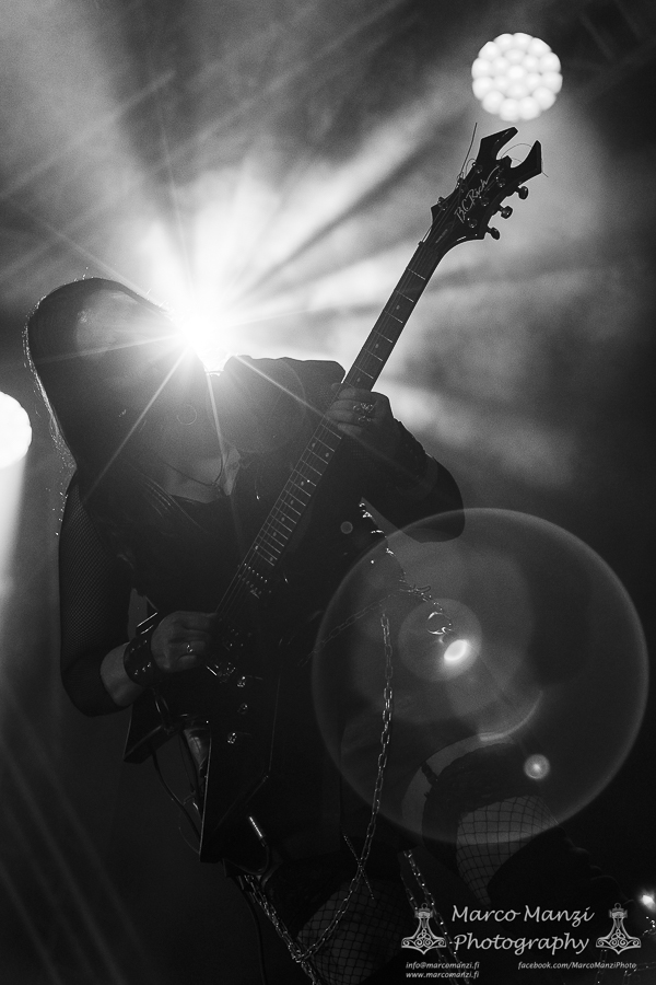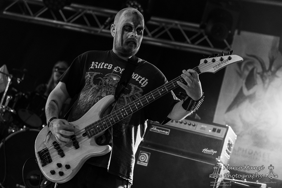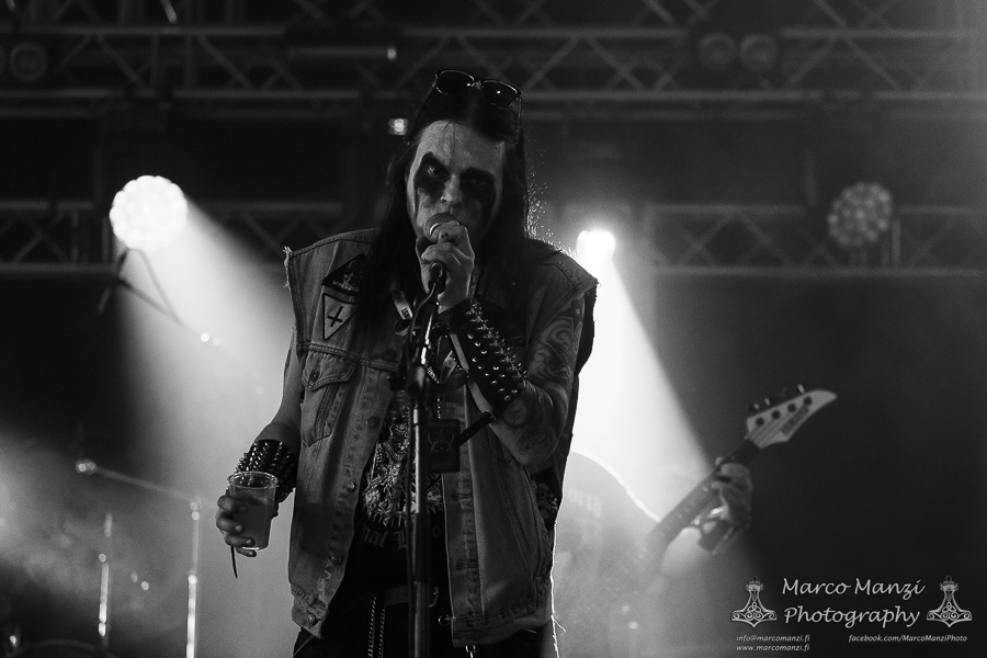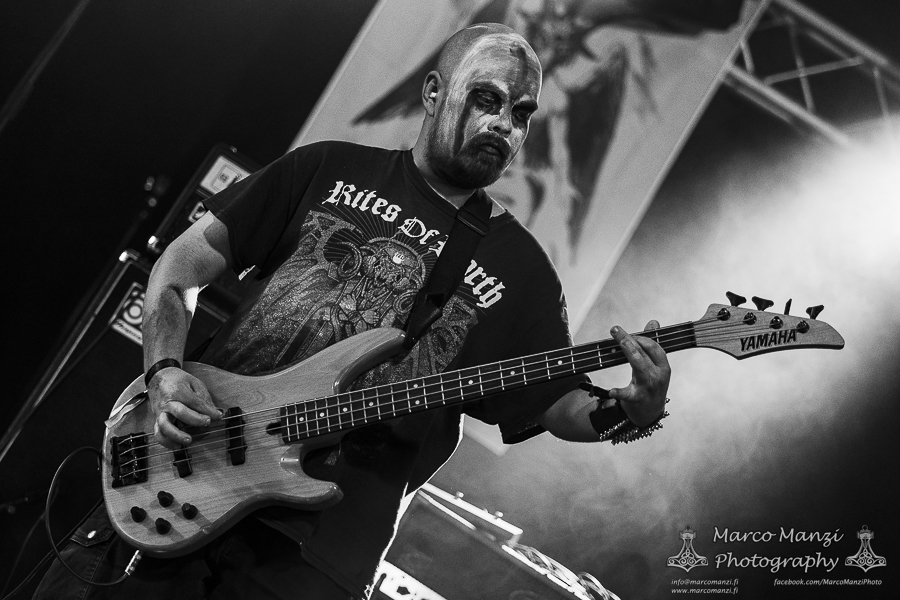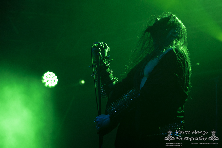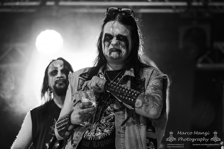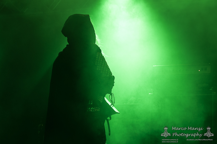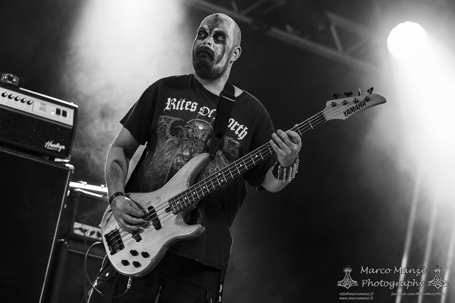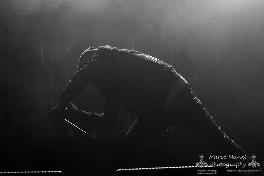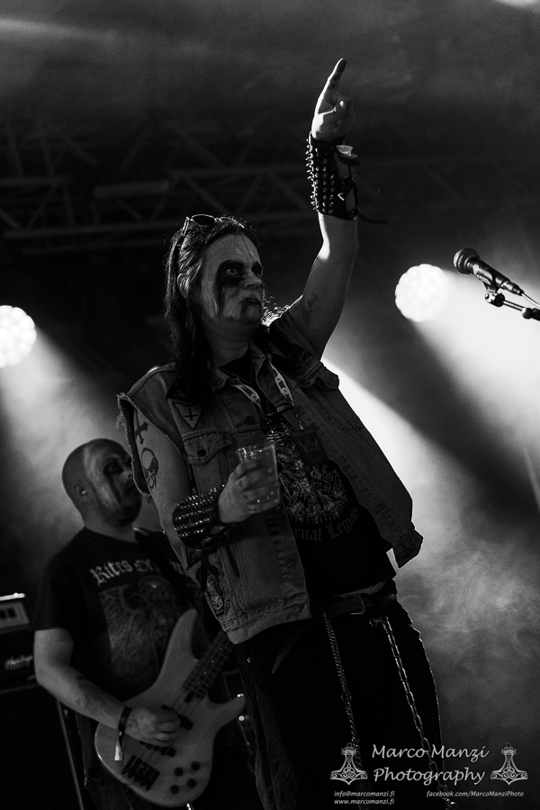 Back indoors, we found two guys carrying a torch each towards the stage, only to put the fire out inside a bucket full of water as soon as they walked past the barrier. Confusing. This was the prelude to the HELLWIND & VRITRAHN collaboration show, recreating live their work “The Grand Glorification of Satan to Honor Him with Praise and Worship by Execution of Devilish Work in Thy Flesh and Blood” (not the shortest of titles, I know… BAL-SAGOTH would be proud!). Joining the band on stage was also Natalie Koskinen (SHAPE OF DESPAIR, THE ABBEY, PAARA, …) on guitar and backing vocals, which was a pleasant surprise. Vritrahn (WHITE DEATH) took most of the spotlight, even though nothing particularly weird or harmful (for the audience) happened this time around. The show ended with the two artists, Hellwind and Vritrahn, cutting themselves and sharing their blood, in a symbolic closure of a cycle that began with their collaboration album, culminating in this live show. Too bad that from the audience’s point of view, this was pretty hard to see, given the stage was fully lit by an intense red backlight that made it difficult to notice what was going on.