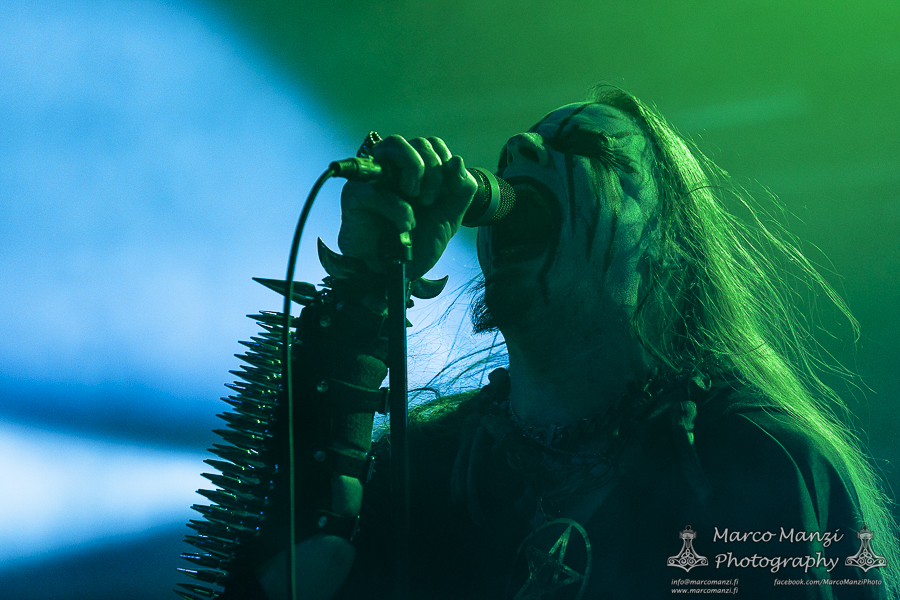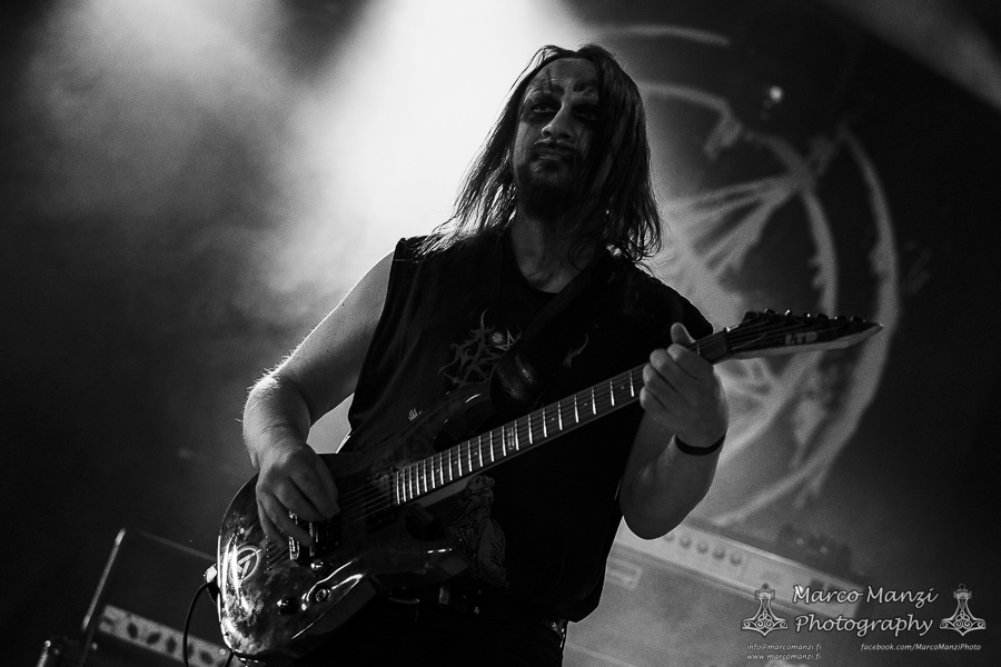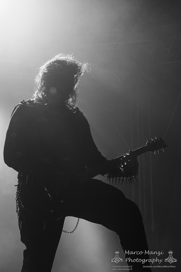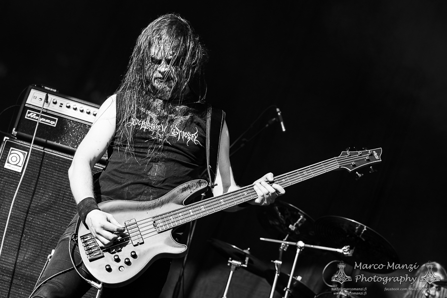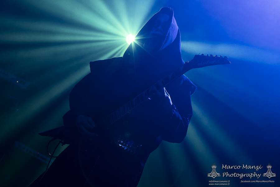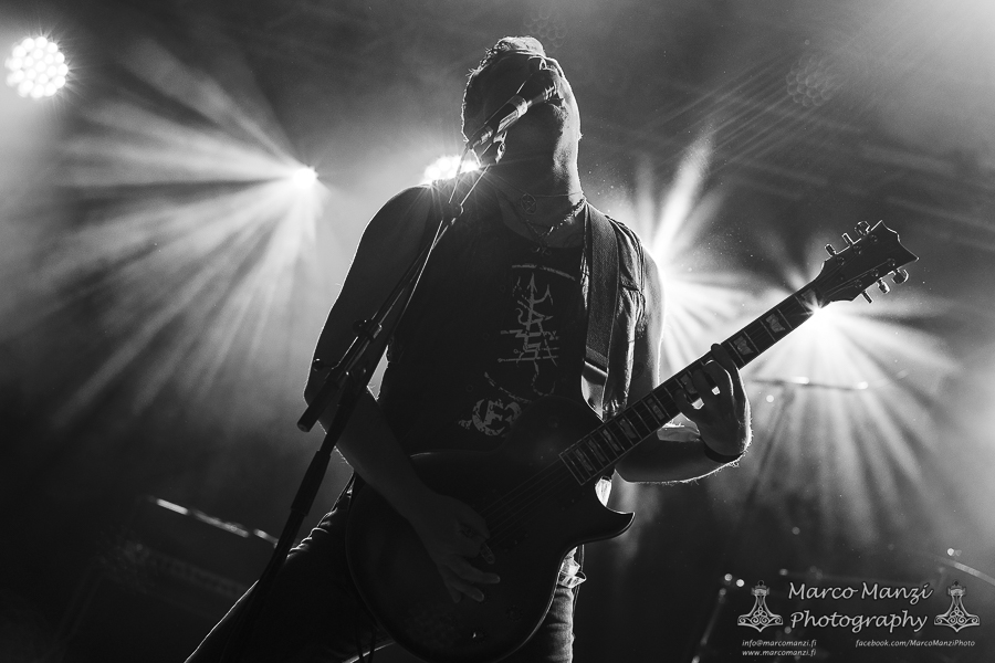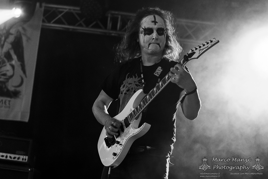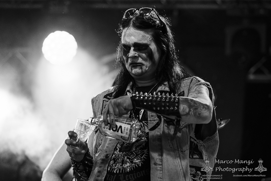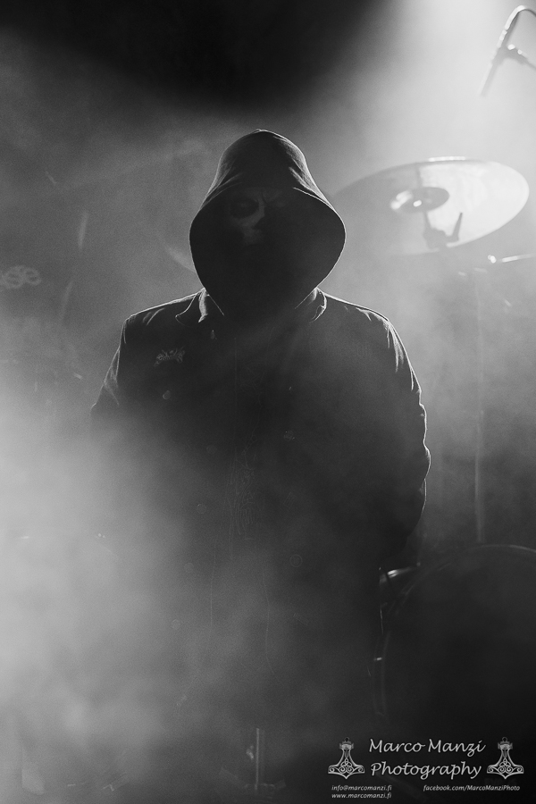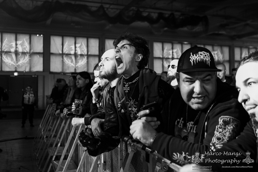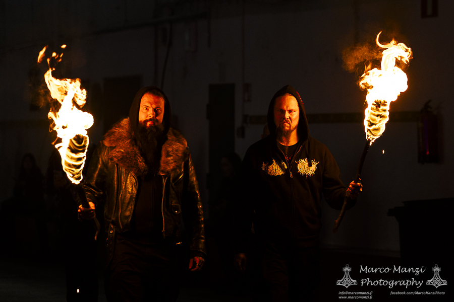 Back indoors, we found two guys carrying a torch each towards the stage, only to put the fire out inside a bucket full of water as soon as they walked past the barrier. Confusing. This was the prelude to the HELLWIND & VRITRAHN collaboration show, recreating live their work “The Grand Glorification of Satan to Honor Him with Praise and Worship by Execution of Devilish Work in Thy Flesh and Blood” (not the shortest of titles, I know… BAL-SAGOTH would be proud!). Joining the band on stage was also Natalie Koskinen (SHAPE OF DESPAIR, THE ABBEY, PAARA, …) on guitar and backing vocals, which was a pleasant surprise. Vritrahn (WHITE DEATH) took most of the spotlight, even though nothing particularly weird or harmful (for the audience) happened this time around. The show ended with the two artists, Hellwind and Vritrahn, cutting themselves and sharing their blood, in a symbolic closure of a cycle that began with their collaboration album, culminating in this live show. Too bad that from the audience’s point of view, this was pretty hard to see, given the stage was fully lit by an intense red backlight that made it difficult to notice what was going on.