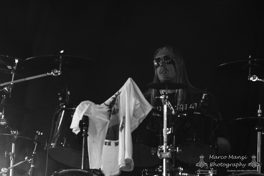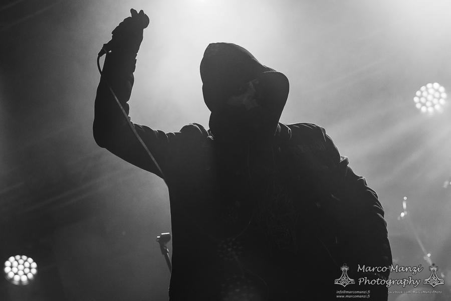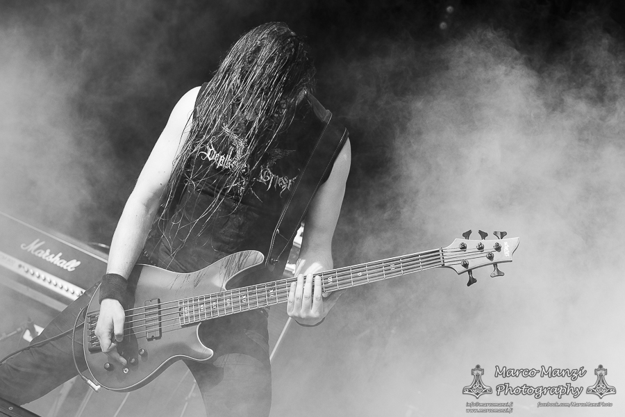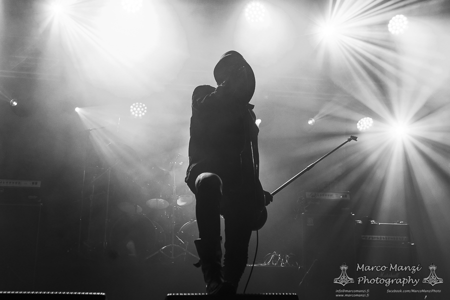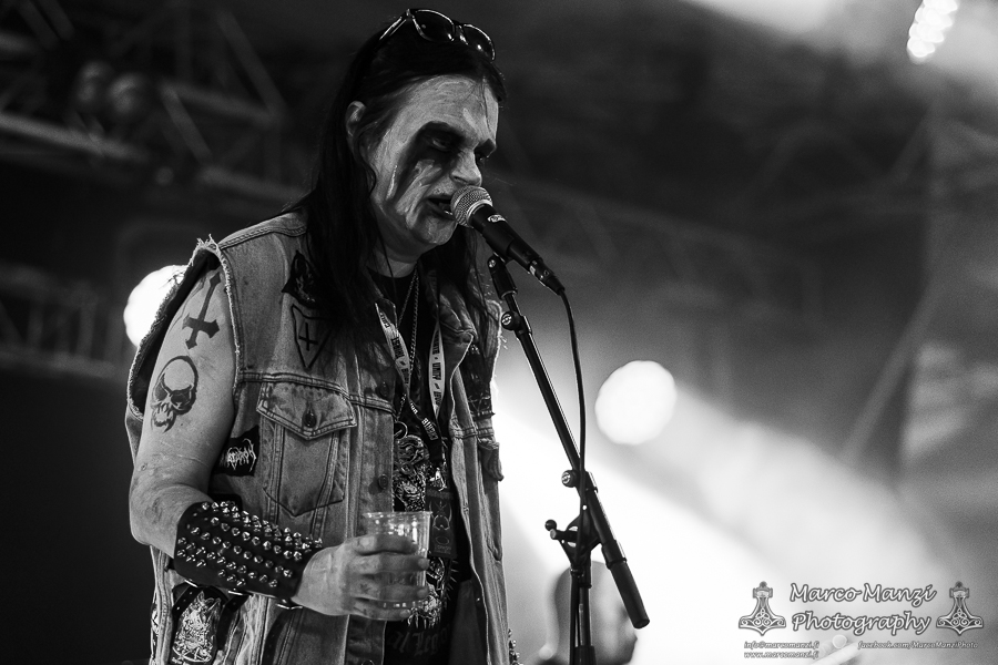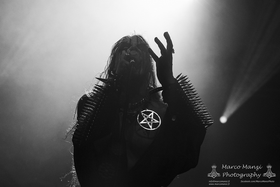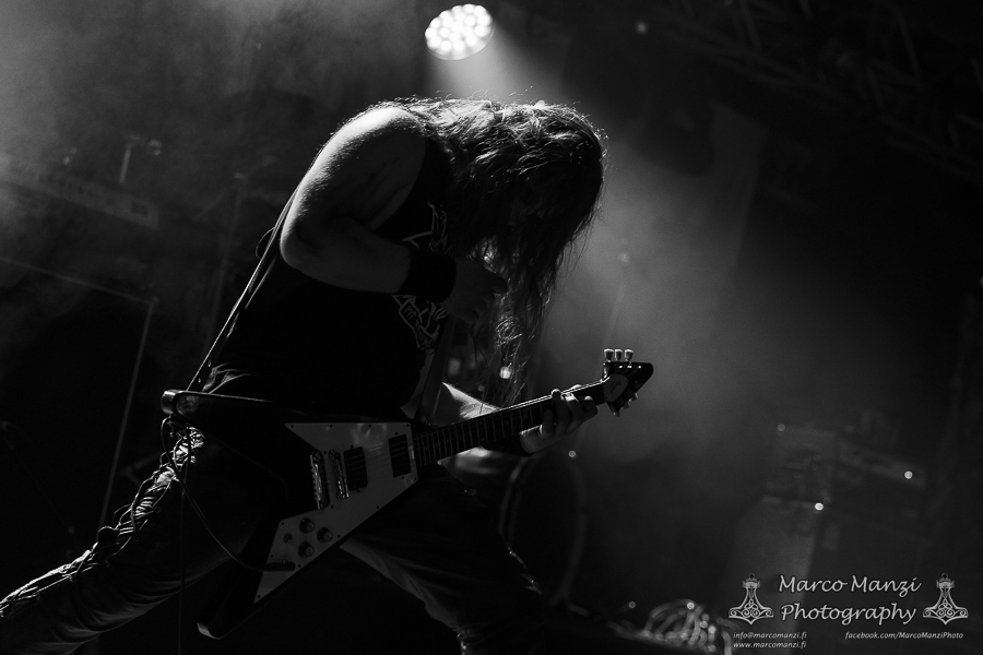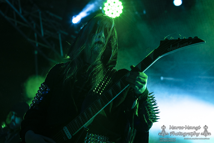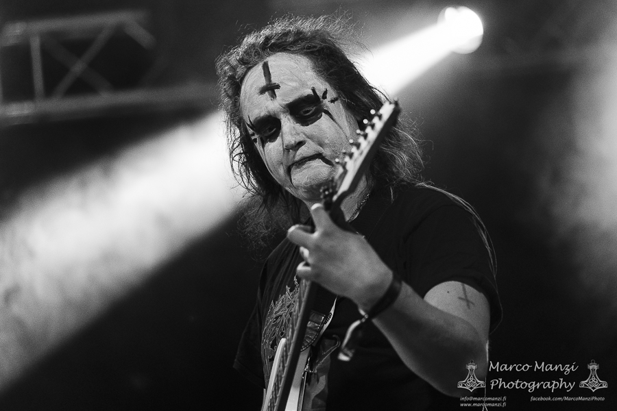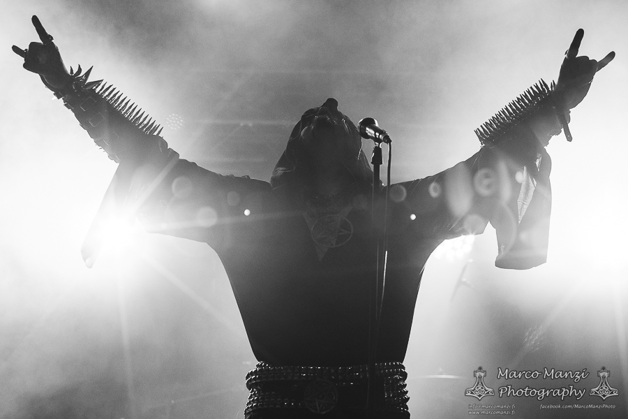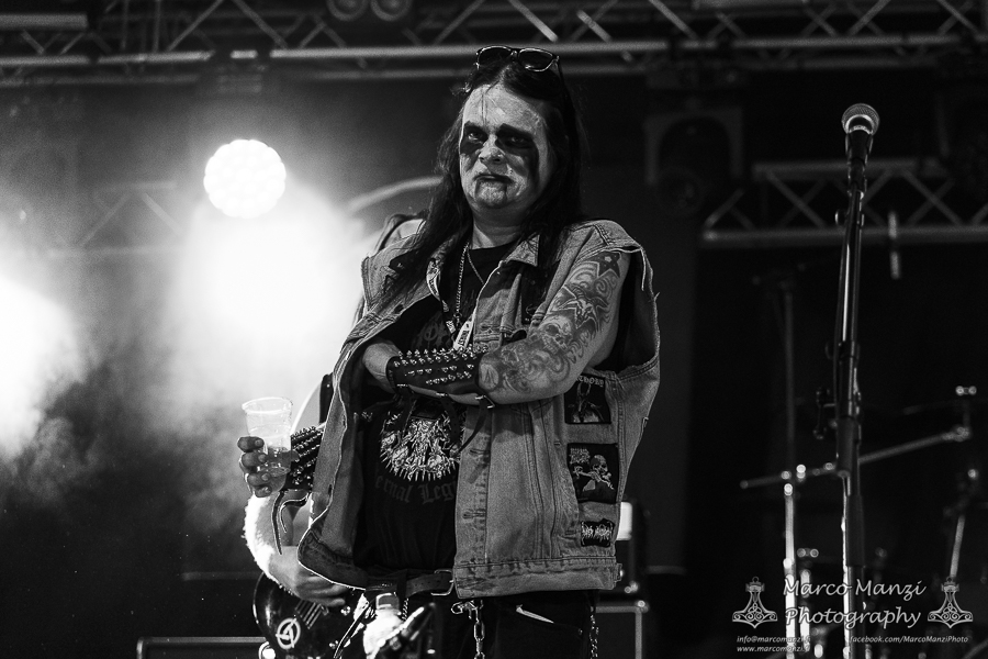 Back indoors, we found two guys carrying a torch each towards the stage, only to put the fire out inside a bucket full of water as soon as they walked past the barrier. Confusing. This was the prelude to the HELLWIND & VRITRAHN collaboration show, recreating live their work “The Grand Glorification of Satan to Honor Him with Praise and Worship by Execution of Devilish Work in Thy Flesh and Blood” (not the shortest of titles, I know… BAL-SAGOTH would be proud!). Joining the band on stage was also Natalie Koskinen (SHAPE OF DESPAIR, THE ABBEY, PAARA, …) on guitar and backing vocals, which was a pleasant surprise. Vritrahn (WHITE DEATH) took most of the spotlight, even though nothing particularly weird or harmful (for the audience) happened this time around. The show ended with the two artists, Hellwind and Vritrahn, cutting themselves and sharing their blood, in a symbolic closure of a cycle that began with their collaboration album, culminating in this live show. Too bad that from the audience’s point of view, this was pretty hard to see, given the stage was fully lit by an intense red backlight that made it difficult to notice what was going on.