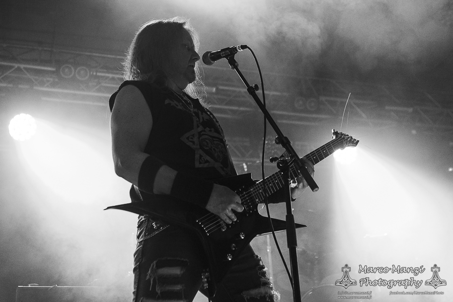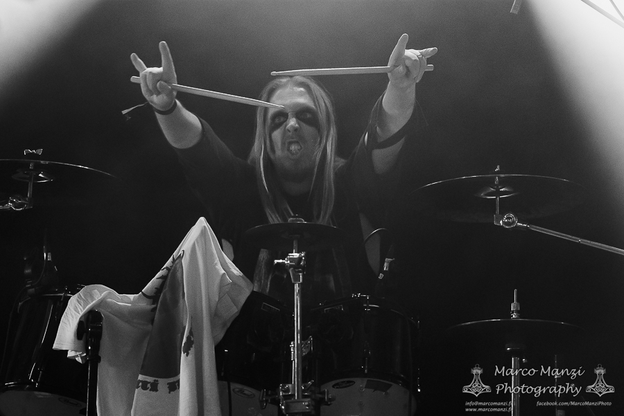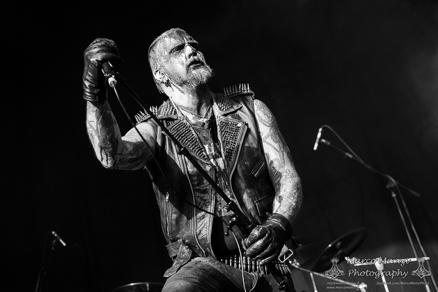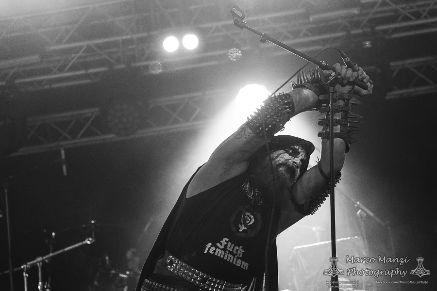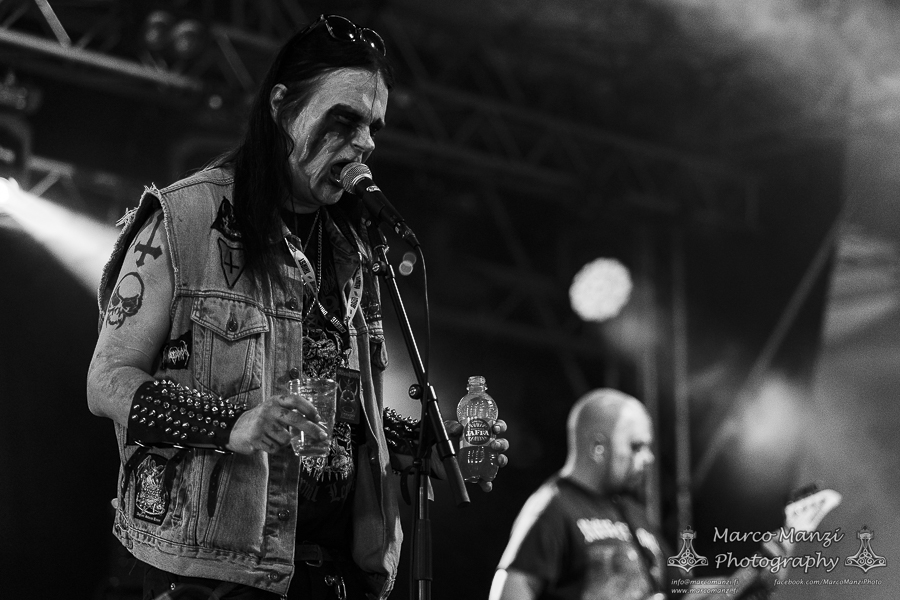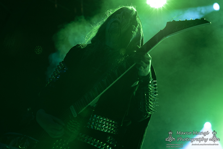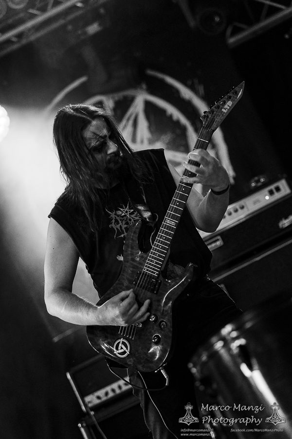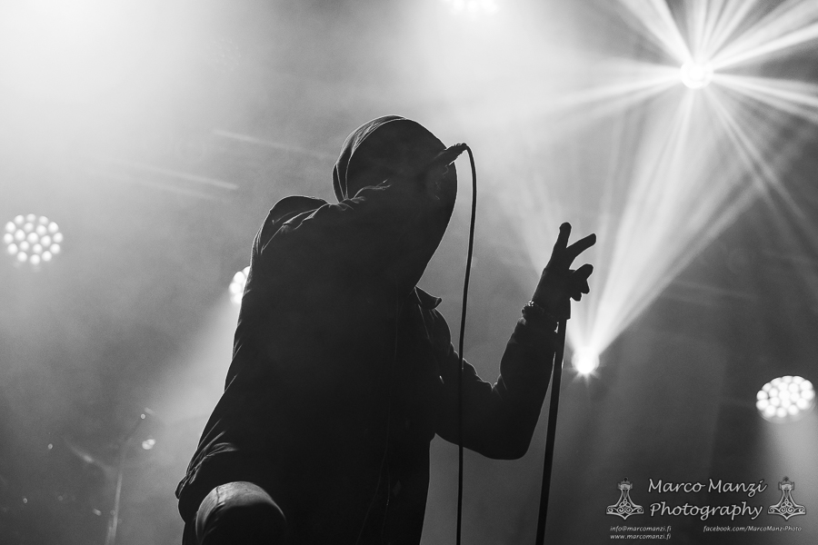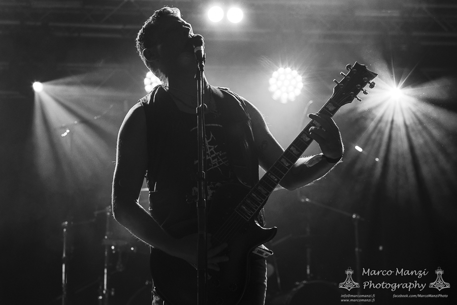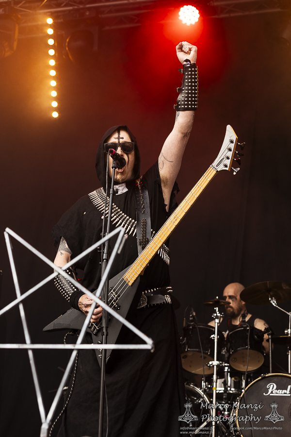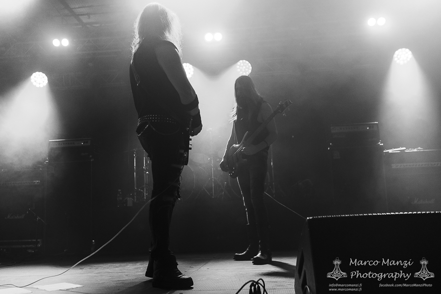Back indoors, we found two guys carrying a torch each towards the stage, only to put the fire out inside a bucket full of water as soon as they walked past the barrier. Confusing. This was the prelude to the HELLWIND & VRITRAHN collaboration show, recreating live their work “The Grand Glorification of Satan to Honor Him with Praise and Worship by Execution of Devilish Work in Thy Flesh and Blood” (not the shortest of titles, I know… BAL-SAGOTH would be proud!). Joining the band on stage was also Natalie Koskinen (SHAPE OF DESPAIR, THE ABBEY, PAARA, …) on guitar and backing vocals, which was a pleasant surprise. Vritrahn (WHITE DEATH) took most of the spotlight, even though nothing particularly weird or harmful (for the audience) happened this time around. The show ended with the two artists, Hellwind and Vritrahn, cutting themselves and sharing their blood, in a symbolic closure of a cycle that began with their collaboration album, culminating in this live show. Too bad that from the audience’s point of view, this was pretty hard to see, given the stage was fully lit by an intense red backlight that made it difficult to notice what was going on.
