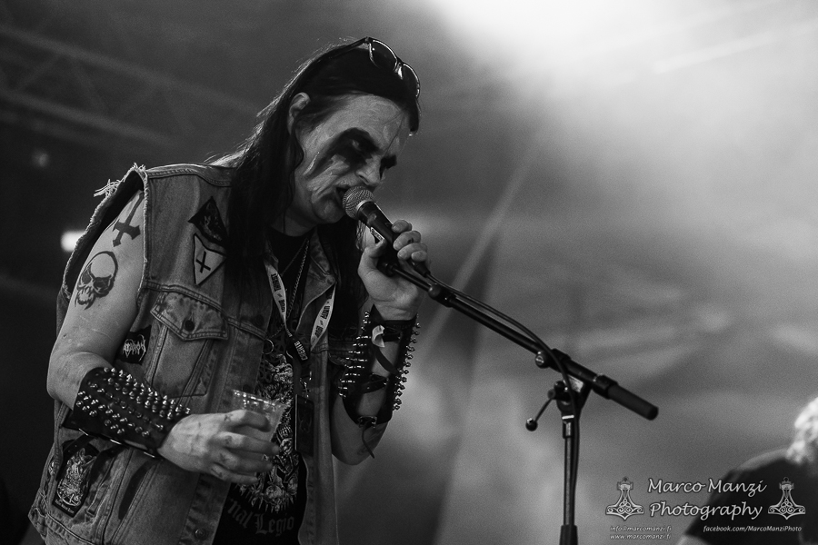 Opening the festival was supposed to be LANTERN‘s duty; instead, this fell on the all-too-familiar AZAZEL, who filled in the spot left by their Kuopio-based colleagues. While not too many people were in the area yet, the question we got asked most often about this gig was, “How drunk was Satanachia?” I guess he has been in worse shape, as he was still holding it together while mixing alcohol and Jaffa. The band also offered a preview of their upcoming “Ave Dominus Luciferi.” Definitely not the most horrible experience—maybe to the disappointment of the ever-present German fans in the audience—and it was quite a short set after all, being the first band of the day.