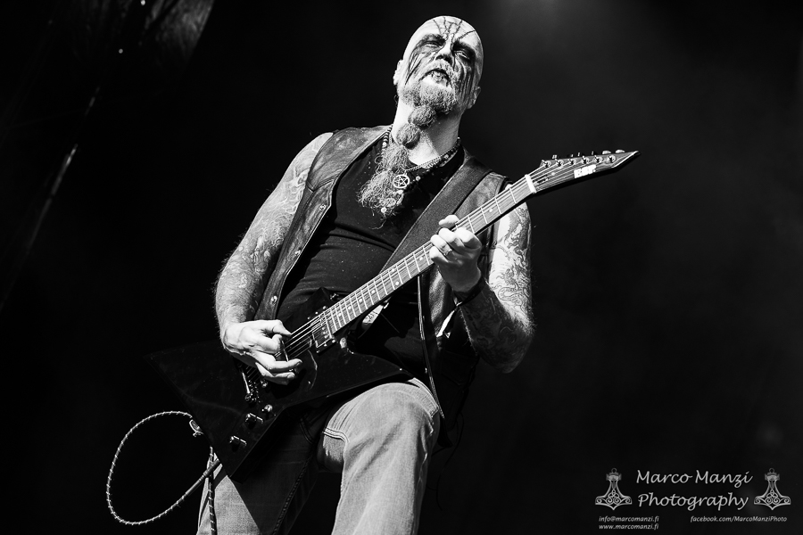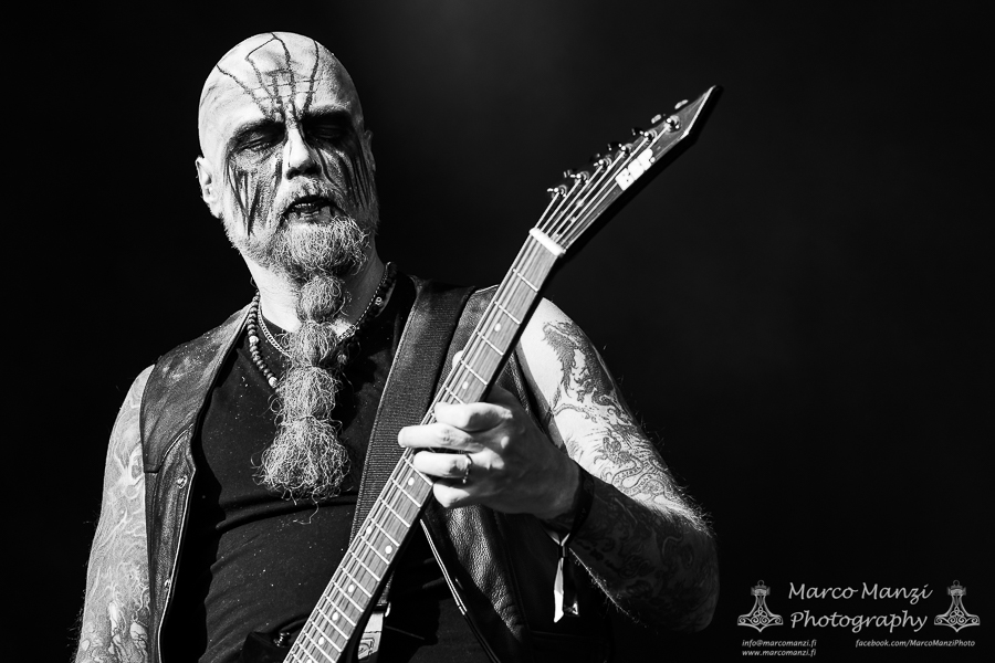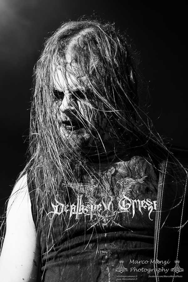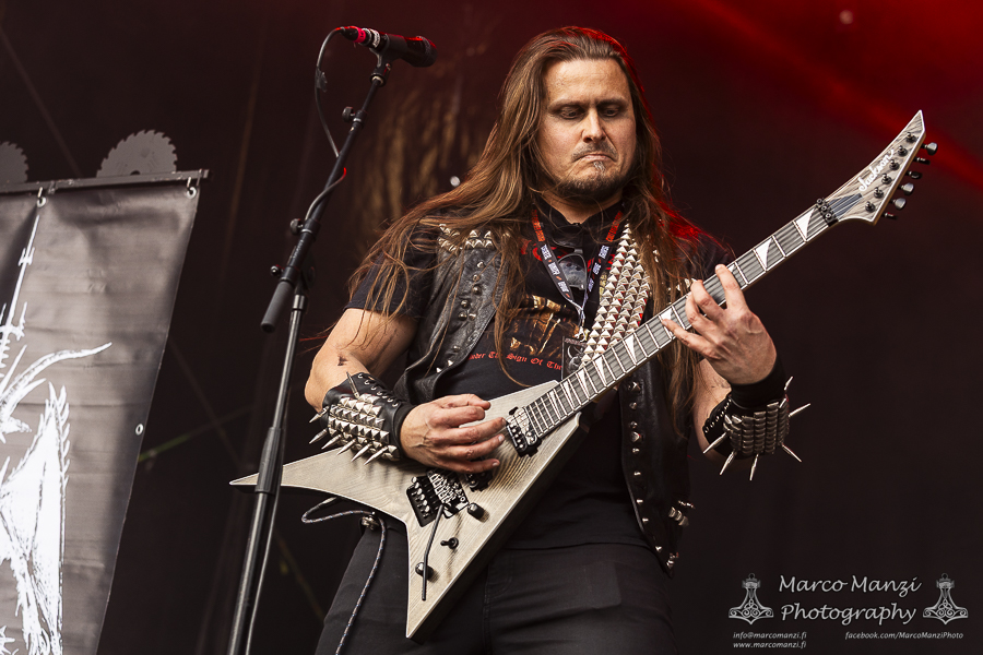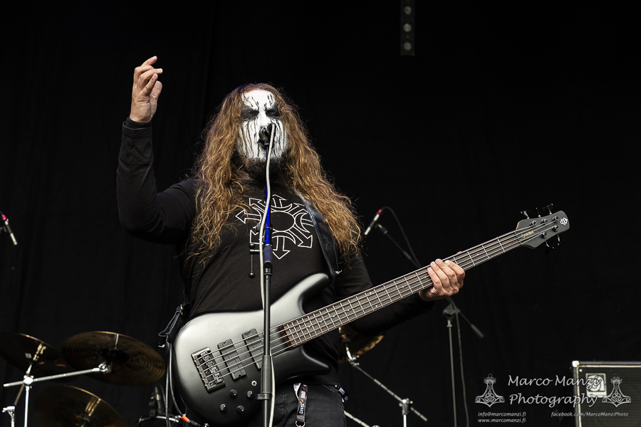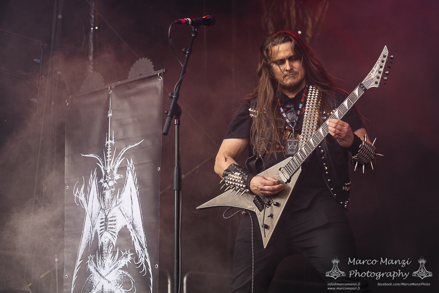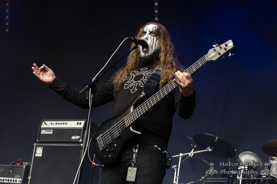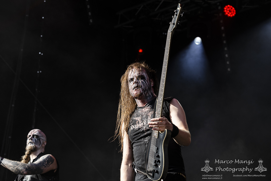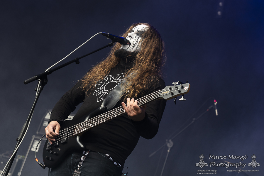 Returning into the sun, it was time for TROLLHEIM’S GROTT, who made a comeback already seven years ago—despite it feeling like much less time has passed. Led by the Rytkönen brothers, we expected nothing less than a powerful live set (and a lot of hair rotating in the air from bass player Pyry Hanski, of course), which delivered exactly what the audience wanted, before heading back to the indoor stage for THE TRUE WERWOLF. This longstanding project of SATANIC WARMASTER‘s frontman Lauri “Werwolf” Penttilä was a bit like the odd beast of the day so far, especially due to the exclusive nature of the set that saw the band perform anything but their own albums, all with their own twist. Must have been a fun gig to play for them—at least as much as the most hardcore fringes of their fans present at the front of the stage were excited by it.