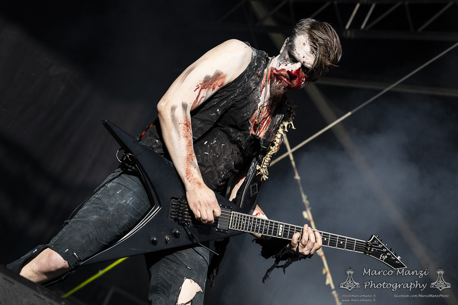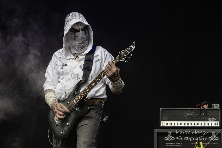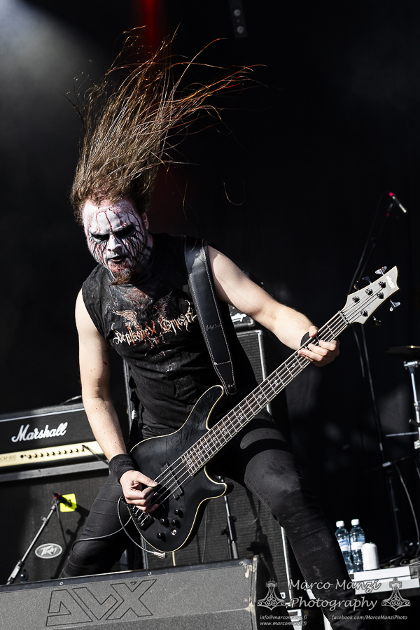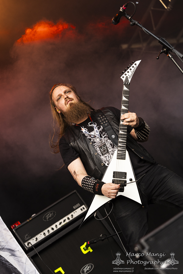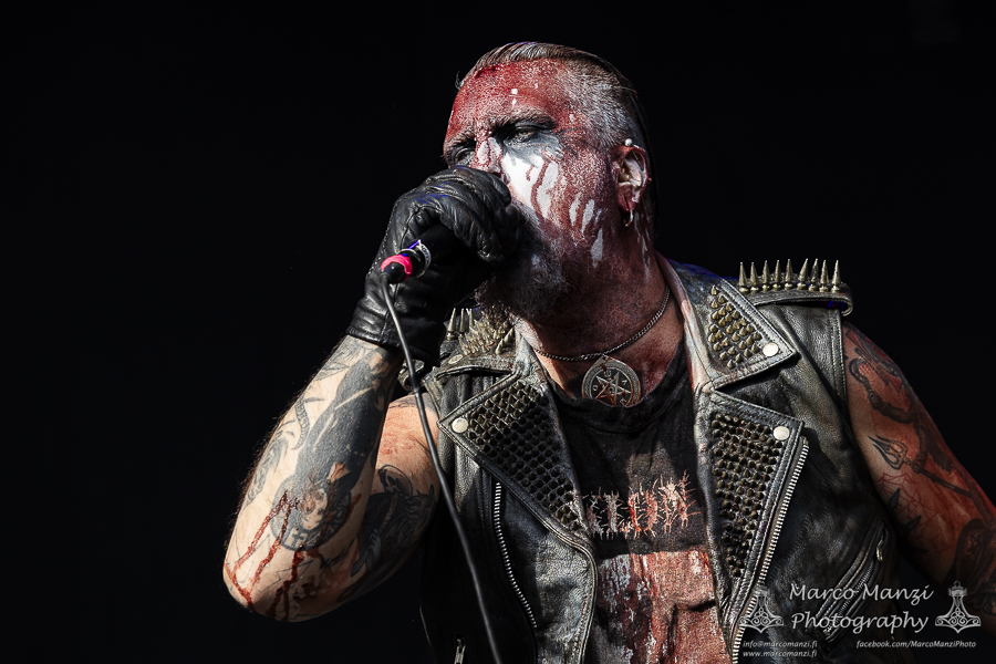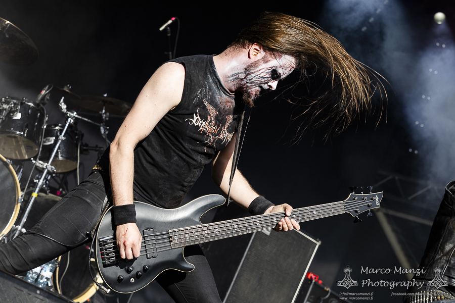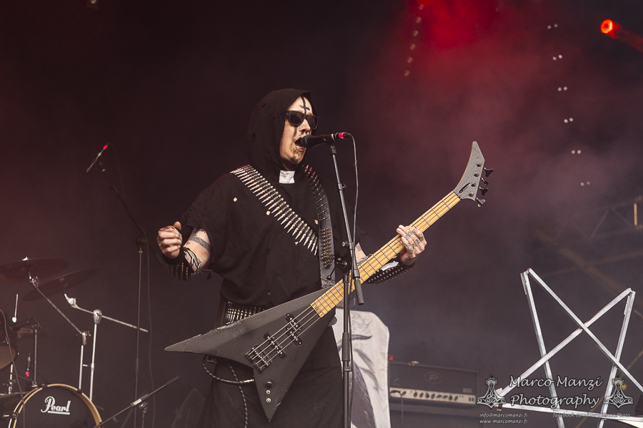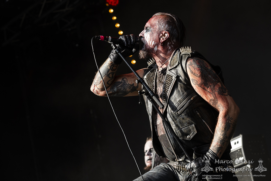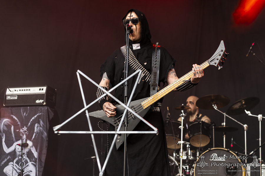 Returning into the sun, it was time for TROLLHEIM’S GROTT, who made a comeback already seven years ago—despite it feeling like much less time has passed. Led by the Rytkönen brothers, we expected nothing less than a powerful live set (and a lot of hair rotating in the air from bass player Pyry Hanski, of course), which delivered exactly what the audience wanted, before heading back to the indoor stage for THE TRUE WERWOLF. This longstanding project of SATANIC WARMASTER‘s frontman Lauri “Werwolf” Penttilä was a bit like the odd beast of the day so far, especially due to the exclusive nature of the set that saw the band perform anything but their own albums, all with their own twist. Must have been a fun gig to play for them—at least as much as the most hardcore fringes of their fans present at the front of the stage were excited by it.