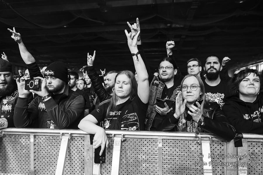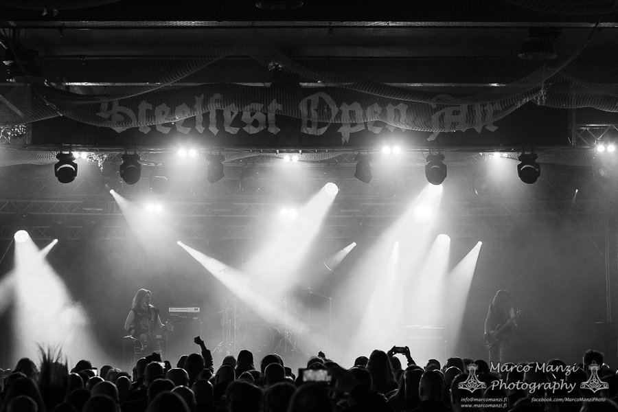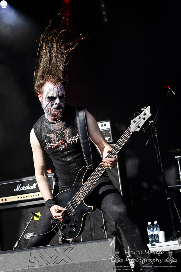 Not to be confused with the Russian, more folk-ish band of the same name, Polish combo ARKONA was up next. As the sun kept intermittently hiding behind the clouds, the band was the first to perform on the outdoor stage, with the two guitarists wearing white hoodies, as opposed to the vocalist’s black outfit. Promoting their latest “Stella Pandora,” they did a nice job of warming up the audience further with their crushing black metal.