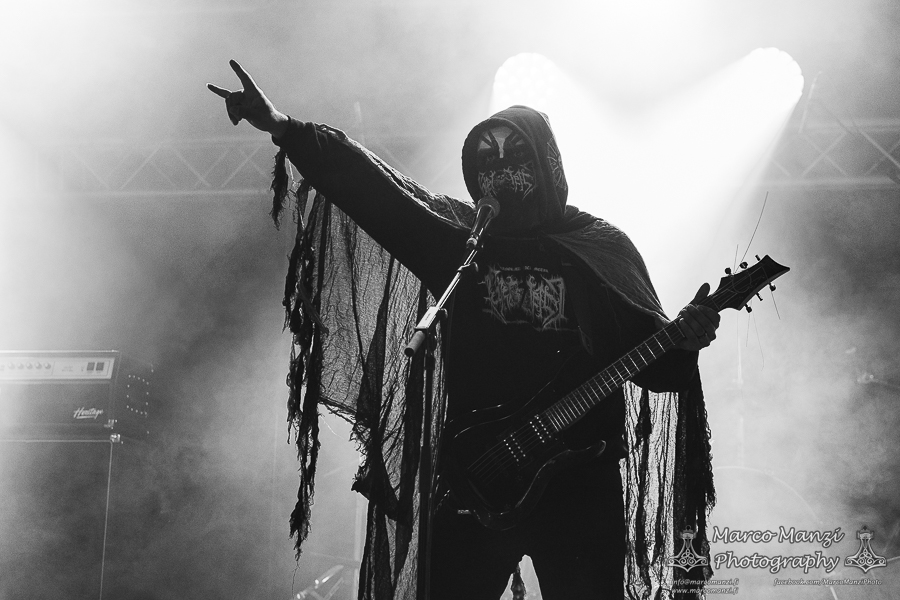 Again inside, it was time for some Norwegian black metal in the form of Trondheim-based WHOREDOM RIFE. This band has grown quite a following with its two most recent releases and they certainly are able to get their fans engaged in their live shows, as was clear tonight as well. After all, the members have their hands deep in their black metal circle and we can see how their music can have an appeal on a large part of the audience at this event. In fact, there were plenty of excited fans inside the hall.