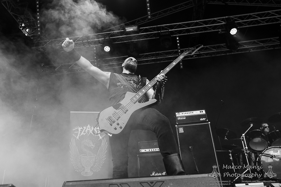 Next on the outdoor stage was FLAME. The guys from Kuopio never disappoint, and they delivered an energetic and fast-paced set, really waking up the increasing crowd gathered in front of the stage. It’s sometimes good to see that some things never change and that this band is steady in their level of performance, which helped set the pace for CURSE UPON A PRAYER.