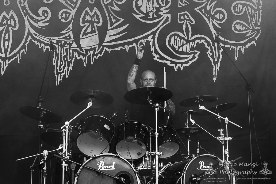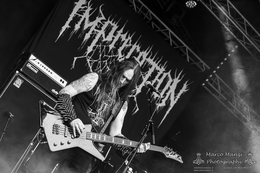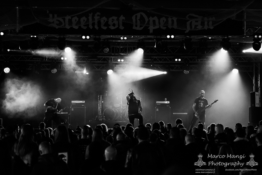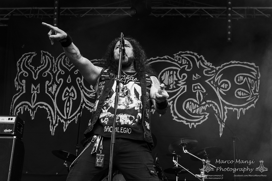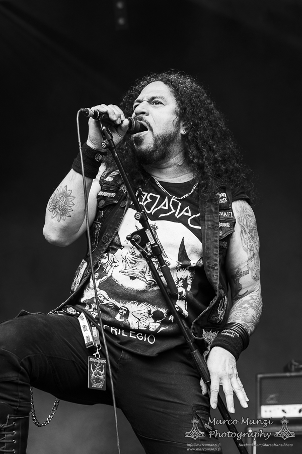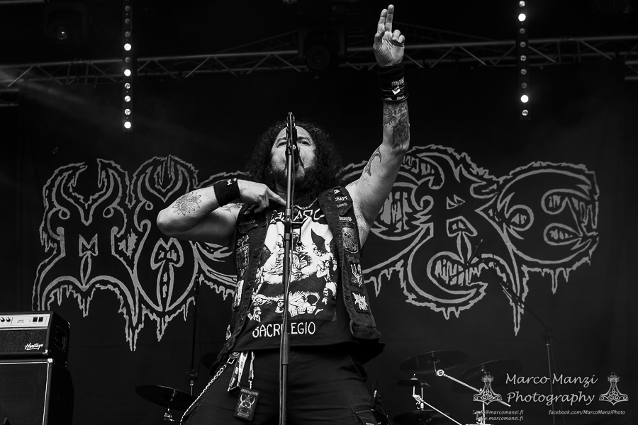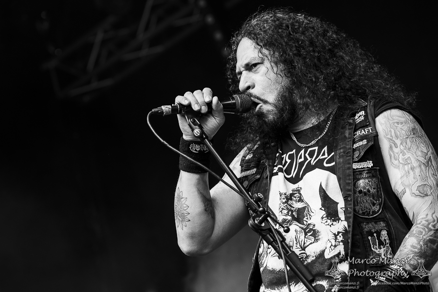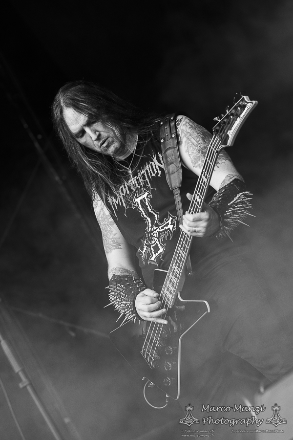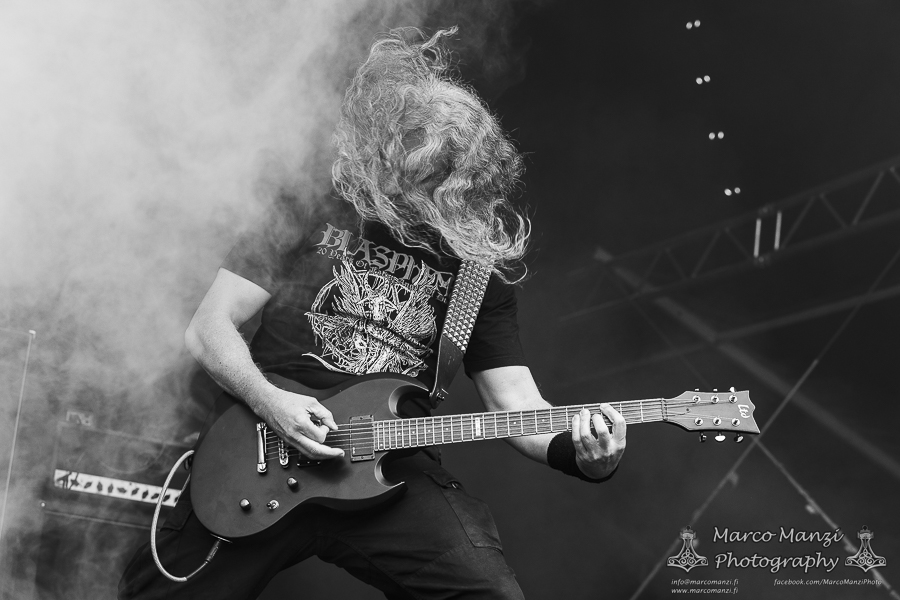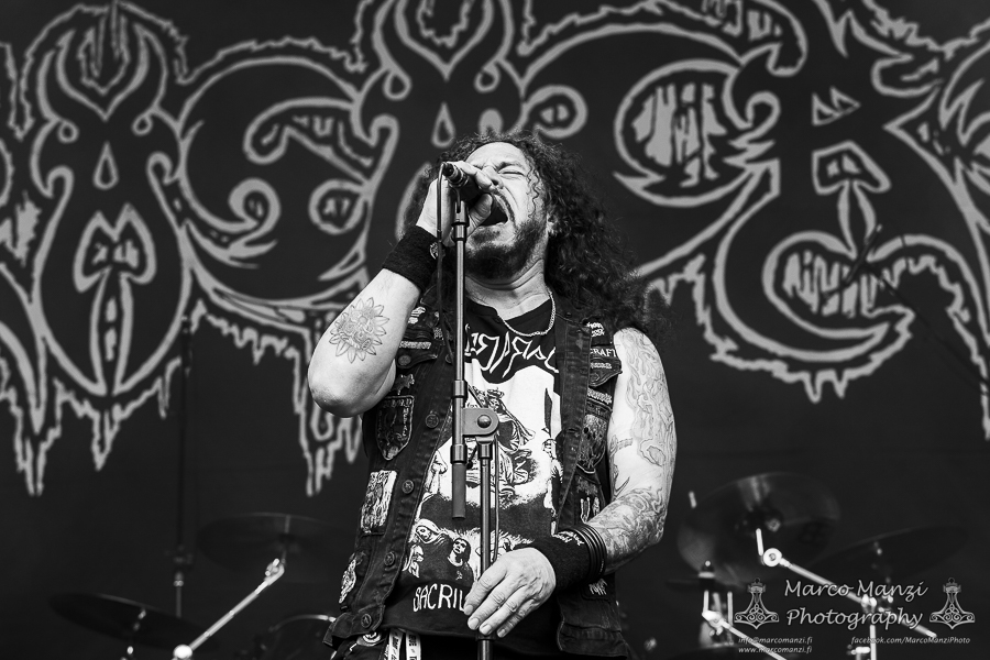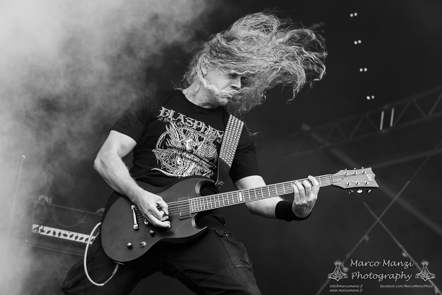 Indoors, DEMONCY was malignant from the get-go. The trio – which includes SARGEIST‘s guitarist VJS – made the most of their allotted time with a show that exuded evil and sounded very much on point with a tight set. Also, Ixithra‘s hairstyle brought the mind back to the 80s, when the band was at its infancy. Their no-nonsense approach worked really well and was also a good prelude to the more flamboyant satanic style of their fellow Americans, ACHERON. The band led by Vincent Crowley is also a bit of a different beast, as they are clearly more oriented towards traditional US death metal, but still they have, and had tonight, a more showy approach to their live performance, which the audience seemed to dig quite a bit. As the band was not able to make it to Turku a few years back, it was great to finally see them on this big stage unleashing their satanic message (the frontman used to be part of the Church of Satan, after all). They played for the occasion a special set focused on “Rites of the Black Mass” (1992) and “Anti-God, Anti-Christ” (1996) for the excitement of their fans, in what was a more than dignified wrap for the shows on the outdoor stage.