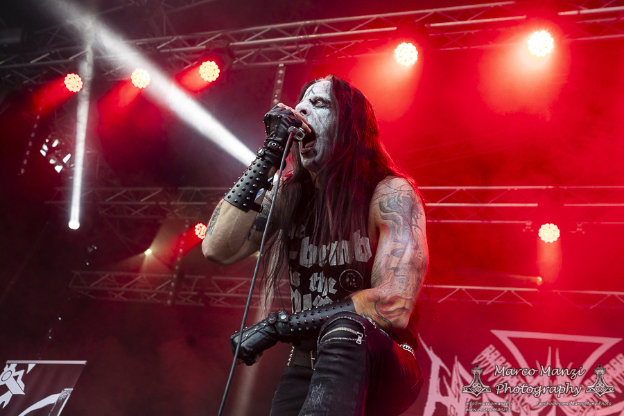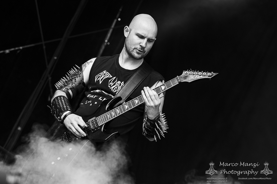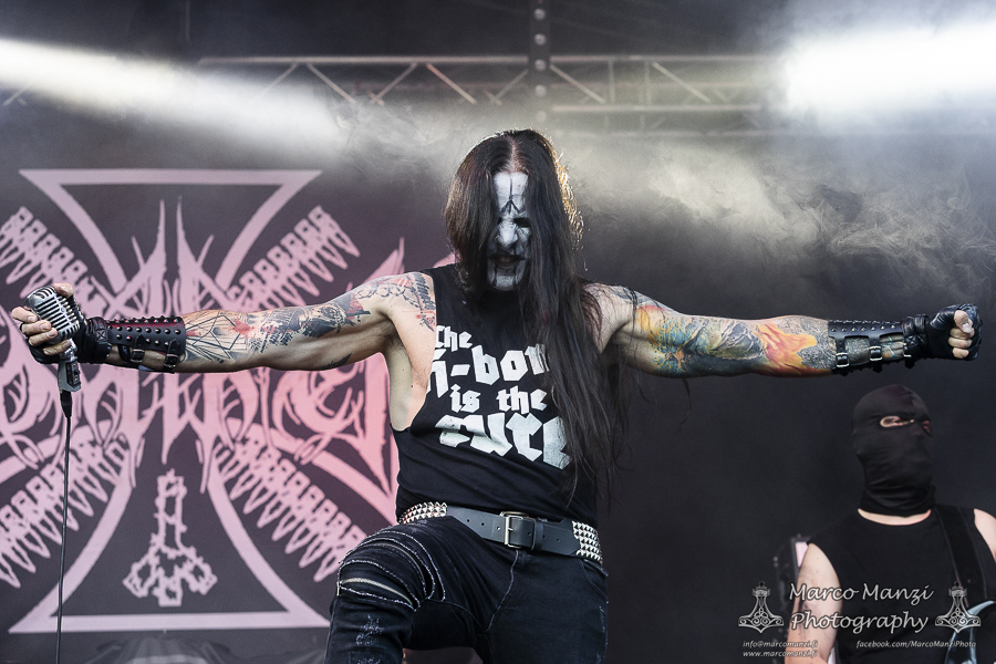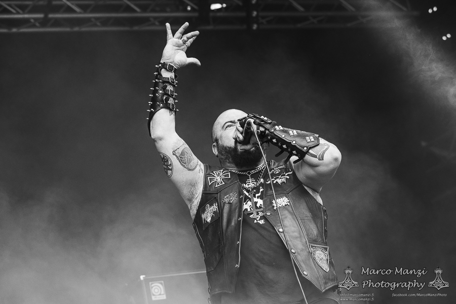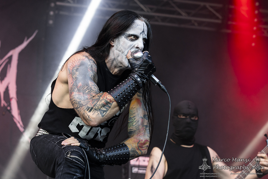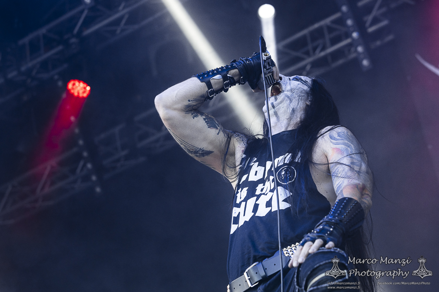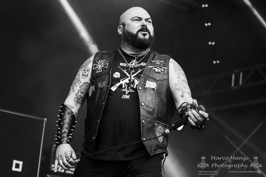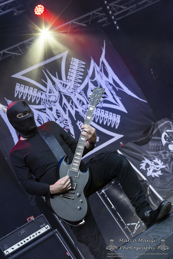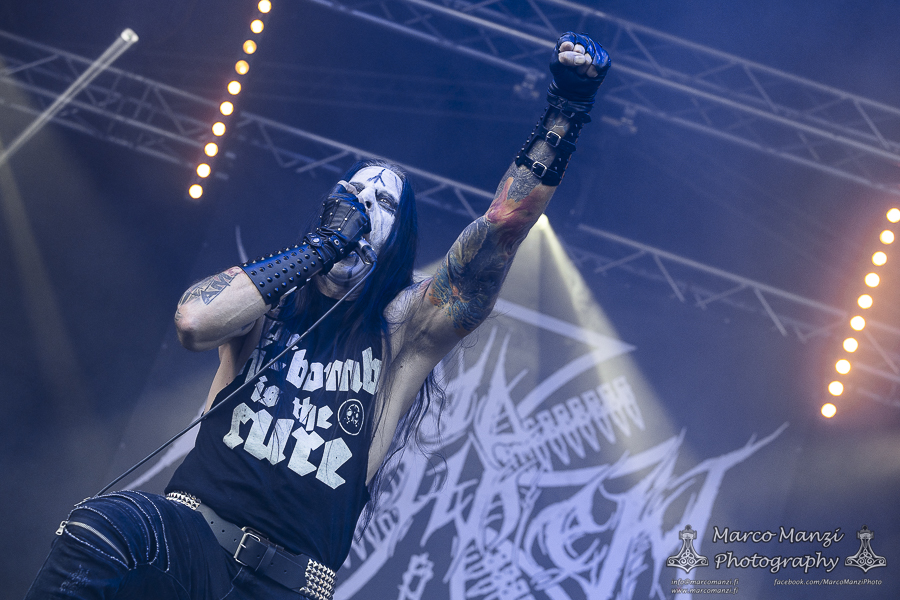 It’s not often that you get to hear Italian when the band is going on stage, but AD HOMINEM made that possible. It was also one of the more overtly controversial bands this year, not doing anything to hide it, unlike the live members of the band, who all wore balaclavas. There was no drummer for some reason, so they played with a drum machine. The spotlight was anyway all for the French mainman Kaiser Wodhanaz, who had no problem in getting in the audience’s favor, even when he walked on stage a very little-dressed overweight woman on all fours with a muzzle on her face, leading her on a leash and occasionally stepping on her back (the woman was apparently Finnish, so we were wondering how did they phrase this to the organizers when the band requested this). Not yet sure to this day what that added to the show, but at least it caused countless people to get filming with their phones.