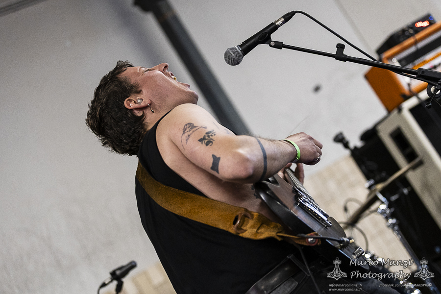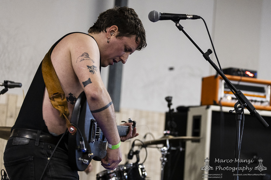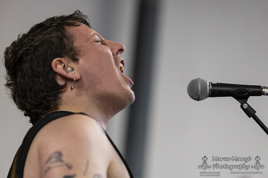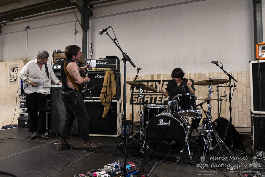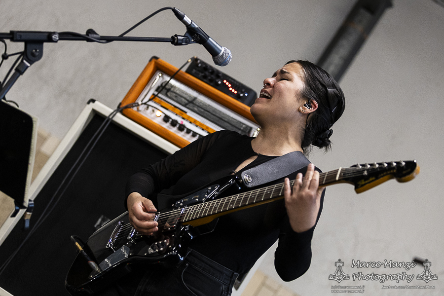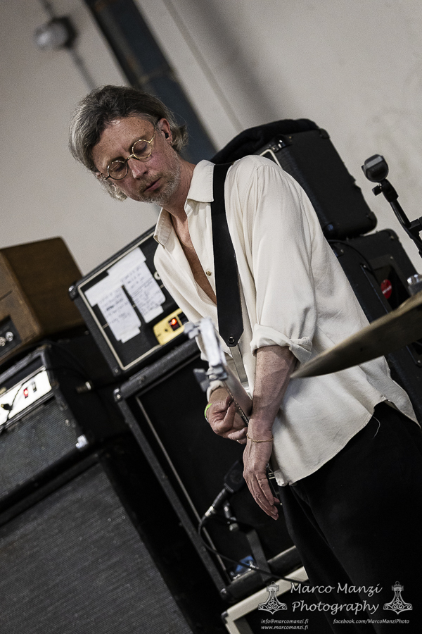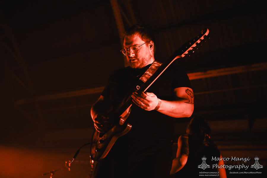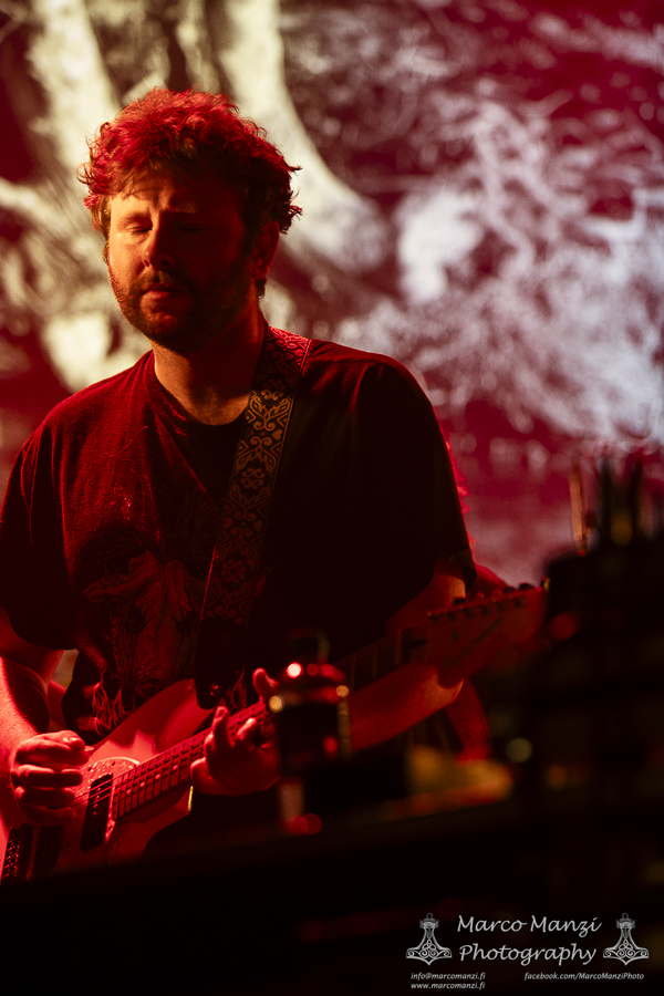 This is not to diminish the show as they never failed so far to meet the expectations, but admittedly it seems the big stage is not very well-suited for a band like THOU, which thrives from the raw energy and strict contact with its audience, although it was nice to see some guests appearances during the show, like the multi-talented Lane Shi (OTAY:ONII) and Michael Berdan (UNIFORM) – later apparently Silver Godling also joined the fray. However, having seen the band on the Next Stage on Wednesday and being almost certain to see them again later (even though in retrospect that didn’t work out, see the Sunday review), we went for SMOTE in the next room of 013. With their latest effort “A Grand Stream” out last year, the band showcased the new material engulfed in a deep red light, and the addition on stage of John Perry (GNOD, HOLY SCUM), Adam Sykes (PIGSx7), Lisa Ekelund (FLOWERS MUST DIE), and Ian Lynch (LANKUM, ONE LEG ONE EYE). They almost made us wish we had skipped directly from GNOD & WHITE HILLS to this, to give some continuity to that psychedelic sound, now turned more towards folk and drone, and so much more. It was really hard not to get caught up in the rhythm, not that we gave too much resistance, and we enjoyed most of the show from the balcony after we finished taking photos. We knew this would have been most likely a good show, but it actually exceeded our expectations, so much that we ditched everything else and stayed here until the end of the gig. Which, as far as we are concerned, could have lasted still another couple of hours, and we would have been very happy to keep going.