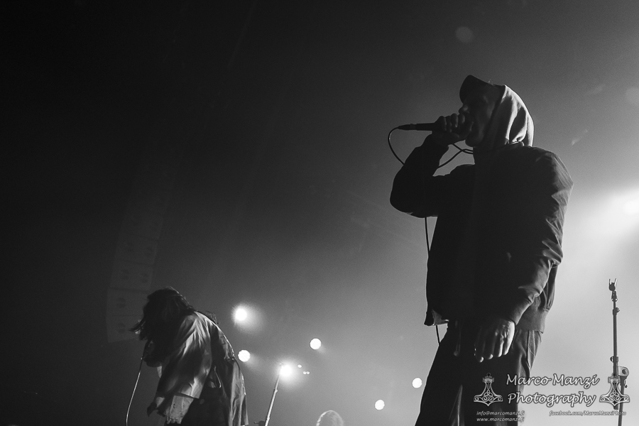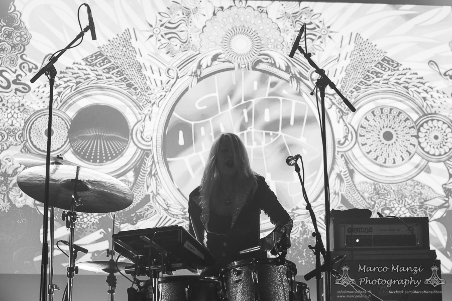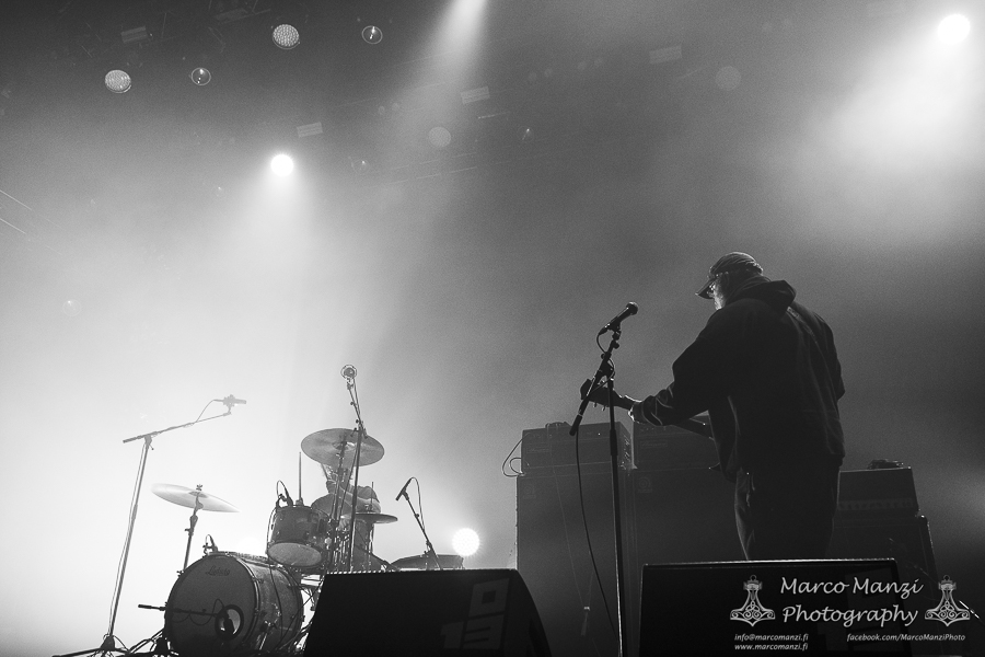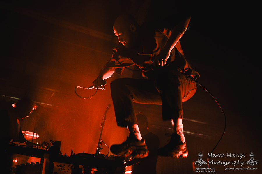 On the way back from the Skatepark we dropped by The Engine Room to catch a glimpse of HUMAN IMPACT, being curious about this band featuring Chris Spencer of UNSANE, among others. Their live attitude provided the energetic impact that their noise rock combined with industrial sound and other, less harsh influences really needed to get the show going, and it would have been nice to be able to see more of that, if not that we had to hurry towards 013 again for CAVE IN. Just two years after their last appearance at the festival, they came back to playing “Jupiter” in full for the record’s 25th anniversary, something that clearly was long overdue for the fans of the band. However, as there was still quite a lot going on it felt like the audience was not as engaged as they should have been, or at least not nearly as excited as the last time the band visited Roadburn. After a few minutes we went to try to catch NEW AGE DOOM, performing with TUVABAND (Tuva Hellum Marschhäuser), that didn’t work out too well because the band had some technical issues that delayed their show just enough that we could barely catch one song, before heading to one of the shows we had most expectations on: GNOD and WHITE HILLS with their “Drop Out” collaboration having being re-issued just a month ago.