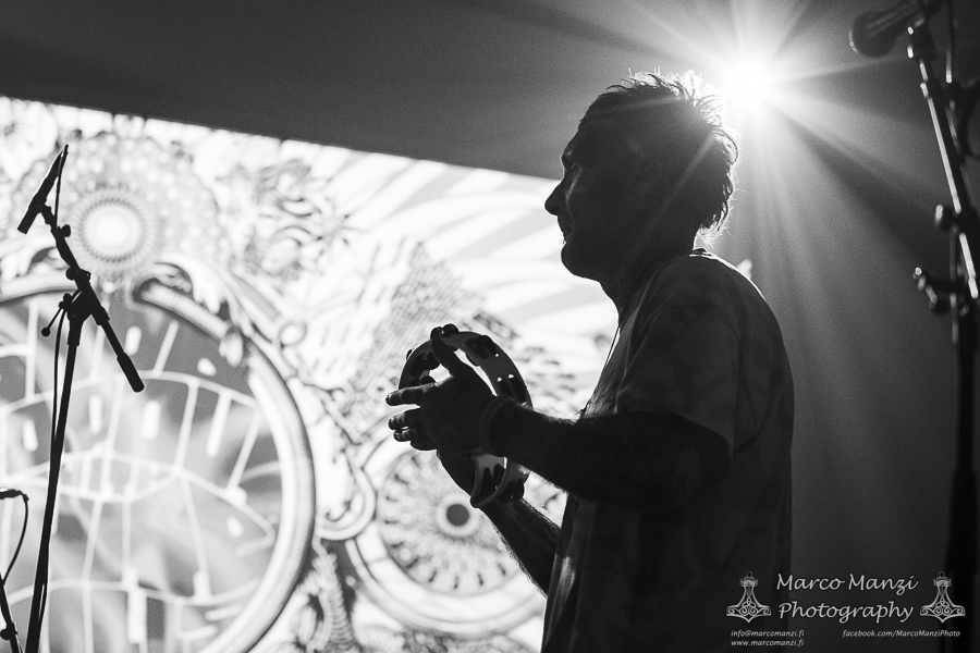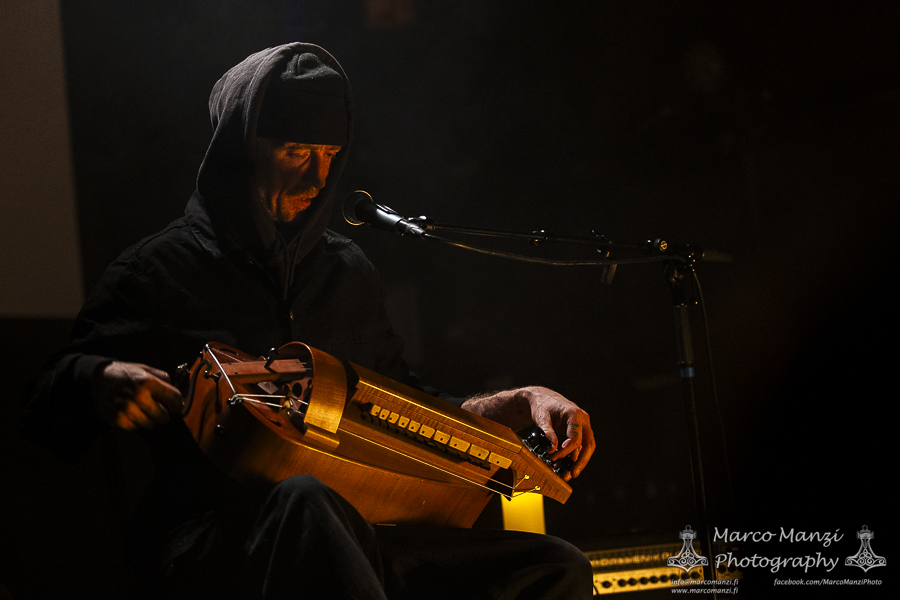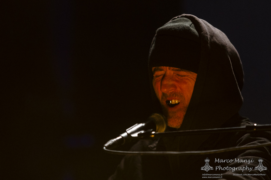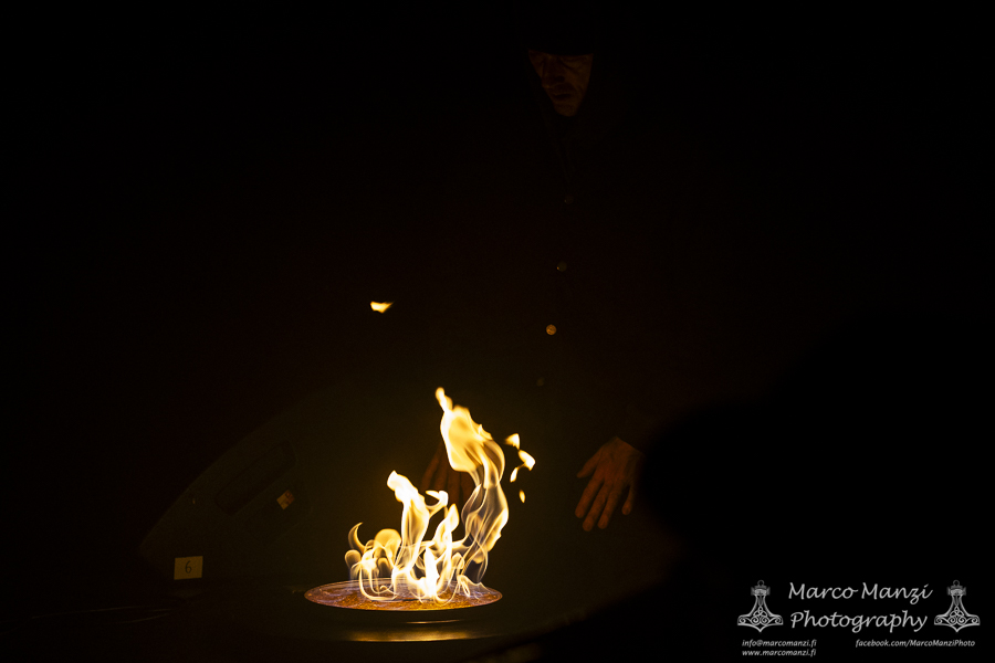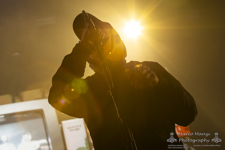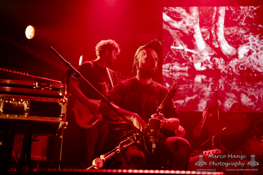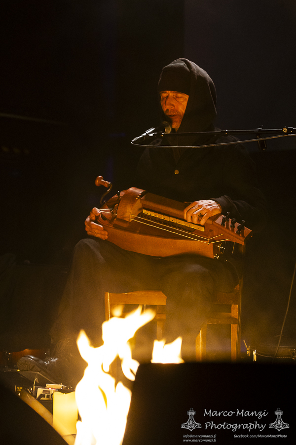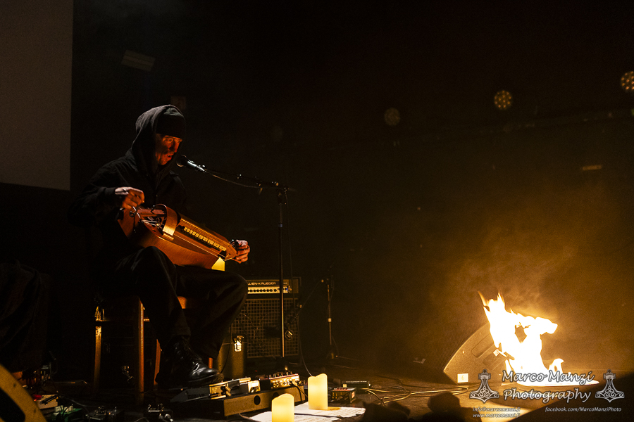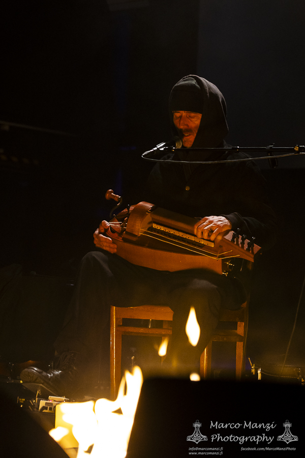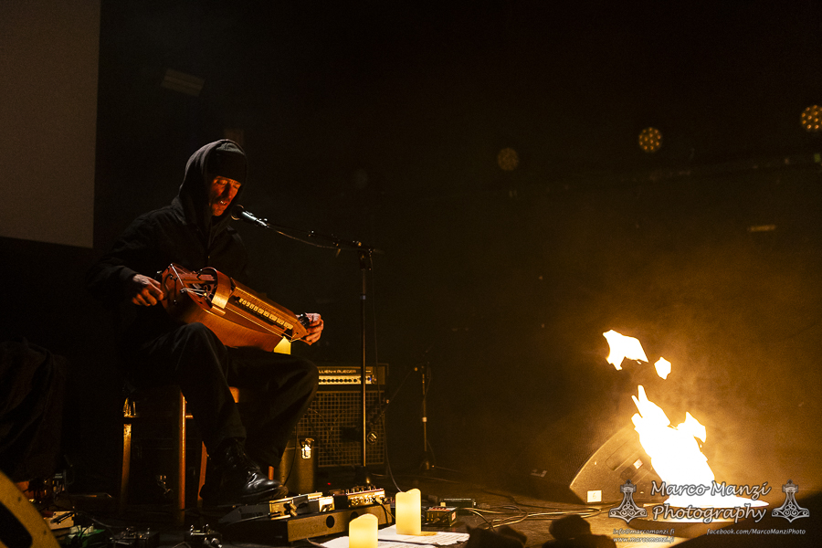 Still in a good mood from the gig that just ended, we went back to find the vocalist of AMENRA now alone on the same stage where he was playing until half an hour earlier, now lighting some fires on the stage floor in his other vest as CHVE. Aside from the hurdy-gurdy and the mantle partially covering the artist, engulfed mostly in darkness with some dim spotlights and flames, it was like listening to some kind of bard performing by a campfire in the desert. This quiet and introspective set broke a bit the flow, and it was nice to be in a not (yet) too crowded space for once, so we decided to take a breather and skip both THE HIRS COLLECTIVE and the second ENVY set.