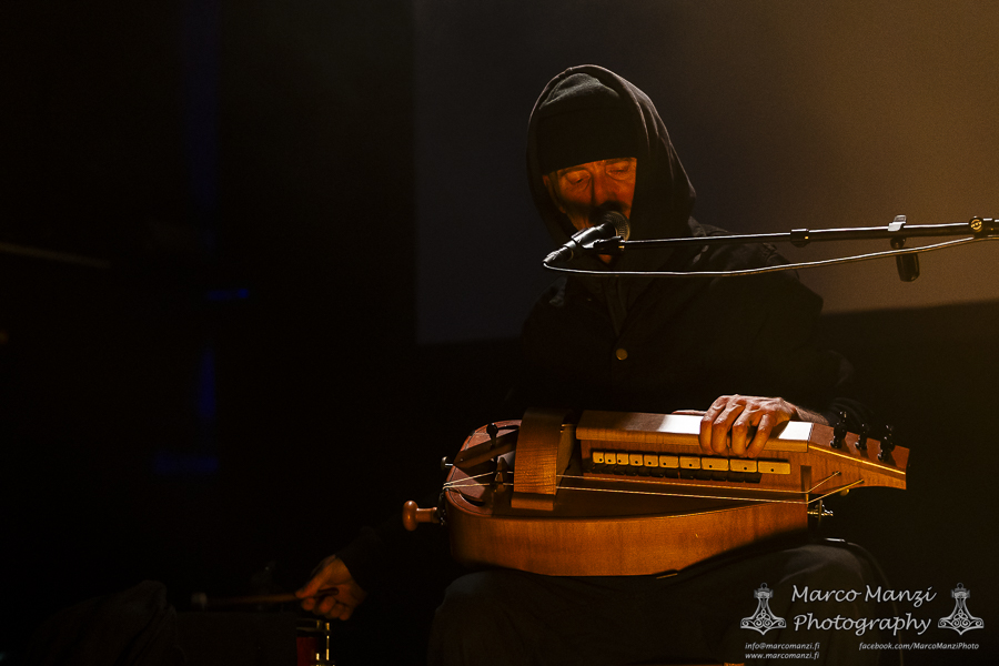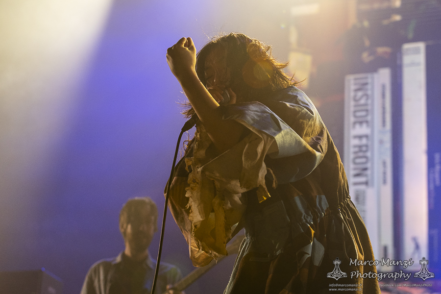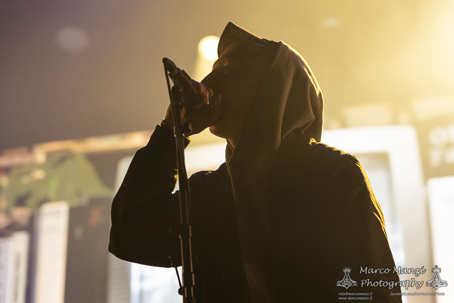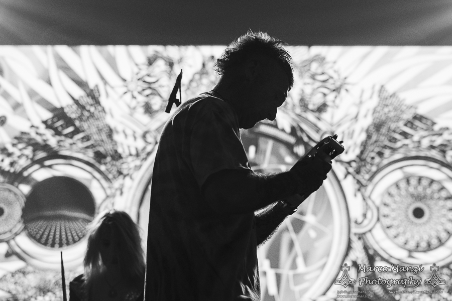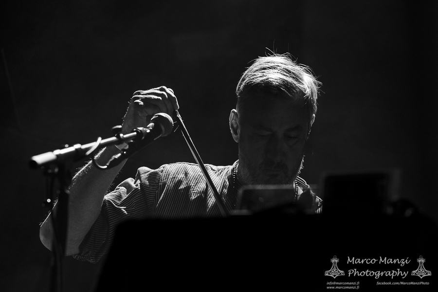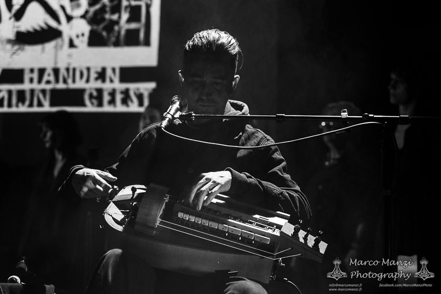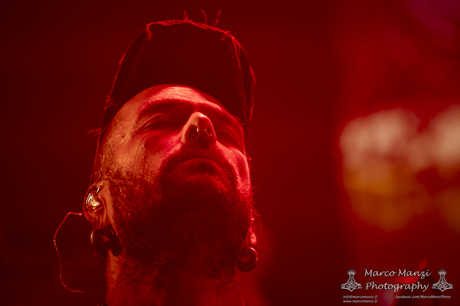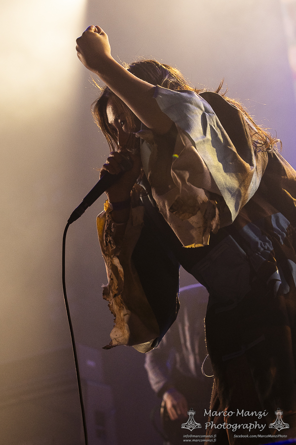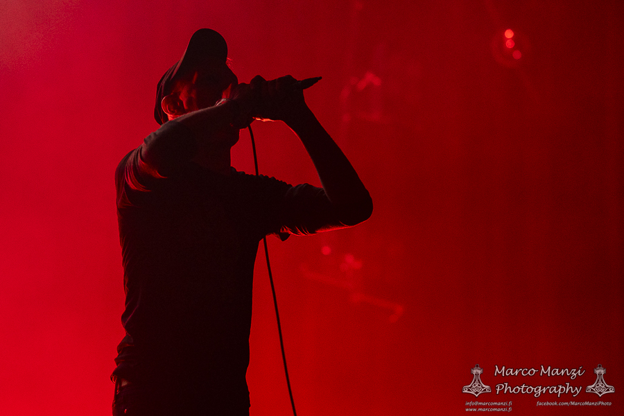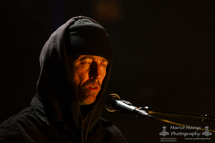 Still in a good mood from the gig that just ended, we went back to find the vocalist of AMENRA now alone on the same stage where he was playing until half an hour earlier, now lighting some fires on the stage floor in his other vest as CHVE. Aside from the hurdy-gurdy and the mantle partially covering the artist, engulfed mostly in darkness with some dim spotlights and flames, it was like listening to some kind of bard performing by a campfire in the desert. This quiet and introspective set broke a bit the flow, and it was nice to be in a not (yet) too crowded space for once, so we decided to take a breather and skip both THE HIRS COLLECTIVE and the second ENVY set.