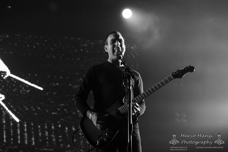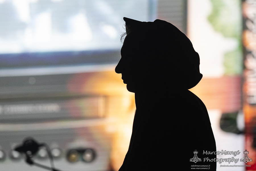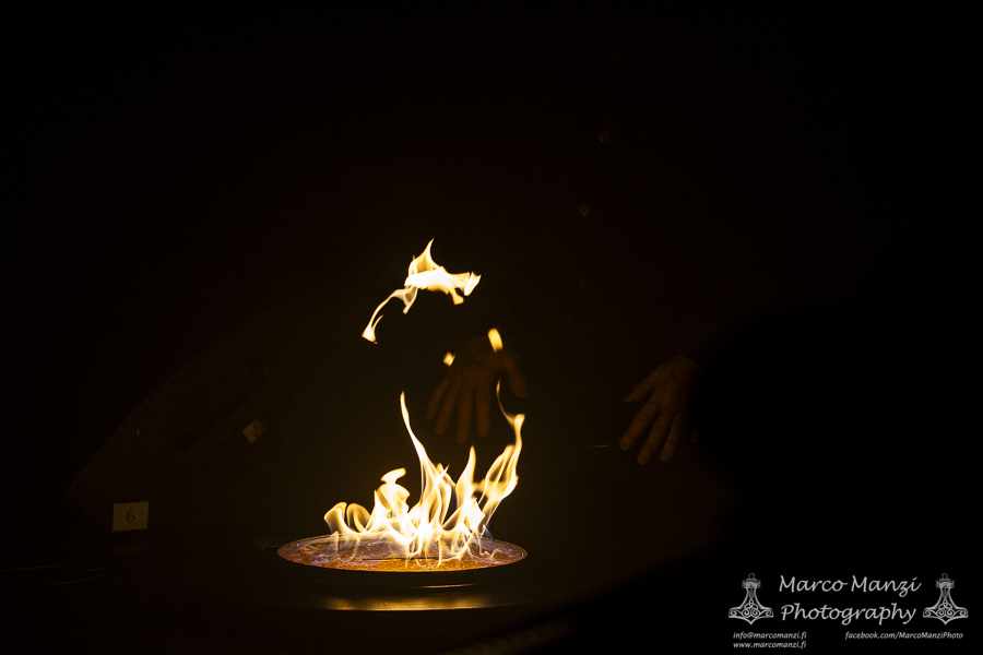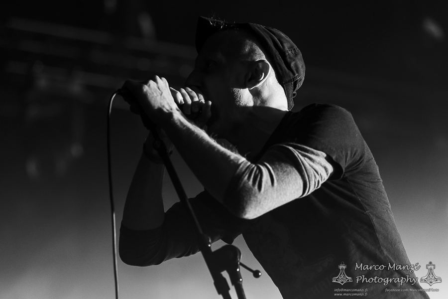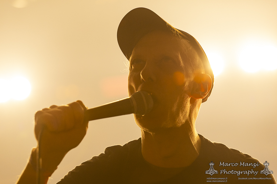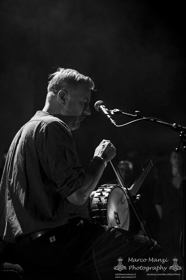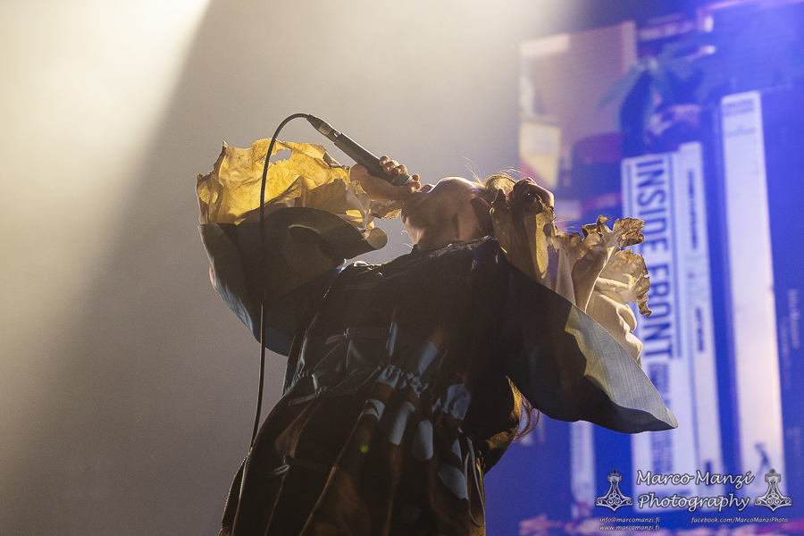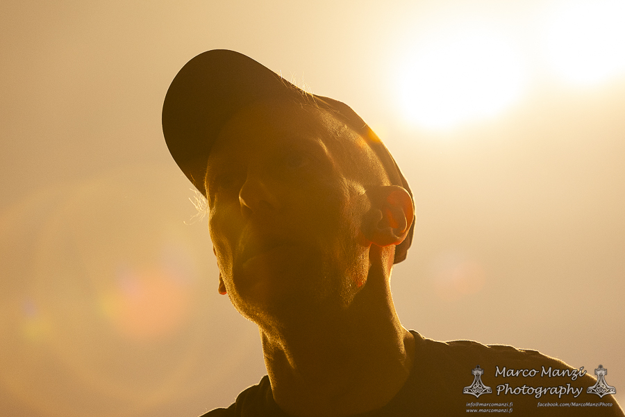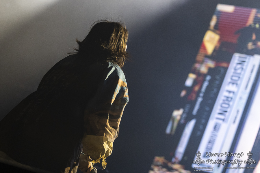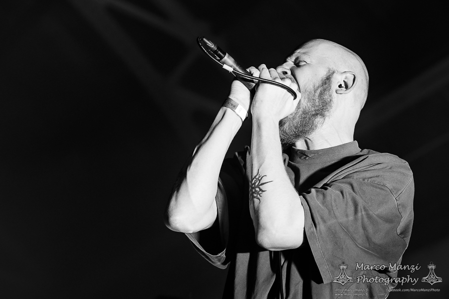 Still in a good mood from the gig that just ended, we went back to find the vocalist of AMENRA now alone on the same stage where he was playing until half an hour earlier, now lighting some fires on the stage floor in his other vest as CHVE. Aside from the hurdy-gurdy and the mantle partially covering the artist, engulfed mostly in darkness with some dim spotlights and flames, it was like listening to some kind of bard performing by a campfire in the desert. This quiet and introspective set broke a bit the flow, and it was nice to be in a not (yet) too crowded space for once, so we decided to take a breather and skip both THE HIRS COLLECTIVE and the second ENVY set.