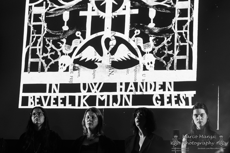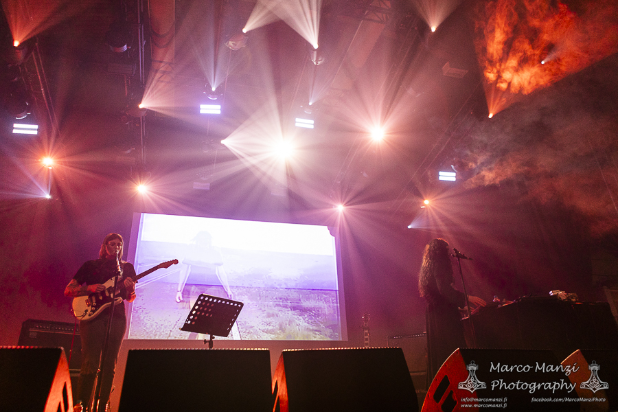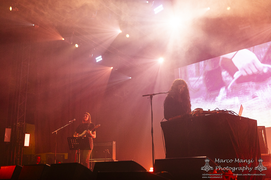 Things quieted down significantly with artist in residence MIDWIFE and VYVA MELINKOLYA performing their collaboration, “Orbweaving,” at The Terminal next door. For those who missed the earlier gig, this must have felt like the perfect hangover music, a great way to gently ease into the second day of the festival with the dreamy soundscapes created by the two artists. The suffused smoke quietly shaping the atmosphere with the lights and the images running on the screen behind them really added an extra layer to the show. Without any rush, if not some slight disappointment at the long ice cream shop queue preventing us from having one on the way to 013, we arrived at the Next Stage for DE MANNEN BROEDERS a.k.a. Broeder Dieleman and Colin H. van Eeckhout (AMENRA). The two performed their debut “Sober Maal” in a folkish/religious and very sombre atmosphere, with an additional choir and the same theremin and piano player that accompanied Broeder Dieleman in his previous appearance in this very same room. There wasn’t much time to witness their work in full, given that MESSA was about to start playing on the main stage, but we would have at least seen more of one of them, in the form of CHVE, soon after (we missed instead the Broeder Dieleman solo performance at V39).