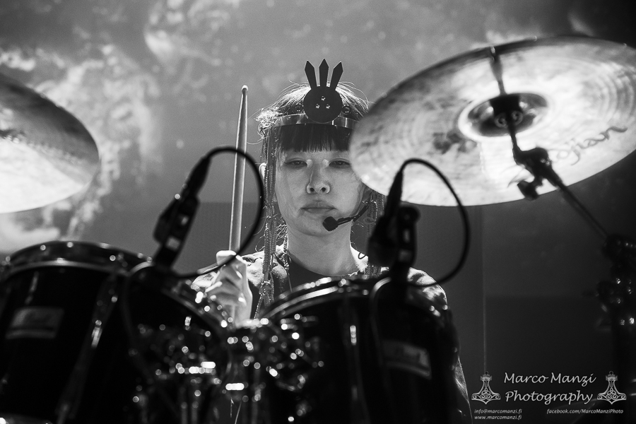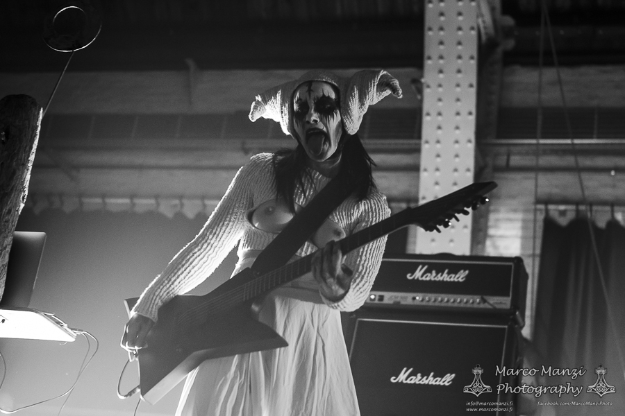 It’s hard to place the band in terms of visuals; maybe they are meant to be shocking to some, to provoke, or simply make people talk about them. But mostly it’s part of the “feminist black metal” concept that the band has used as a label for themselves. Artistic expression notwithstanding, the band seems to reflect a time where it’s accepted that the socio-political message is taking the spotlight above the music – see the pro-palestine speech at every show of the band – and while by no means we argue the validity of certain messages, especially in these tumultuous times, perhaps a music festival would showcase bands more for their artistic talent than for what they are talking about. Eventually the show continues through other costume changes and more theatrics, with their obvious witchcraft theme (at some point the drummer Johanna took to the front to focus solely on the vocals, before returning behind the drums), and on some account from the crowd, towards the end they ended up fully naked, wearing only some long black hair wigs.