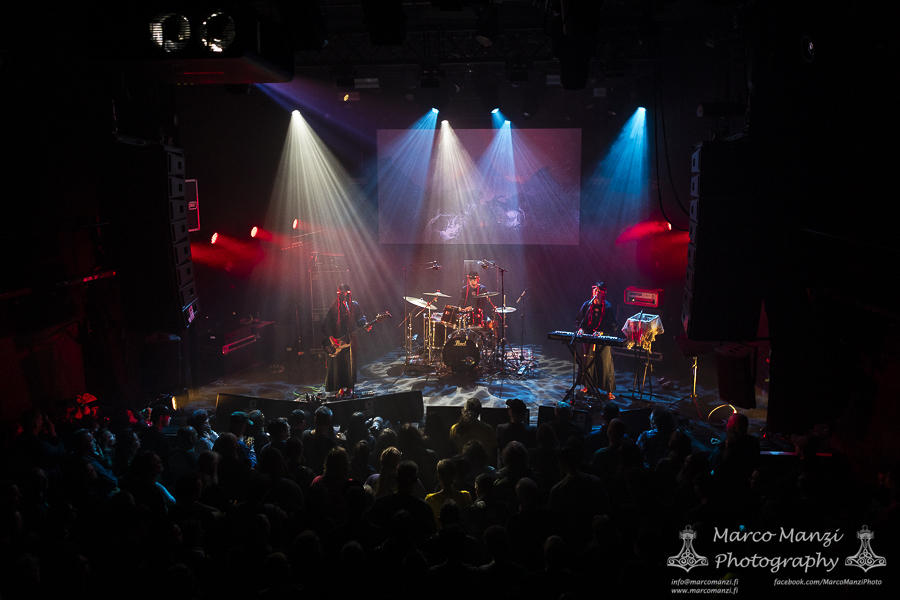 We still managed to find ourselves a spot back into the crowded Hall of Fame – this year, honestly, it felt like we had barely even been there at all – to see GREY AURA play their latest effort “Zwart Vierkant: Slotstuk.” A bit disappointed to have just moments earlier learned that PHARAOH OVERLORD was going to have a secret show at the nearby skate park, but one can’t have it all, and we had never seen the Dutch band live. Somehow, the expectations must have been a tad too high, as the gig itself did not feel as exciting as we thought, or at least not fully justifying the amount of sweat and crowd squeeze. Or it might just be the case of a band sounding better on record than live, or a combination of these. In any case, their experimental post-black metal felt a bit misaligned with the direction things had been taking today, musically speaking. Heading back to Poppodium, we found an opening to see a little bit of TRISTWCH Y FENYWOD. With a good amount of luck, as during the weekend it felt like being able to get into the Next Stage room, for nearly any show, was akin to some kind of miracle. This curious British trio performing in Welsh, with its folk sound and strange, traditional instruments such as their use of zithers – along with a more modern MacBook playing recordings like the sound of bats – created a pretty unique and somewhat minimalistic gothic atmosphere that easily captured their audience throughout the gig, focused on their homonymous album.