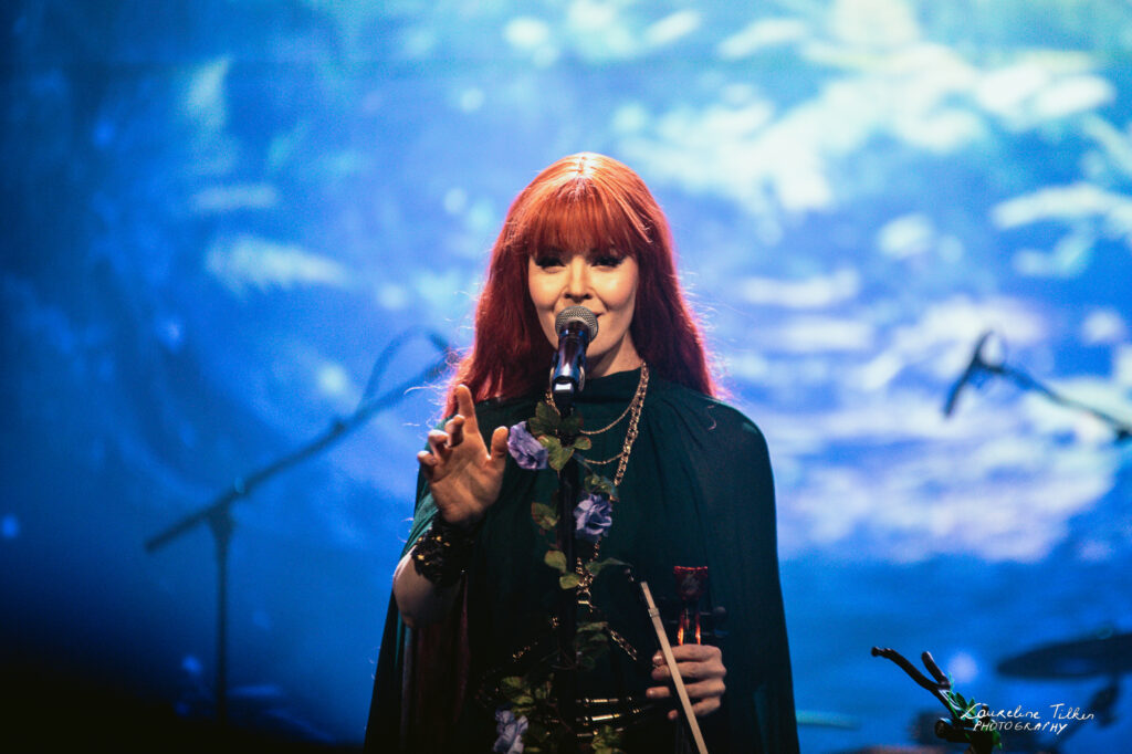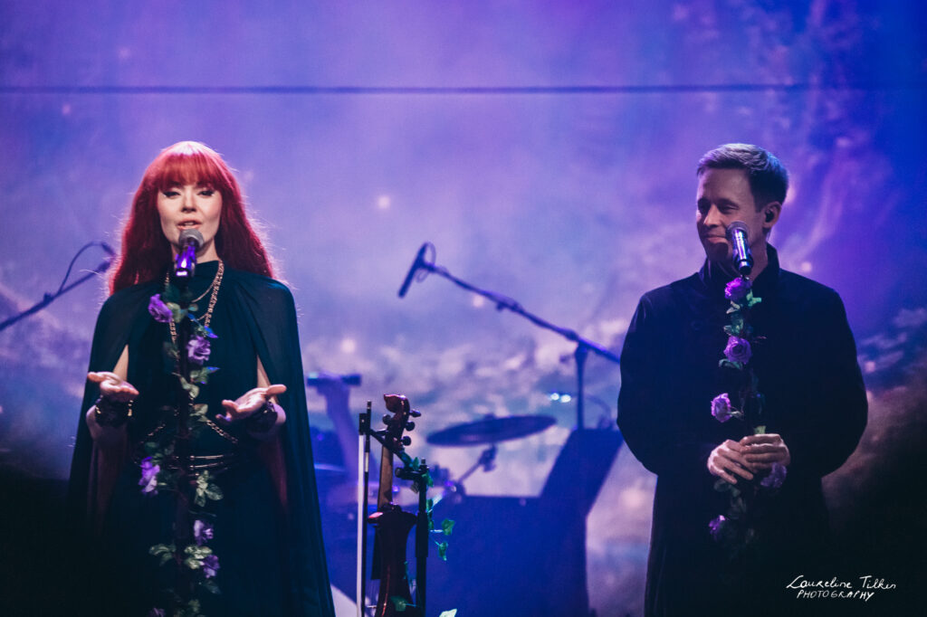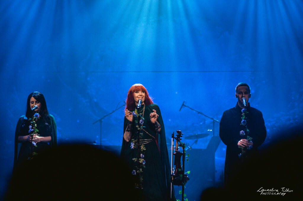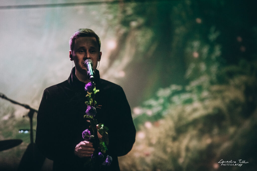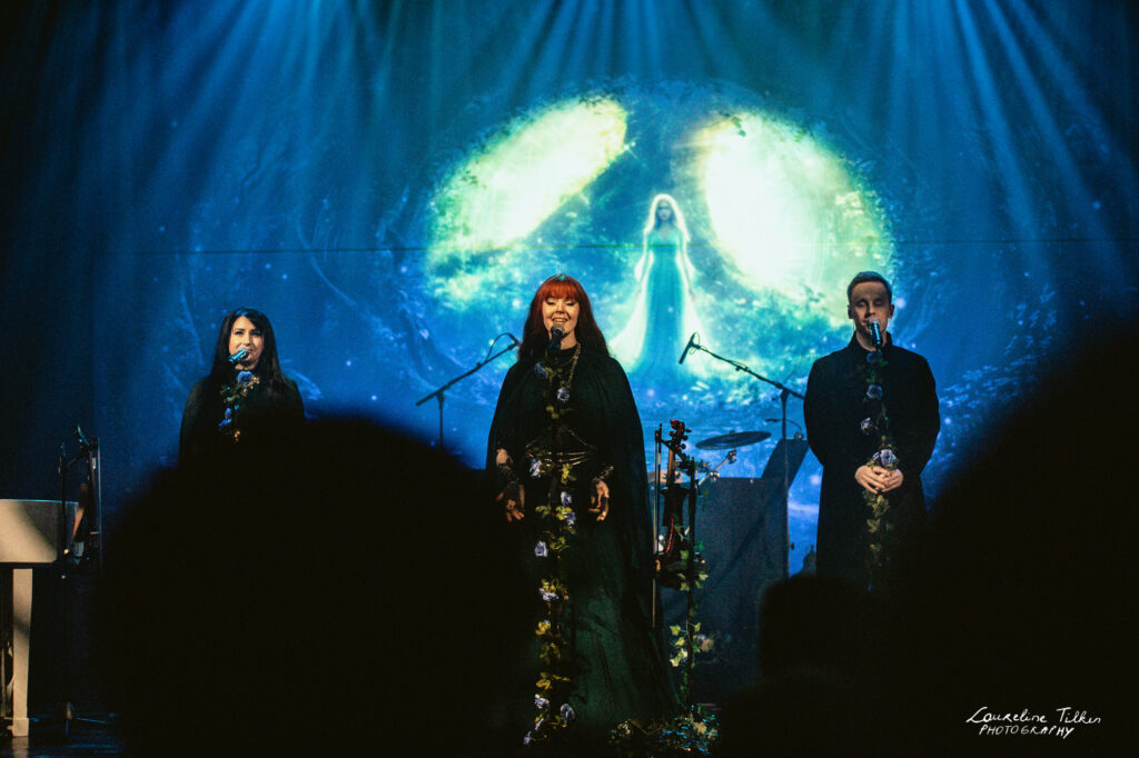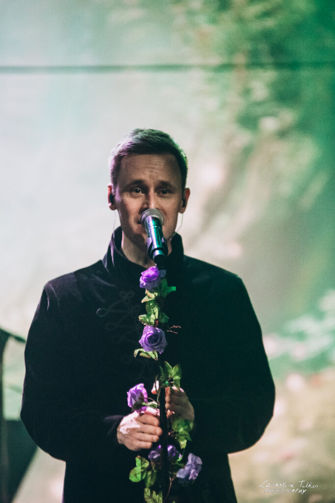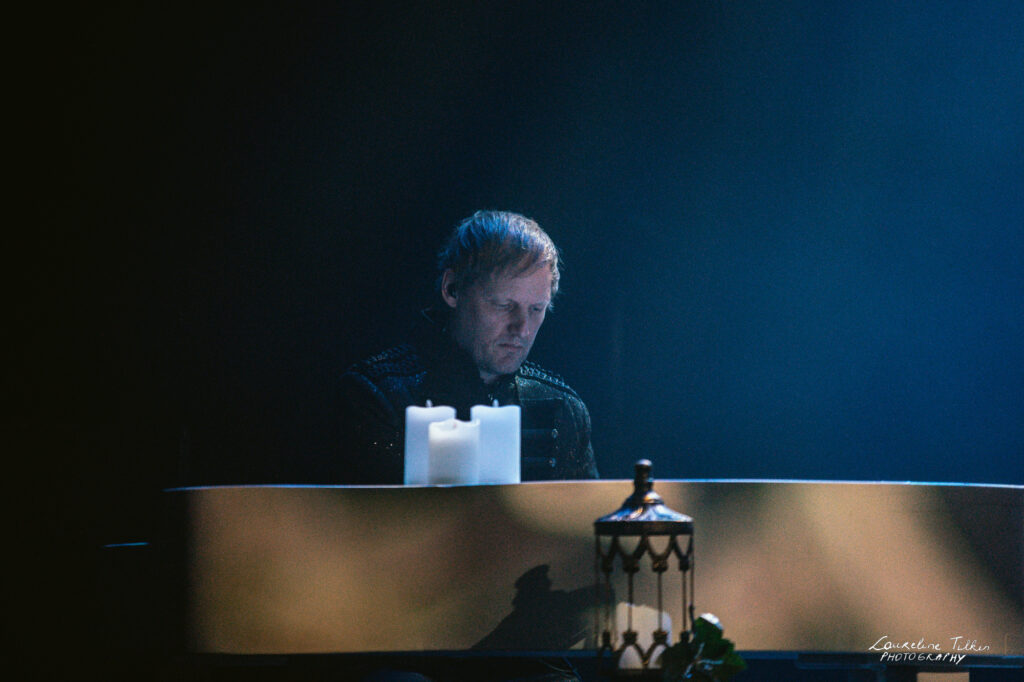 The venue proved to be the perfect match for the band’s Tolkien-inspired, otherworldly soundscapes. Presented as a fully seated show, the evening drew a diverse audience and unfolded in a setting that felt both intimate and immersive. The production complemented the atmosphere beautifully, featuring an oval-shaped projection screen adorned with natural elements, adding to the ethereal visual experience—though the (somewhat surprisingly unlit) candles left a small detail to the imagination.