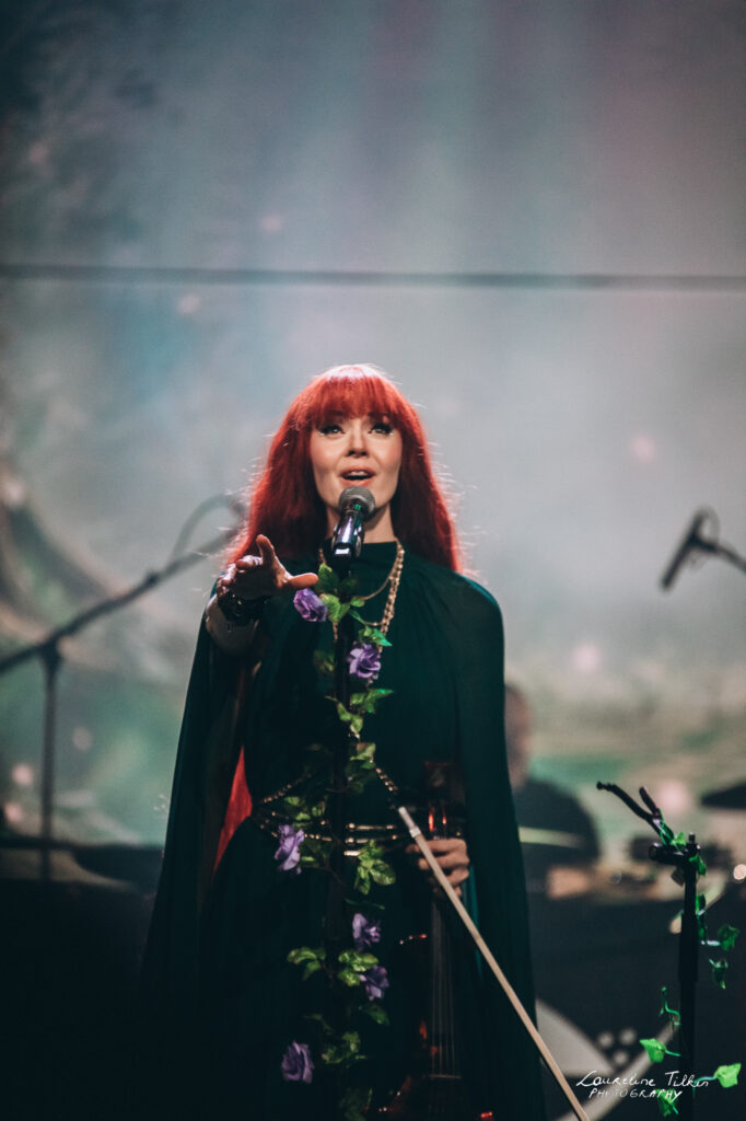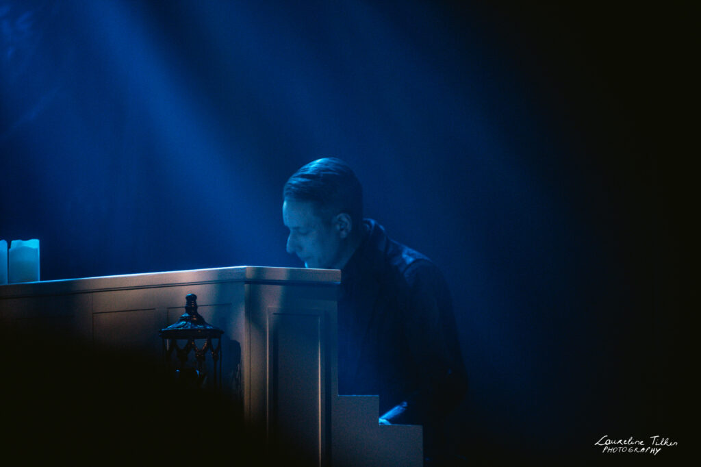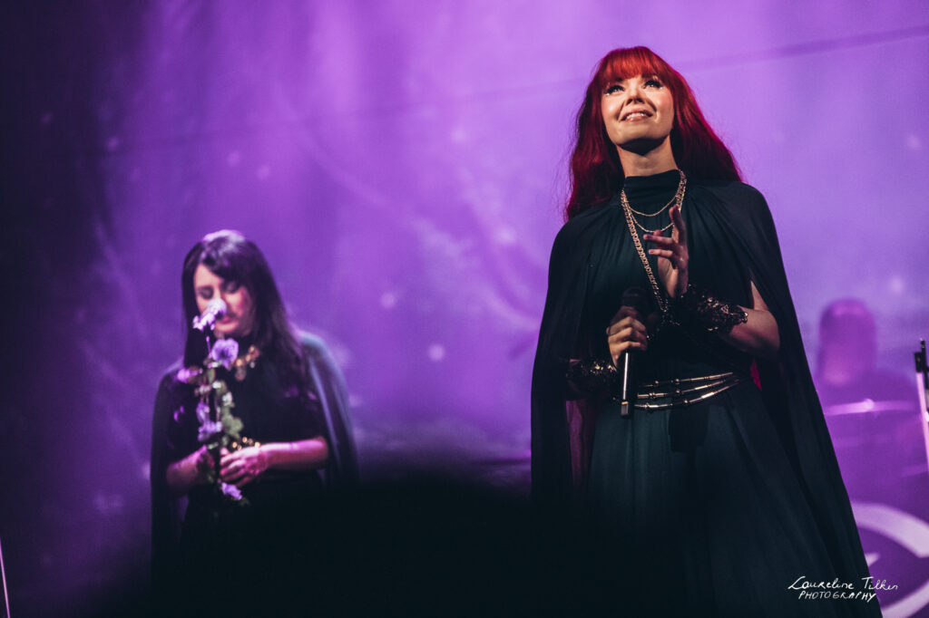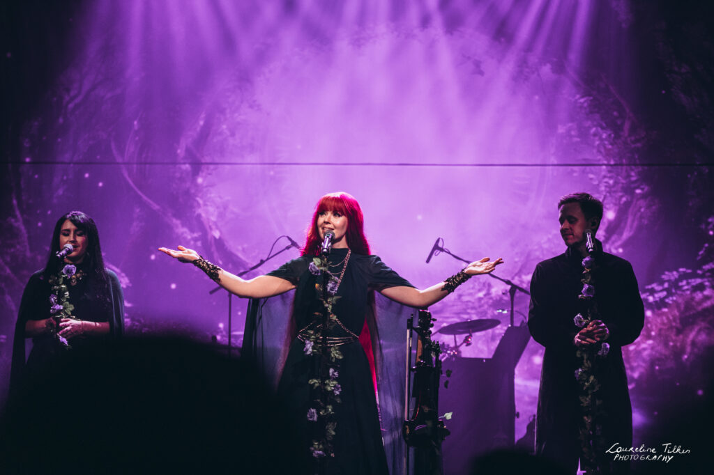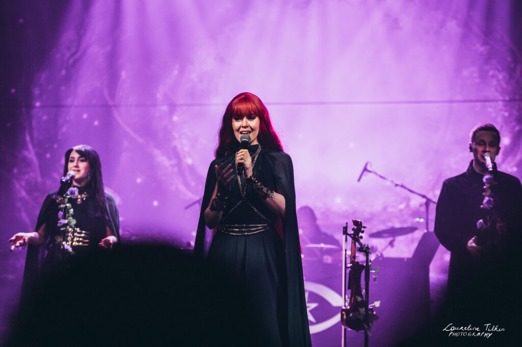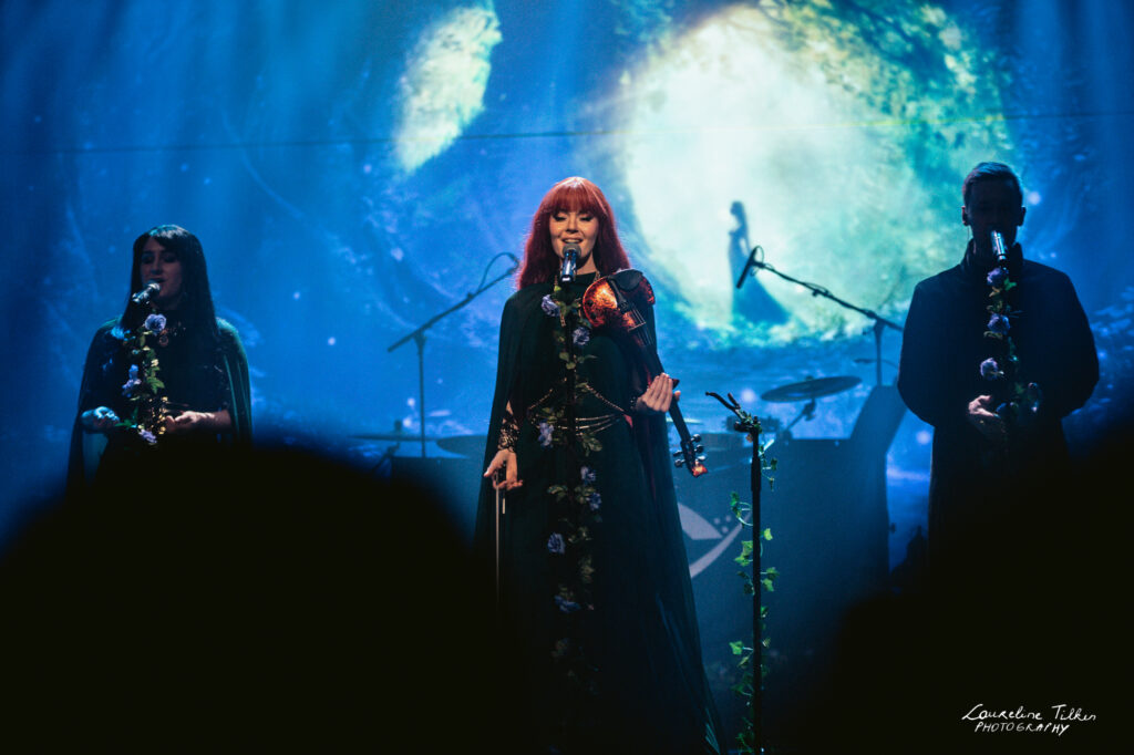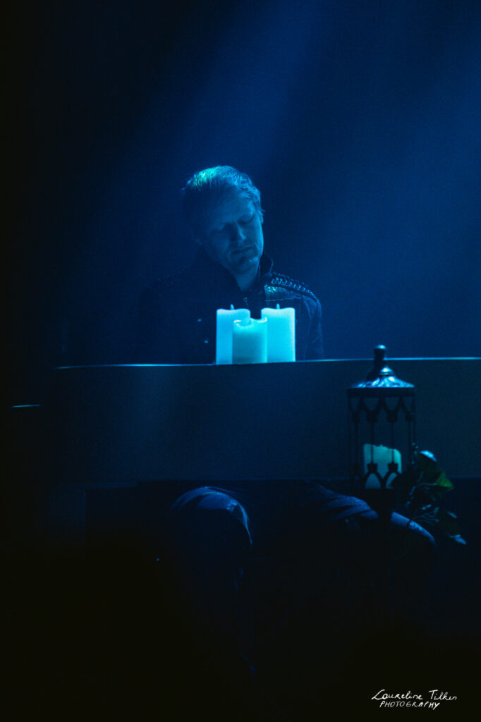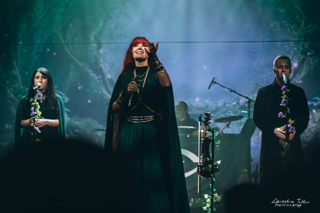 The venue proved to be the perfect match for the band’s Tolkien-inspired, otherworldly soundscapes. Presented as a fully seated show, the evening drew a diverse audience and unfolded in a setting that felt both intimate and immersive. The production complemented the atmosphere beautifully, featuring an oval-shaped projection screen adorned with natural elements, adding to the ethereal visual experience—though the (somewhat surprisingly unlit) candles left a small detail to the imagination.