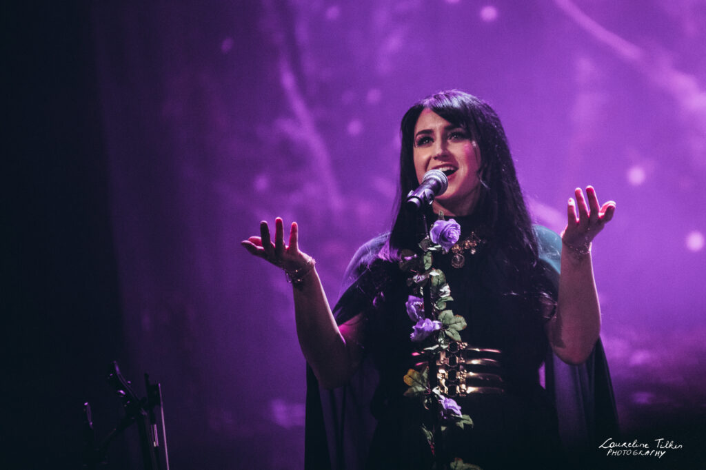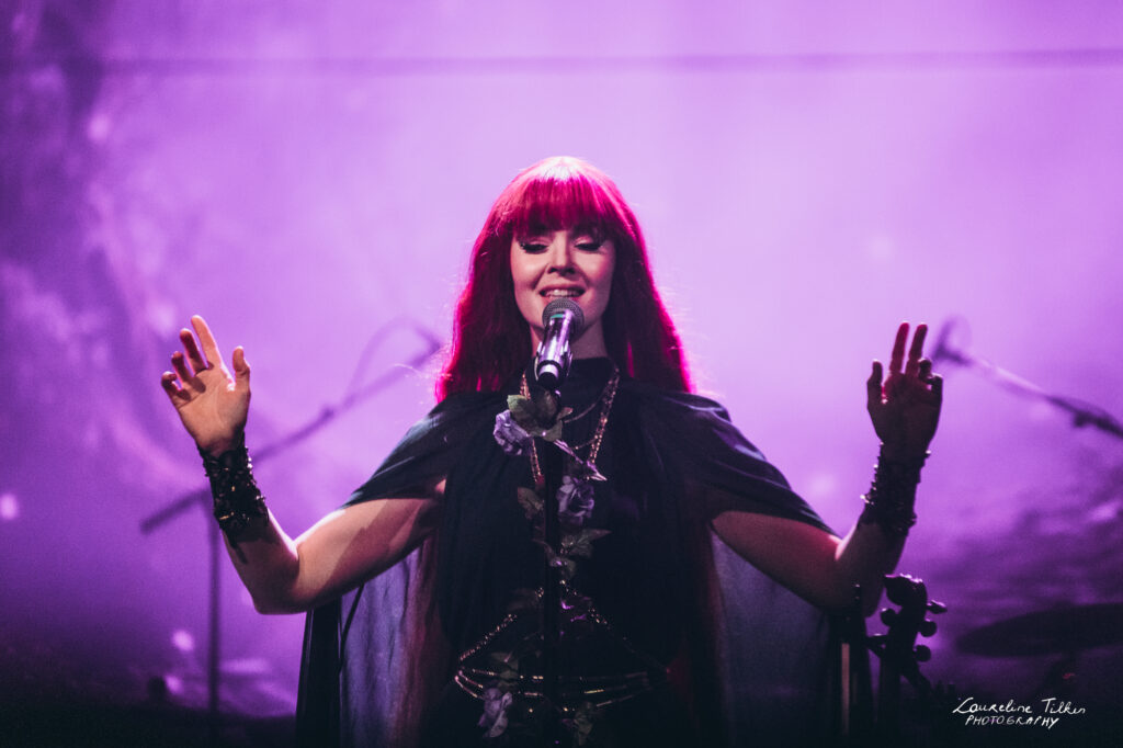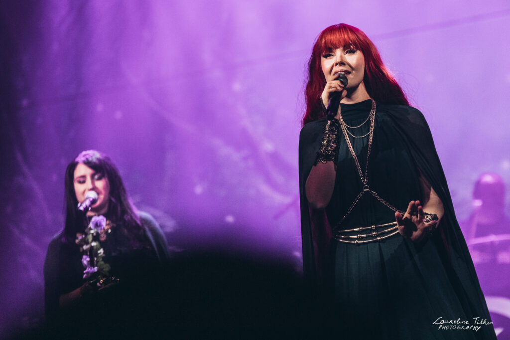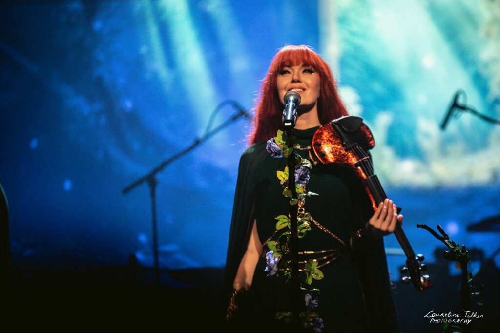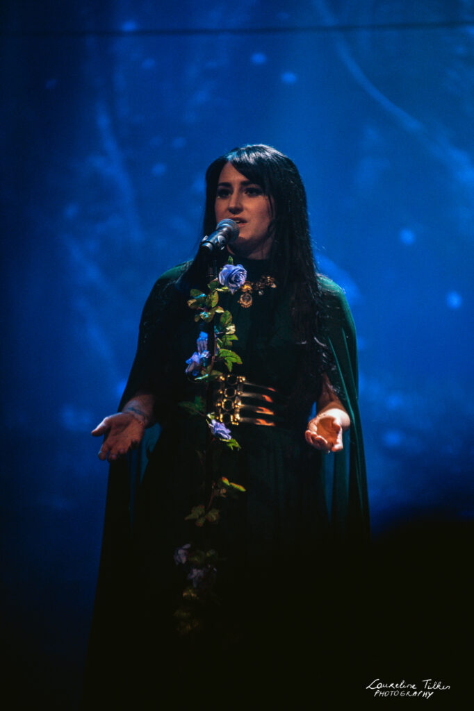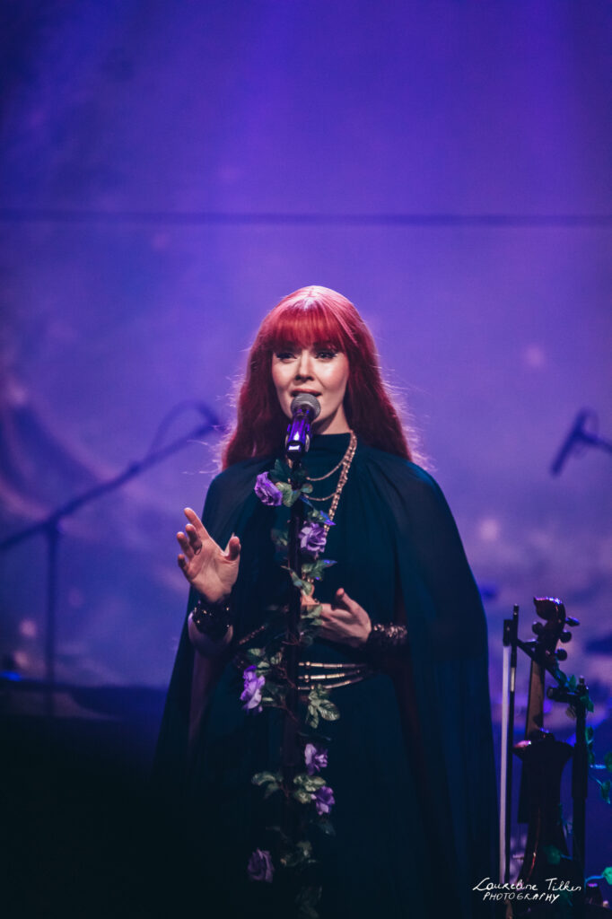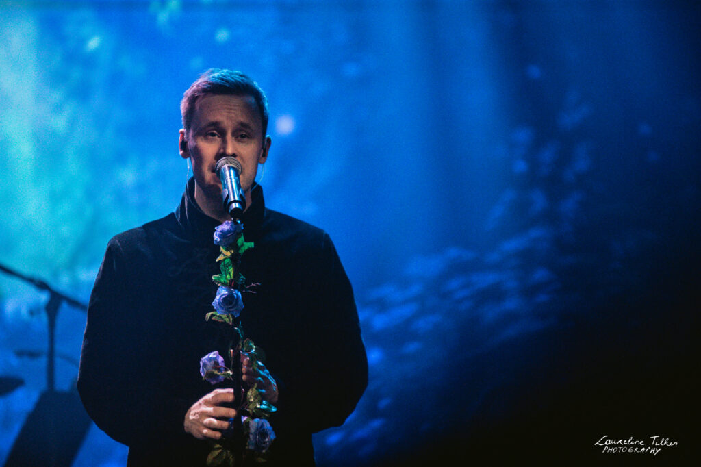 The venue proved to be the perfect match for the band’s Tolkien-inspired, otherworldly soundscapes. Presented as a fully seated show, the evening drew a diverse audience and unfolded in a setting that felt both intimate and immersive. The production complemented the atmosphere beautifully, featuring an oval-shaped projection screen adorned with natural elements, adding to the ethereal visual experience—though the (somewhat surprisingly unlit) candles left a small detail to the imagination.