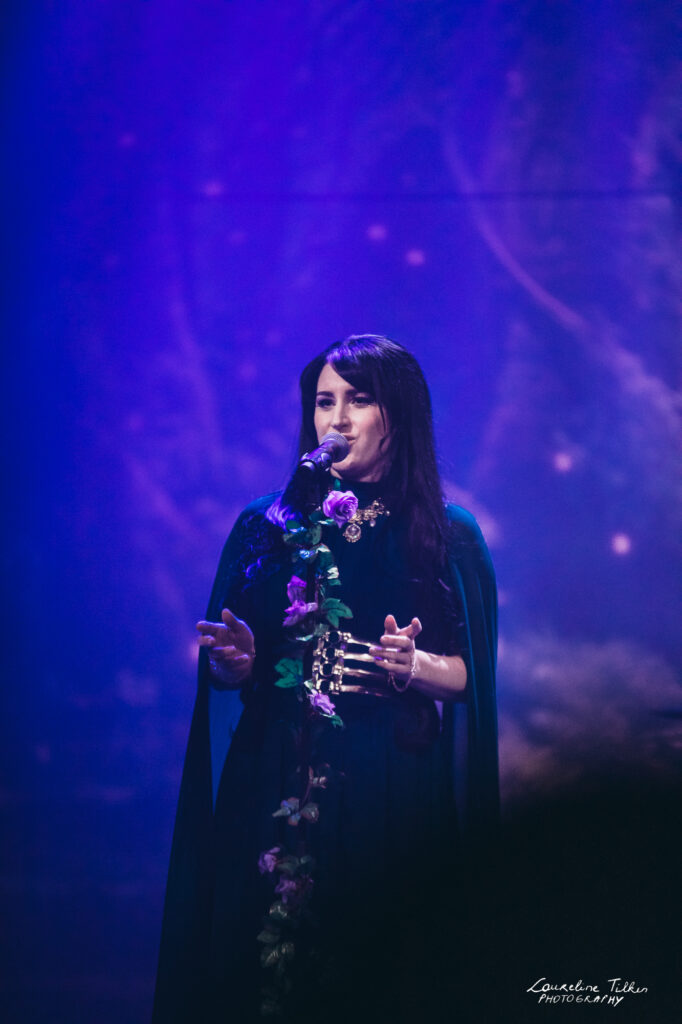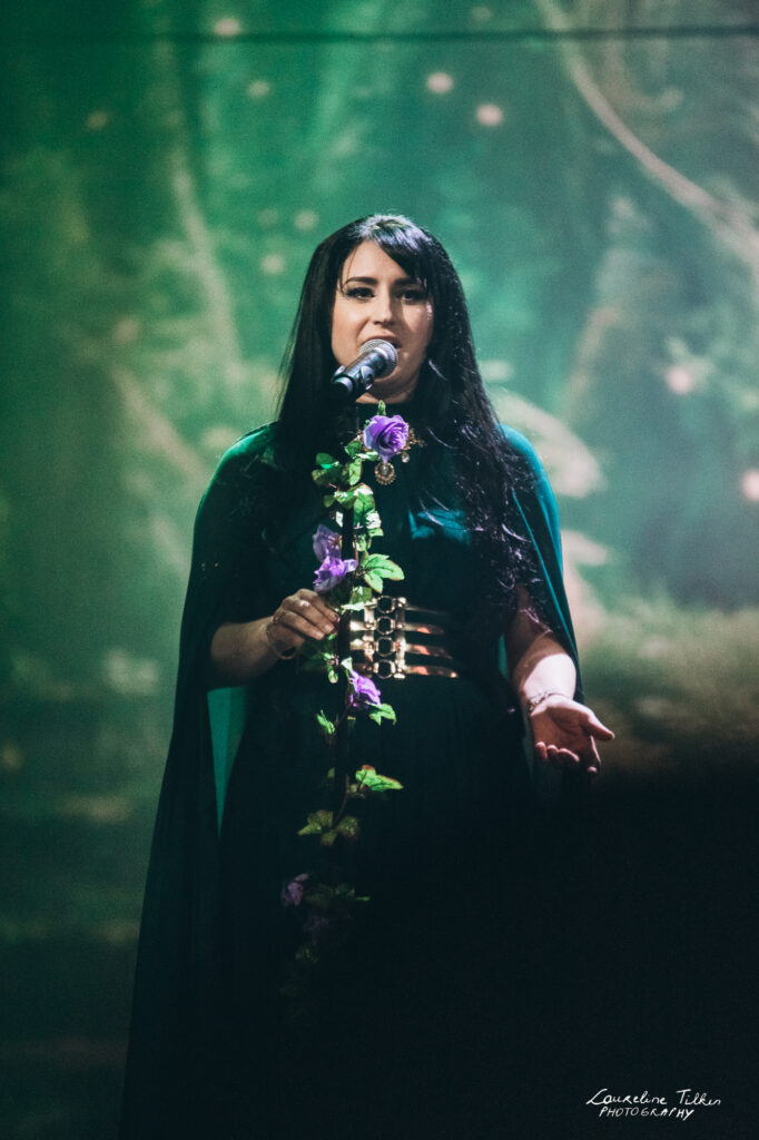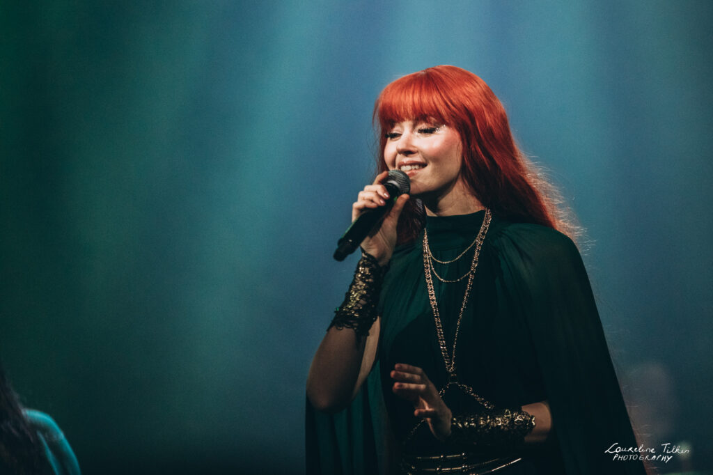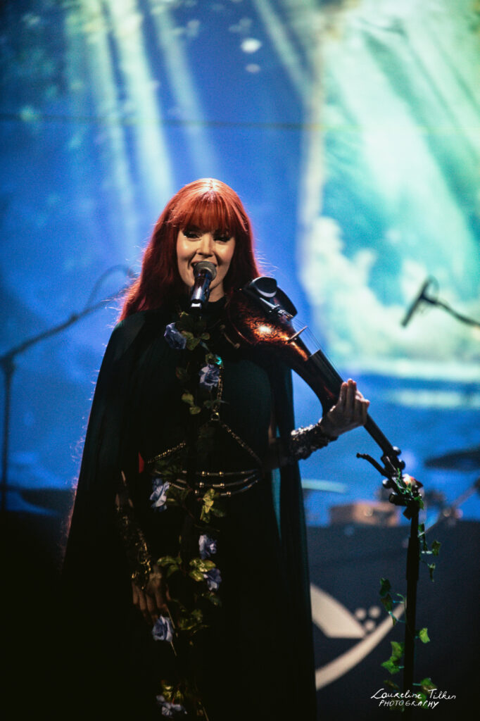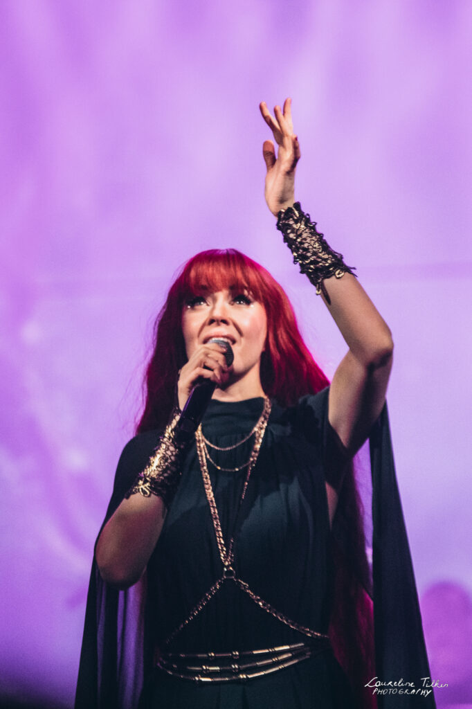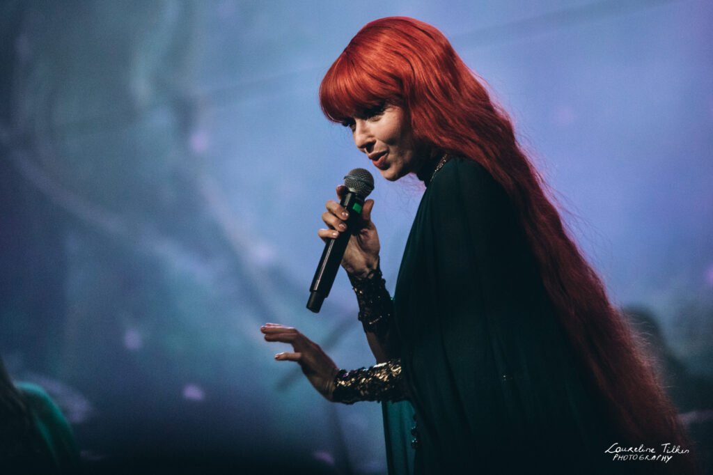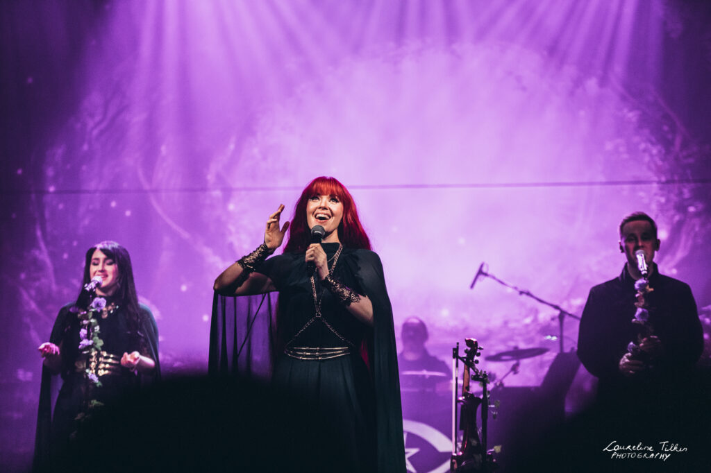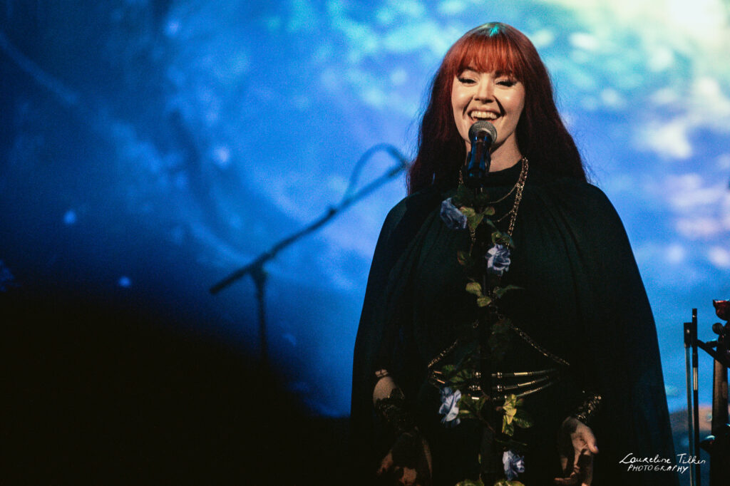 The venue proved to be the perfect match for the band’s Tolkien-inspired, otherworldly soundscapes. Presented as a fully seated show, the evening drew a diverse audience and unfolded in a setting that felt both intimate and immersive. The production complemented the atmosphere beautifully, featuring an oval-shaped projection screen adorned with natural elements, adding to the ethereal visual experience—though the (somewhat surprisingly unlit) candles left a small detail to the imagination.
