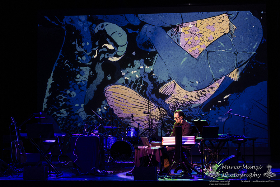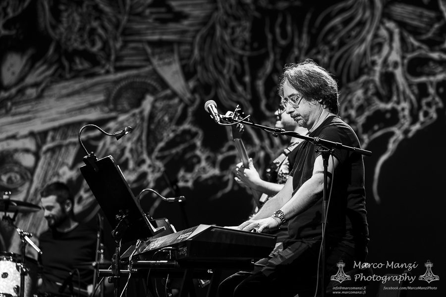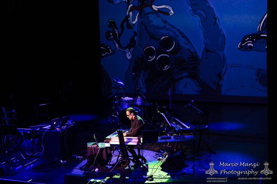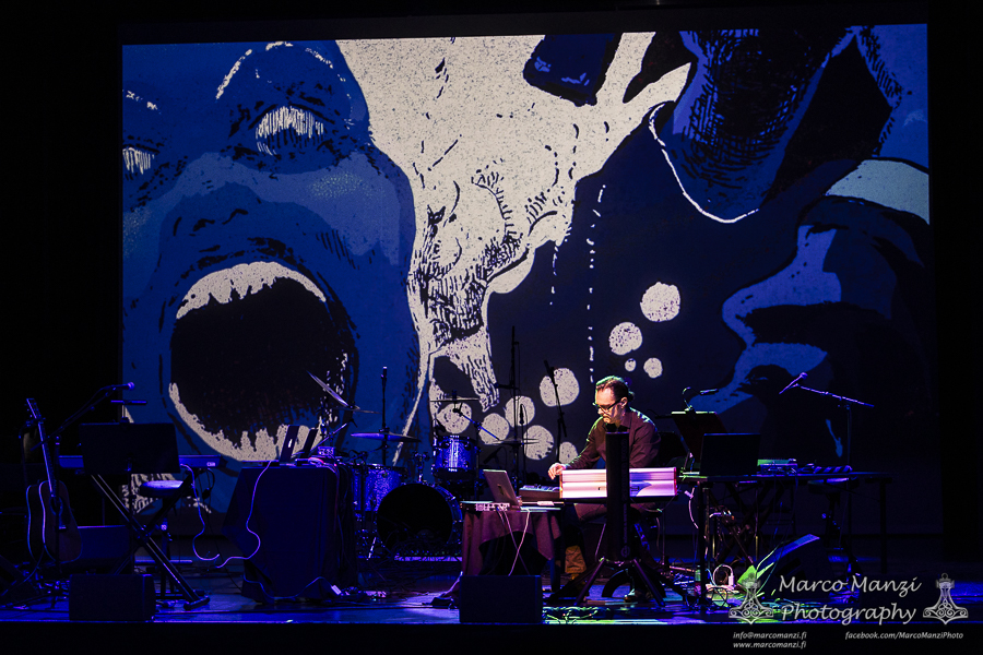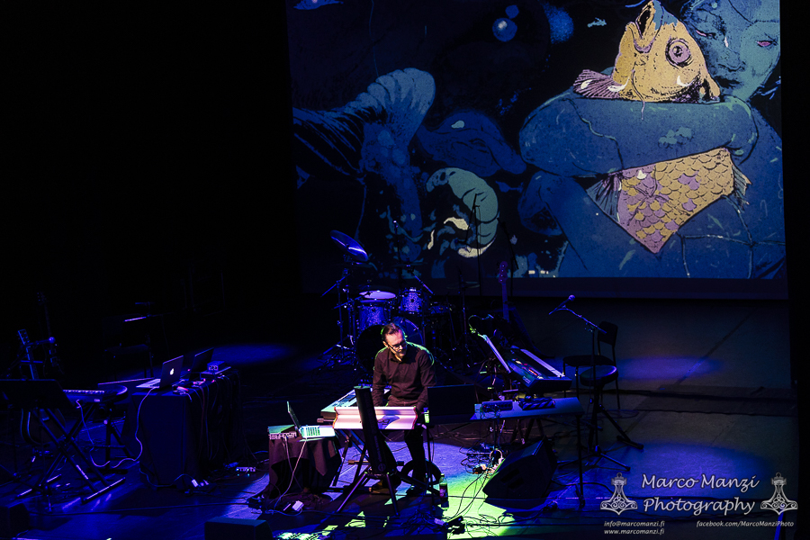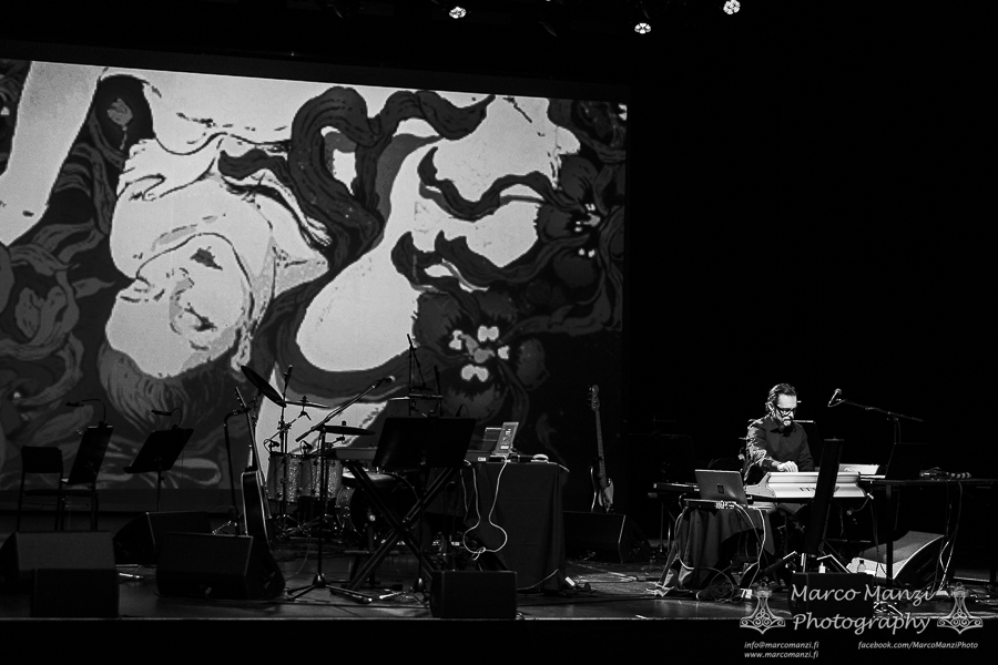 The main event was preceded by LEVINSKY‘s show, as the local dark wave artist with his cinematic soundscapes, and being a big fan of these cult horror classics made in Italy, it fit the bill like a glove. It was a good opportunity for him to play the new “Fathoms,” released last month via Neo Helsinki Records, along with the album’s visuals on screen. Surrounded by all the instruments ready on stage for the later show, he entertained the audience for a half-hour-long set with keyboards to get everyone in the right mood. LEVINSKY is a well-known name to fans of dark electronic music, with his frequent participation, for instance, as part of the Helsinki Synth City collective, and tonight, his performance was once again well received by the fans.