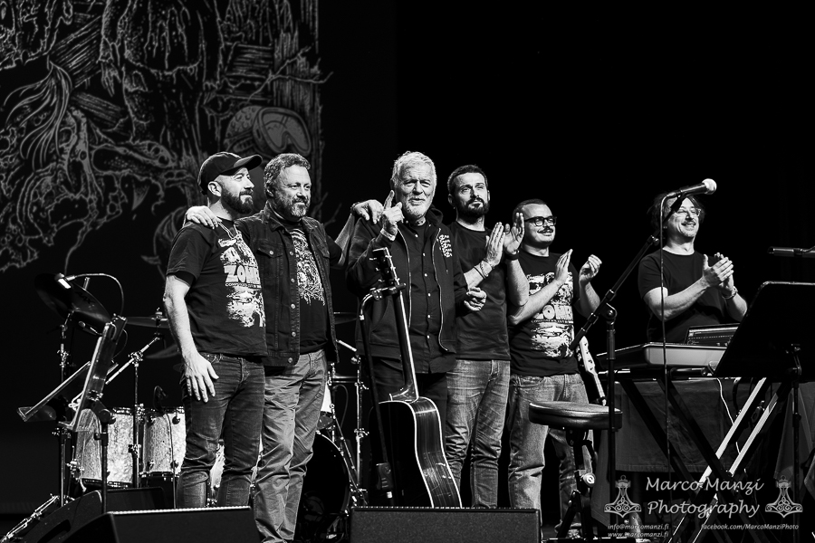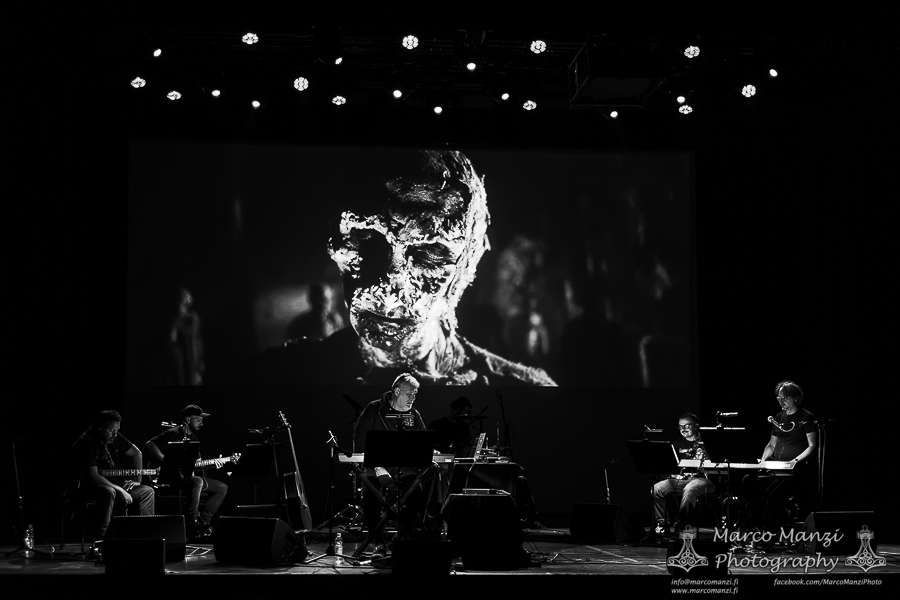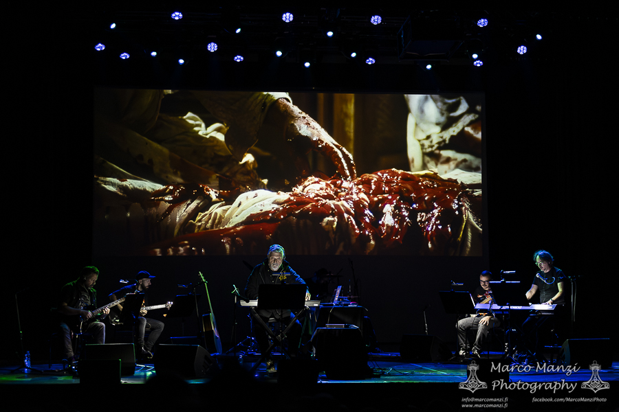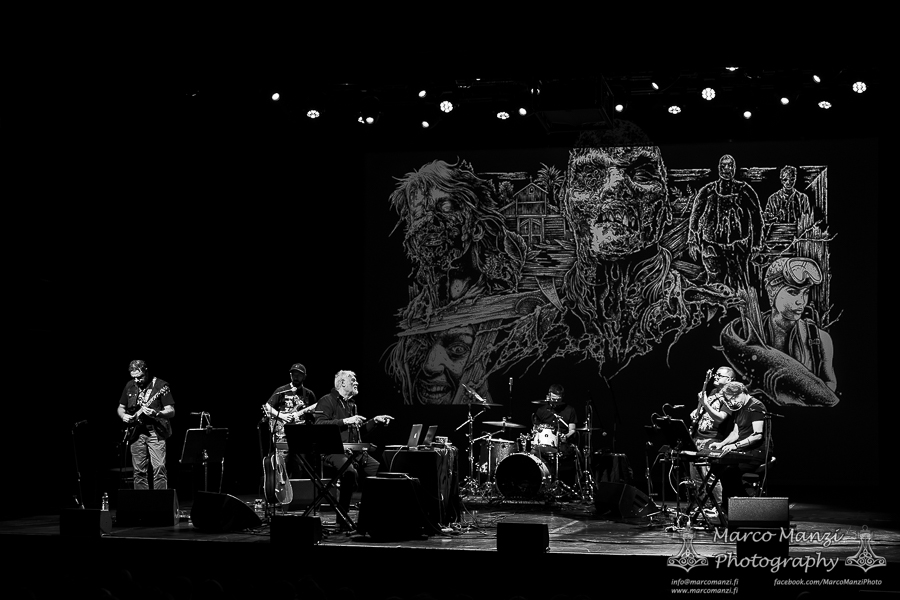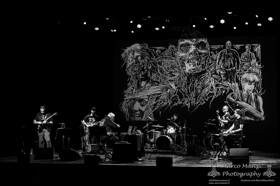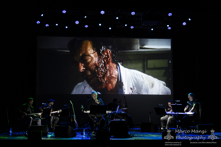 The movie itself is quite short, as per tradition back in the days, so once the ending titles started scrolling there was still a good half an hour before the end of the show, in which the band played other themes from famous collaborations between the Italian maestro and the director – thus the name of this tour, “Frizzi 2 Fulci” – such as “Manhattan Baby” and “Sette Note in Nero” (a.k.a. “The Psychic”). After another round of applause, the composer took a few more minutes to tell the anecdote of how one of his pieces (“Ibo Lele”) had been eventually used by the Finnish singer Taiska as a base for his song “Mombasa” (which was then used in the Finnish movie “Menolippu Mombasaan” from 2002). The evening ended with the original being played while Frizzi asked if someone in the audience could sing along with the Finnish lyrics (if that actually happened, it was very very hard to hear from the other seats in the theater).