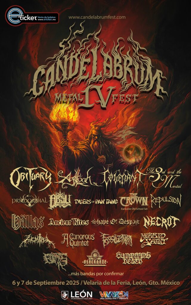 Alright, dear readers, Tuonela Magazine is expanding its horizons and crossing borderlines beyond Europe once again. We are embarking on new festival settings, after our good experience at Summer Breeze Brazil last year. Latin America has demonstrated itself to be an emerging powerhouse for metal festivals, and this weekend we are heading to Mexico for Candelabrum Metal Festival in Leon, Guanajuato, on September 6th and 7th, 2025, (pre-party included, by the way). Candelabrum Metal Festival has proven to be an up-and-coming name in the extreme side of the metal world, with four successful editions under its belt. Being relatively new, Candelabrum Metal Festival has gathered big names in its past editions, and this year is no exception. Among the big names in 2025, we can see OBITUARY, AGALLOCH, THE 3RD AND THE MORTAL, ONSLAUGHT, ANCIENT RITES, PRIMORDIAL. Not bad for a young event, eh?